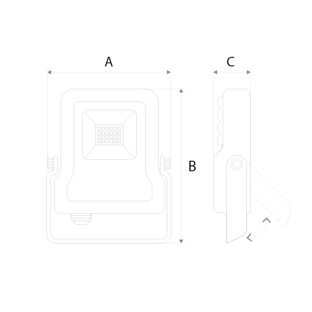 Projetor LED da série TEC com corpo robusto em alumínio e aro em ABS para modelos de maior potência. Possui difusor em vidro temperado, suporte ajustável e excelente dissipação de calor. Grau de proteção IP65, que garante resistência a jatos de água de média pressão, ideal para ambientes húmidos ou exteriores cobertos. Classe de isolamento I. Para uso em interiores secos.