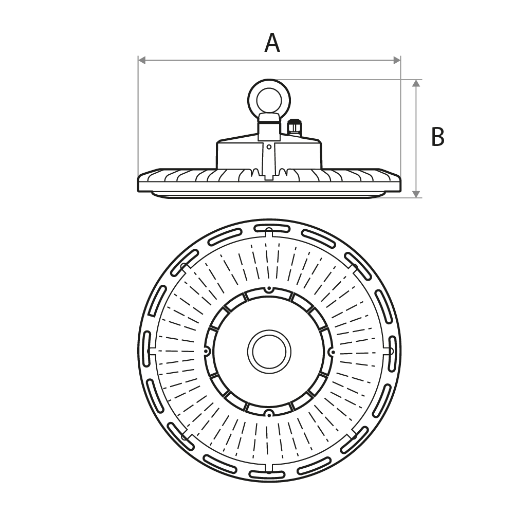 A campânula industrial LED da série TRON foi concebida para aplicações exigentes em ambientes industriais e logísticos. Com corpo em alumínio ADC12 de alta resistência e difusor em policarbonato, oferece uma excelente dissipação de calor e elevada durabilidade. Possui driver LIFUD, ângulo de abertura de 90° e elevada eficiência luminosa (até 150Lm/W). O conetor Zhaga de 4 pinos permite a instalação de sensores e módulos de controlo. Adequada para instalação em armazéns, fábricas e pavilhões, garante proteção IP65 e IK08.