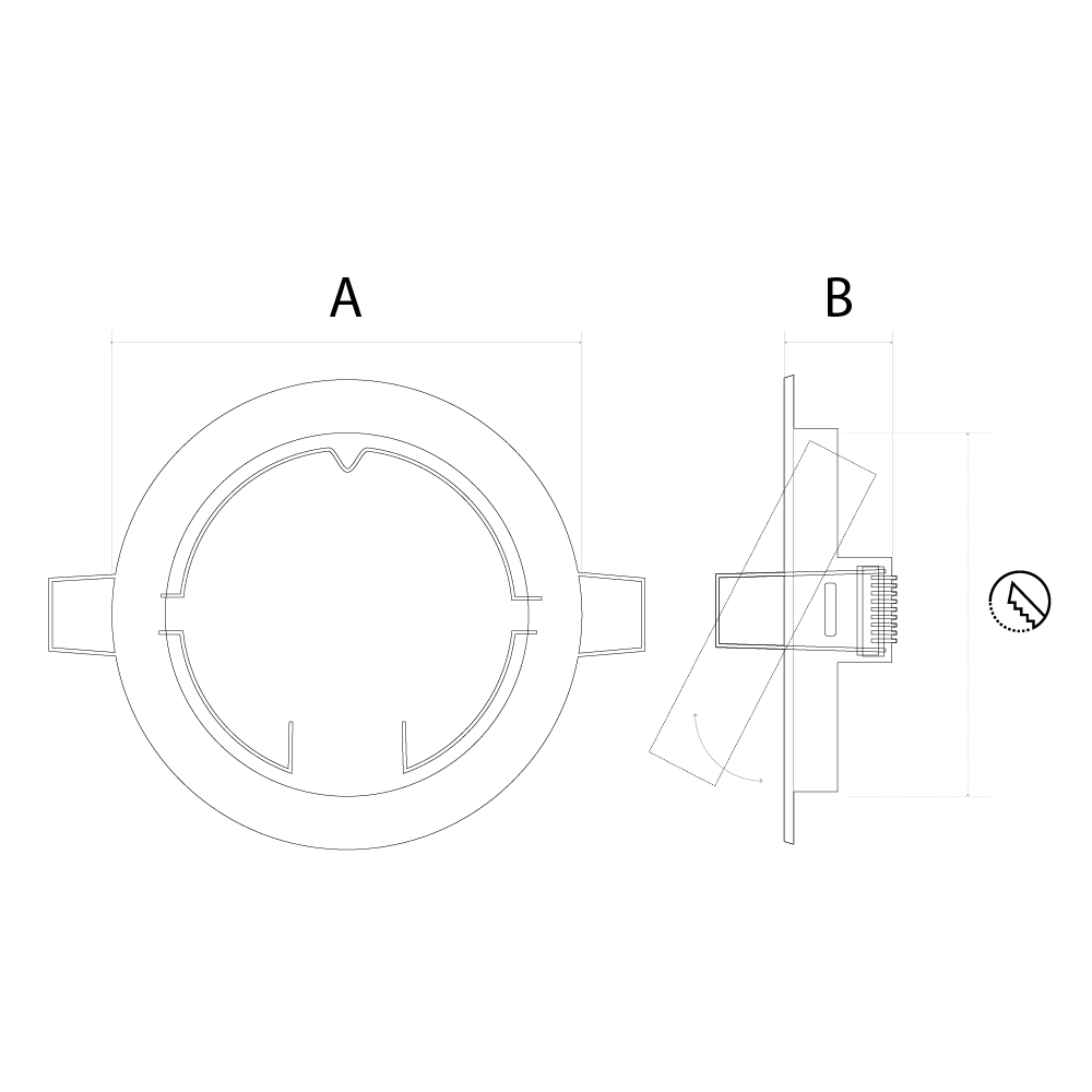 Este aro redondo basculante em alumínio é ideal para aplicações embutidas em tetos falsos, permitindo ajustar a direção da luz. Com 82 mm de diâmetro e 23 mm de profundidade, oferece versatilidade e discrição para interiores. Compatível com lâmpadas GU10 (não incluídas) e suporte GU10 (não incluído). Proteção IP20 e Classe de isolamento I – uso exclusivo em ambientes secos.