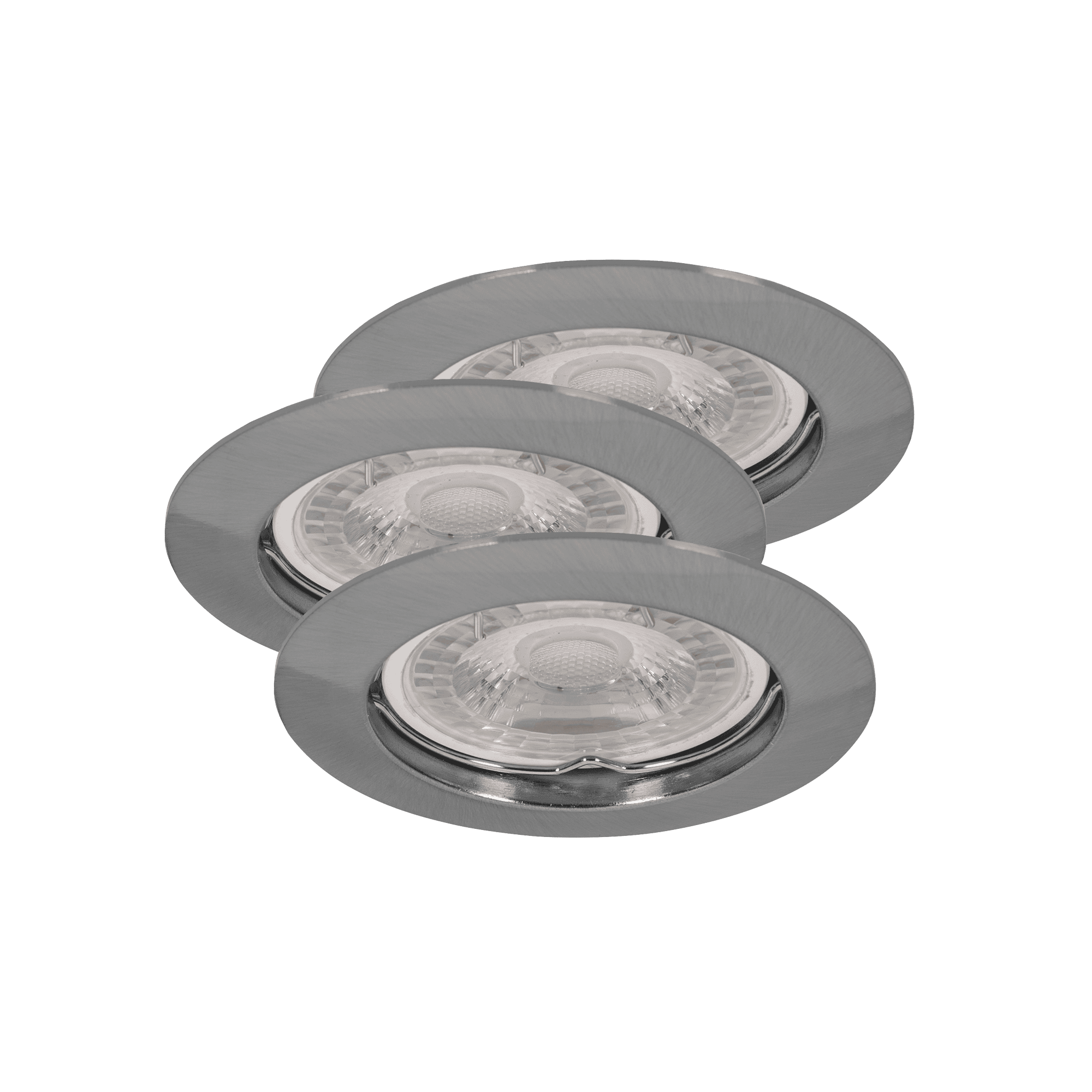 CONJUNTO DE 3 AROS REDONDOS FIXOS DE EMBUTIR COM LÂMPADAS LED E SUPORTES GU10