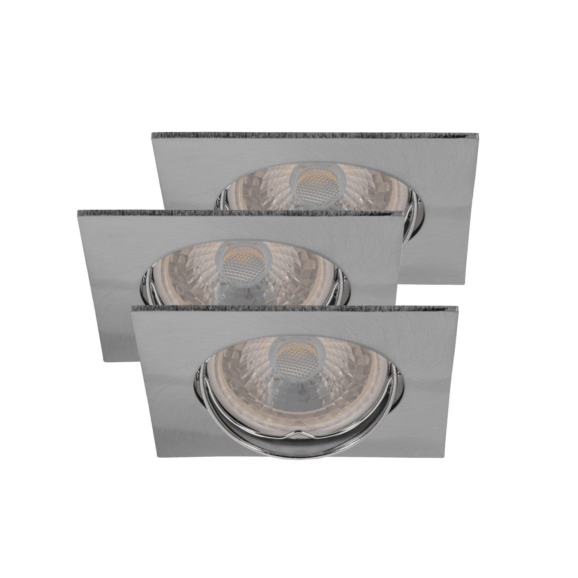 CONJUNTO DE 3 AROS QUADRADOS BASCULANTES DE EMBUTIR COM LÂMPADAS LED E SUPORTES GU10