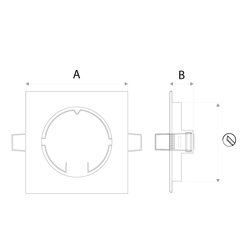 Este aro quadrado fixo em alumínio é indicado para aplicações embutidas em tetos falsos. Com 75 mm de lado e profundidade de 24 mm, proporciona uma integração estética e funcional em espaços interiores. Compatível com lâmpadas GU10 (não incluídas) e suporte GU10 (não incluído). Classificação IP20 e isolamento de Classe I – para utilização em ambientes secos.