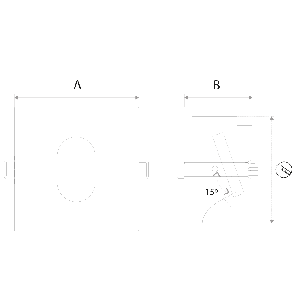 Com design quadrado moderno, o aro basculante permite inclinação de 15°, ajustando o foco da iluminação. Ideal para aplicações interiores que exigem luz direcionada, como salas de estar, vitrines ou corredores. Fabricado em alumínio e disponível em branco, garante durabilidade e integração visual. Compatível com GU10 (não incluídas), com índice IP20 para ambientes interiores secos. Medidas: 89 mm, profundidade de 40 mm.