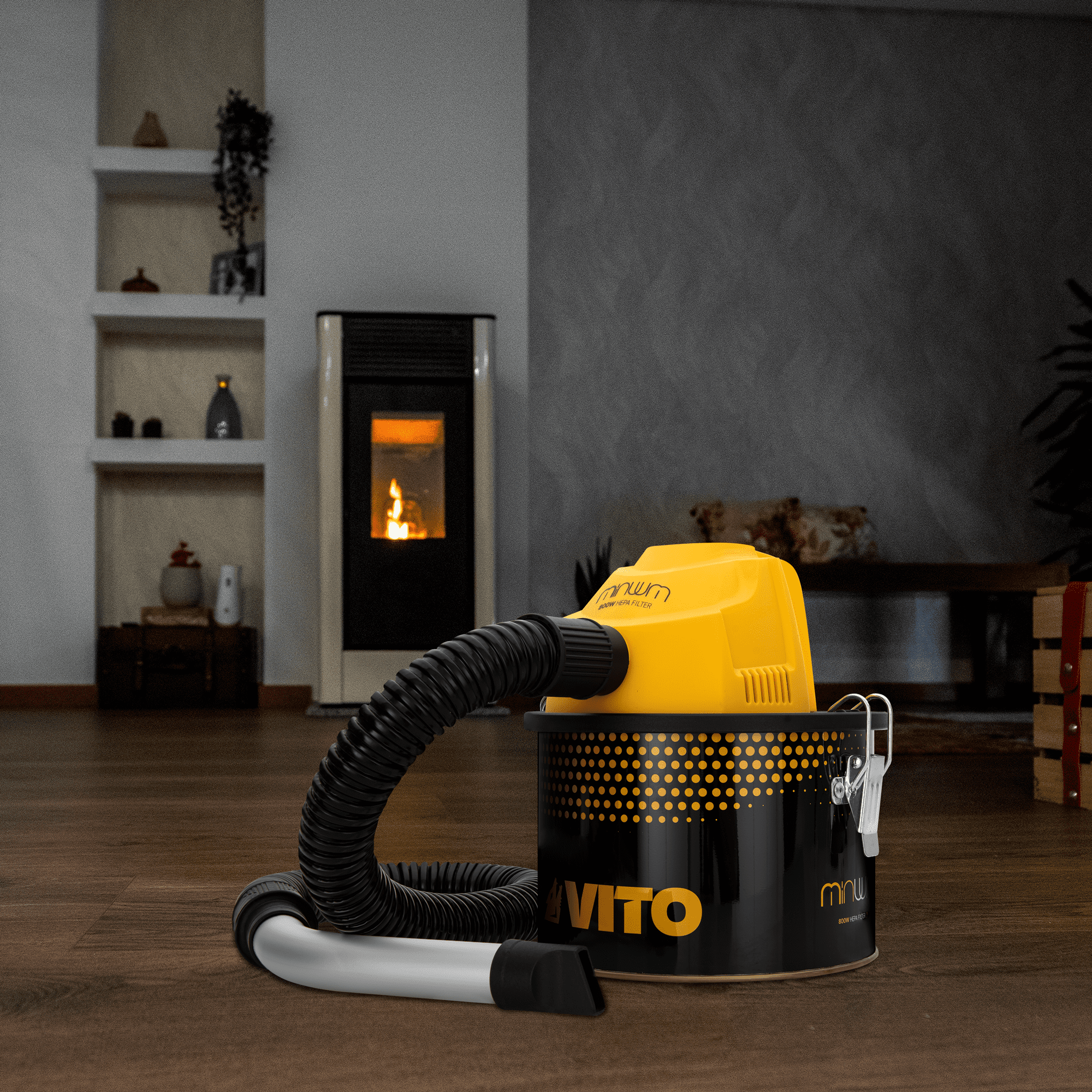 Mini Aspirador de Cinzas 800W (MINUUM) com reservatório metálico de 4L, ideal para aspiração de pellets e também outros locais com detritos de cinzas mais finas (lareiras, churrasqueiras e fogões a lenha). Tem uma potência de aspiração de 15kPa e vem equipado com um tubo metálico que permite acesso às zonas mais difíceis de aspirar. Possui ainda filtro hepa e saco de pré-filtragem, além dos fechos metálicos que permitem uma limpeza mais fácil e rápida. Este aspirador é versátil na sua utilização e de fácil manuseamento.