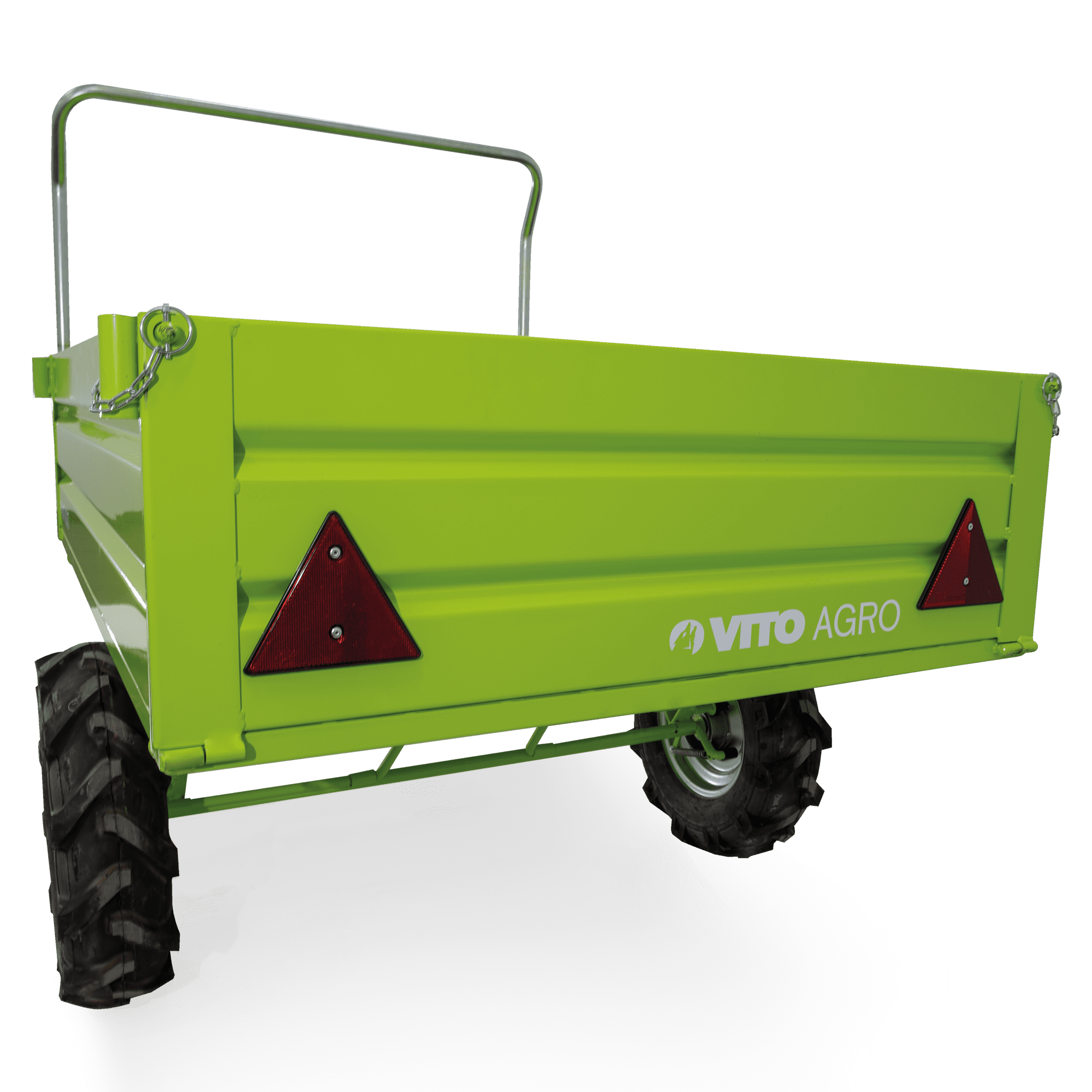 O Atrelado Mod. 12 da VITO, pode ser utilizado com as Motoenxadas VIMEDTD12, é projetado para transportar até 450 kg de carga útil, sendo uma solução robusta para o uso em terrenos agrícolas e rurais. Com dimensões de 2900 mm de comprimento, 1300 mm de largura e 930 mm de altura, este atrelado é equipado com rodas pneumáticas de 495 x 150 mm e jantes em aço, garantindo durabilidade e resistência. O chassis também é construído em aço, o que oferece uma estrutura sólida para suportar condições exigentes de trabalho. Além disso, o atrelado vem com placa refletora traseira e travão, assegurando segurança durante o transporte. Pesando 115 kg, é a escolha ideal para quem precisa de um equipamento confiável para transporte agrícola.