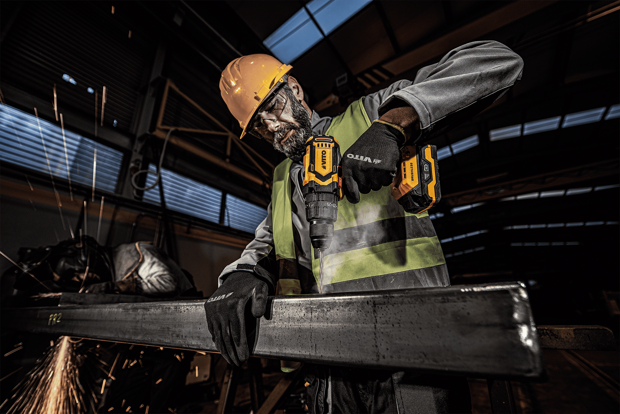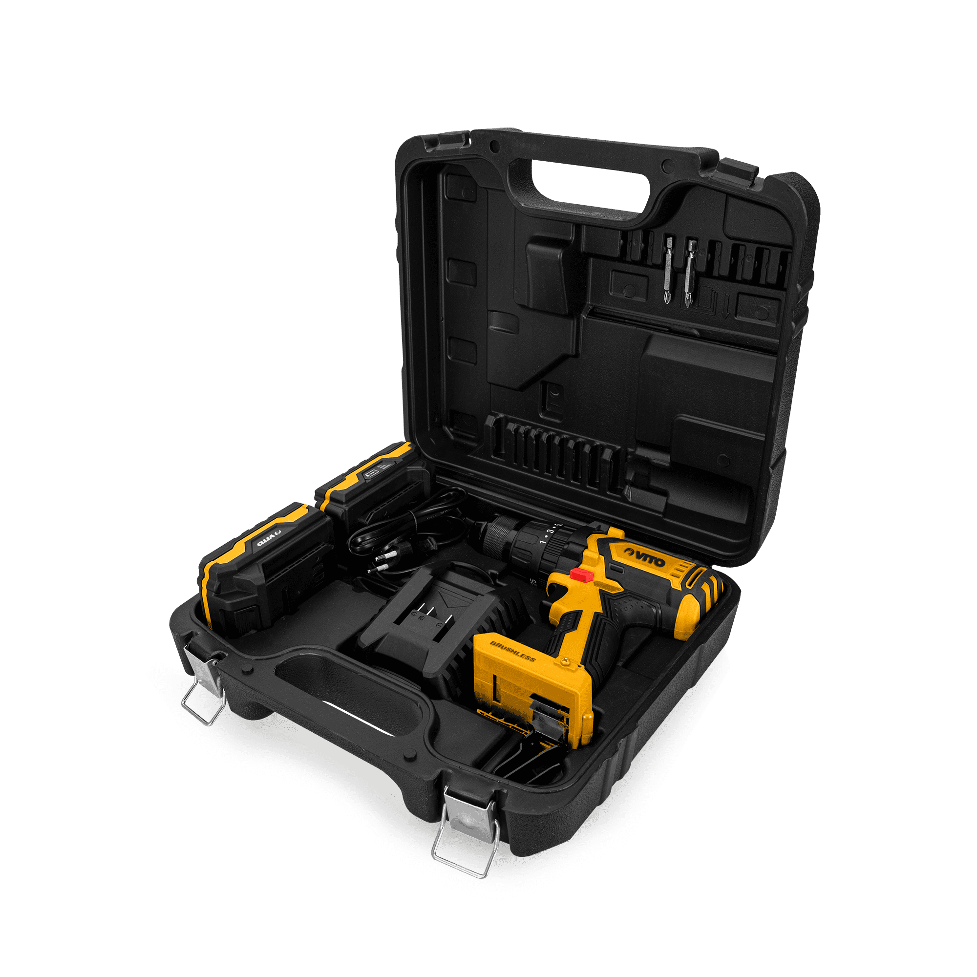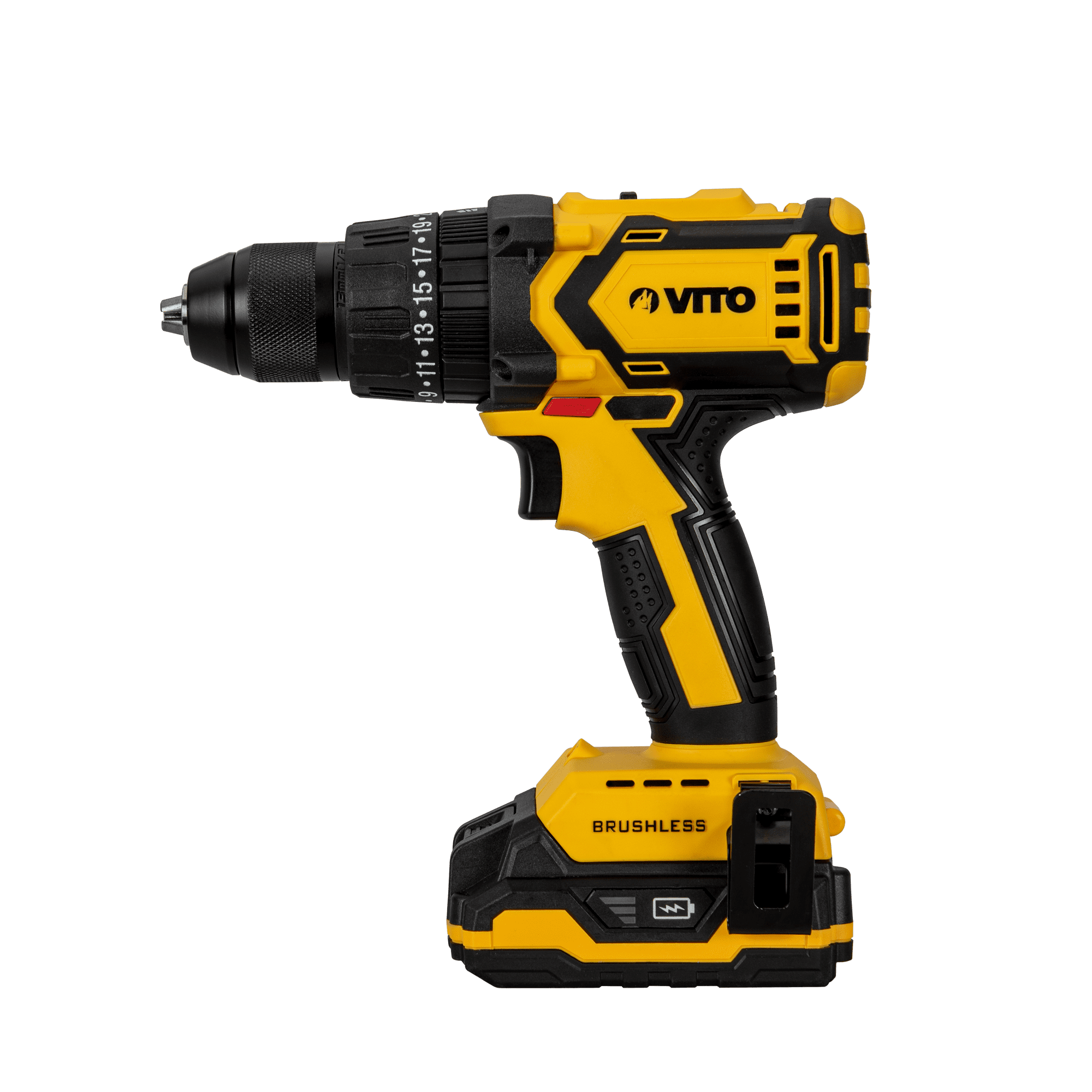 Berbequim sem Fios Brushless com uma tensão nominal de 20V, tem um tempo de carga da bateria de 1h, conta com 2 velocidades, tem uma capacidade da bateria de 2Ah, possui velocidades de rotação em vazio de 0-550 e 0-2000rpm, tem ainda frequências de impacto de 0-9000 e 0-30000bpm, possui um binário máximo de 46Nm, tem uma capacidade da bucha de aperto rápido de 13mm, com uma perfuração em betão de 10mm, aço 13mm e madeira 30mm, contem ainda um nivel de potência sonora de 89,9dB.