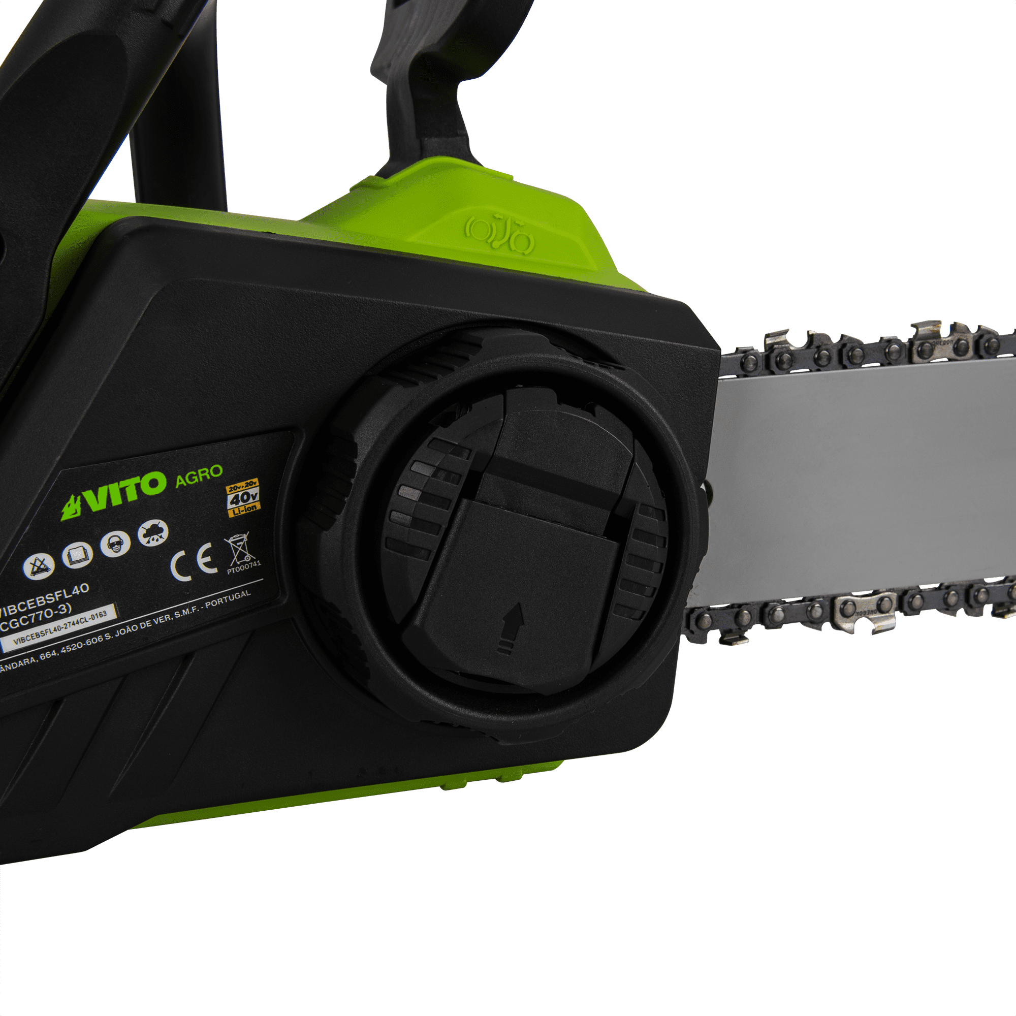 A Electrosserra VITO Brushless 40V foi desenvolvida para oferecer potência, precisão e conforto em operações de corte de troncos, galhos e poda de arbustos. Concebida com um design ergonómico, proporciona excelente controlo do corte, reduzindo a fadiga e aumentando a segurança em trabalhos continuados.