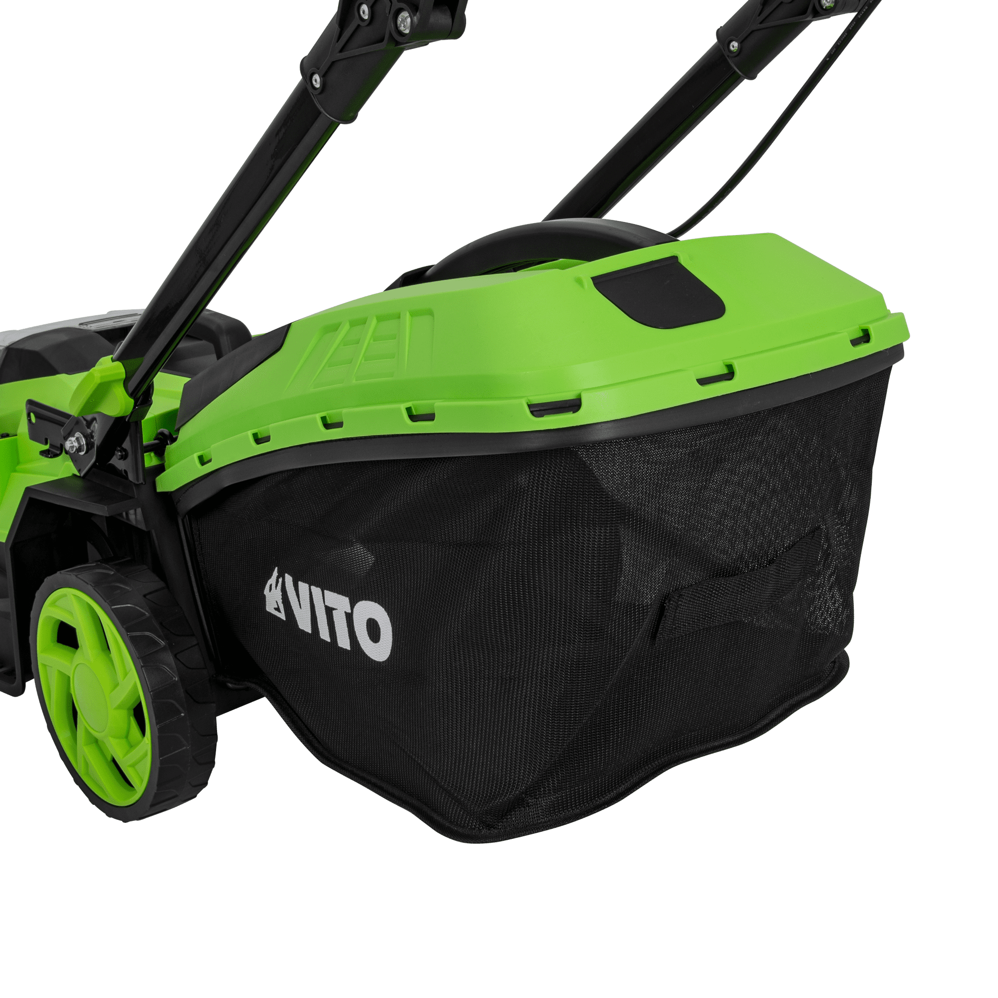 Sem fios e fácil de manobrar, facilita a manutenção das zonas verdes, de forma mais silenciosa e ecológica. Com um design compacto e de fácil arrumação, este modelo vem equipado com pega transporte e saco de recolha com capacidade de 40 litros. Este modelo é compatível com a bateria comum 20V (2Ah, 4Ah e 6Ah).
