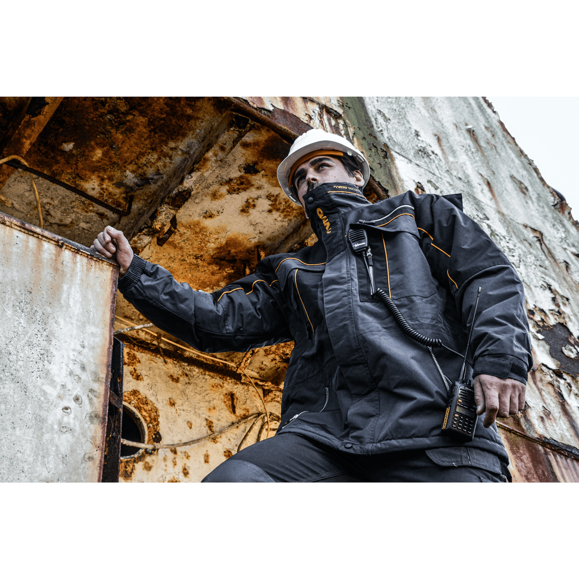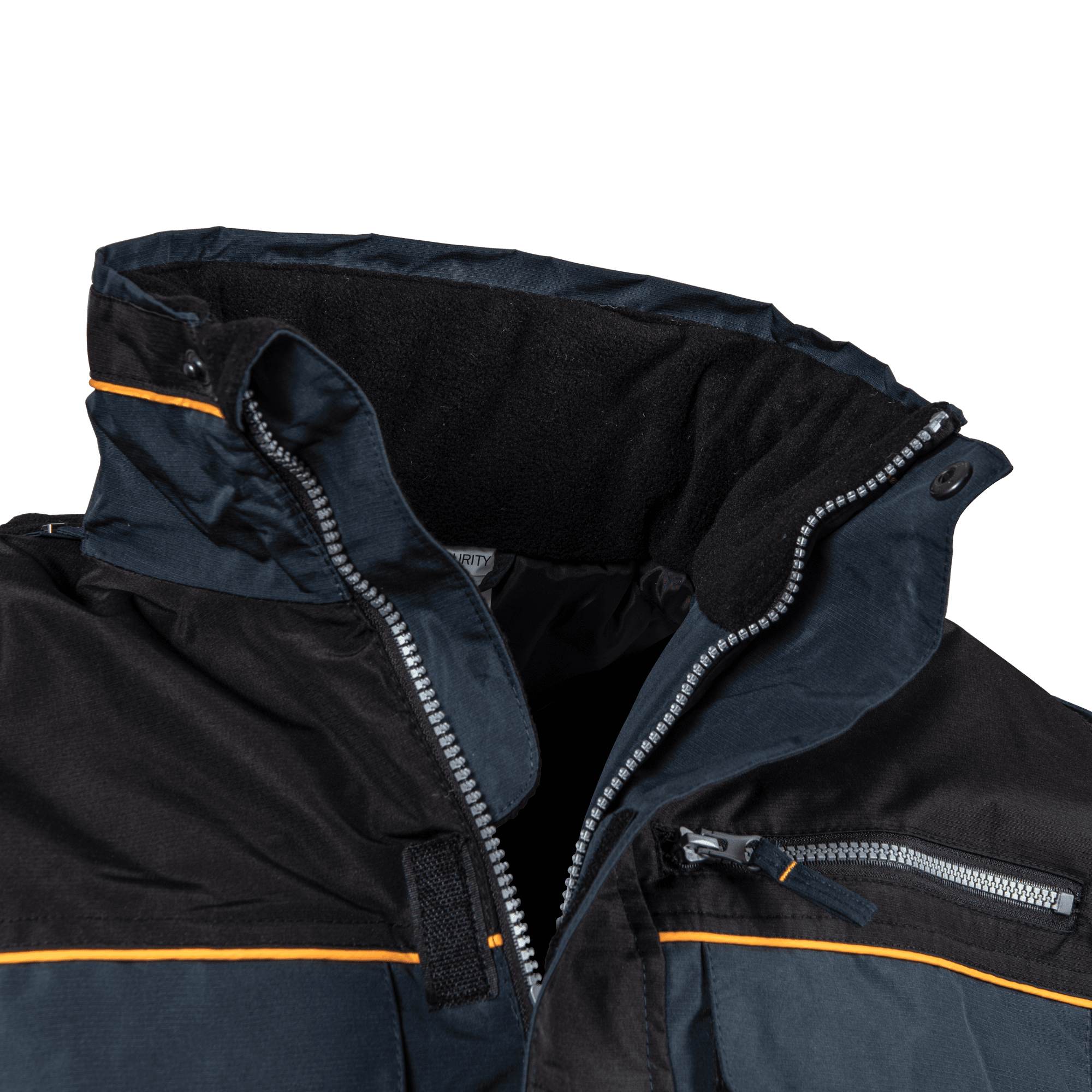 O blusão de inverno com capuz foi desenvolvido para profissionais que realizam atividades no exterior, em ambientes sujeitos a frio, humidade e condições meteorológicas adversas. Confeccionado em 100% poliéster com revestimento a PVC, oferece proteção impermeável eficaz contra chuva e vento, contribuindo para manter o corpo seco durante o trabalho. O capuz integrado proporciona proteção adicional em condições climáticas mais exigentes, enquanto a cintura elástica melhora o ajuste ao corpo e ajuda a conservar o calor. Dispõe de fecho de correr com reforço em velcro, garantindo um encerramento seguro e prático. Os vários bolsos frontais permitem transportar ferramentas e acessórios de uso frequente de forma organizada e acessível. É indicado para setores como construção, manutenção, logística, indústria e trabalhos exteriores em geral durante períodos de baixas temperaturas.