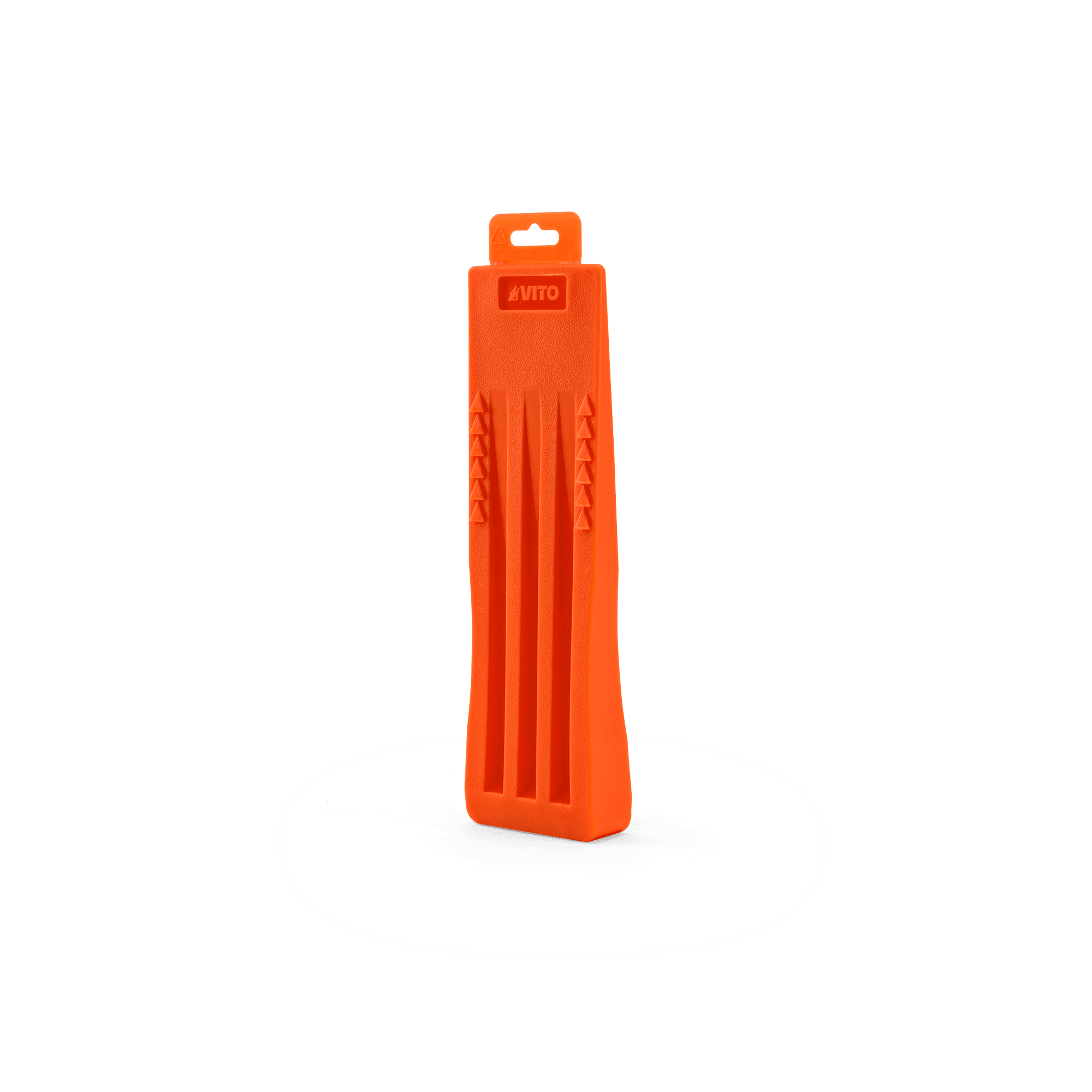 Ideal para a realização de trabalhos intensivos com motosserras, este coldre fabricado em tecido de fibra de carbono destaca-se pela sua leveza e elevada durabilidade, permitindo um transporte confortável e resistente em tarefas exigentes. As cunhas em plástico ABS apresentam 3 tamanhos: S (13,9 cm), M (20,3 cm) e L (25,4 cm), caracterizando-se pela sua capacidade de adaptação a diversos diâmetros de troncos e tipos de cortes. Cada cunha apresenta dentes antideslizantes e ranhuras longitudinais de dupla face, orientadas para o tronco, permitindo levantar cuidadosamente um dos lados da árvore, reduzir tensões e guiar a direção da queda com controlo total. Estes dentes e ranhuras não só melhoram a aderência da cunha à árvore, como também garantem maior pressão, promovendo um avanço seguro, eficiente e com o mínimo esforço possível. Para além disto, o coldre inclui uma faixa em velcro, uma abertura para integração no cinto de trabalho, elásticos frontais para organização adicional e dois compartimentos laterais, permitindo o transporte das cunhas e de pequenas ferramentas de forma prática e conveniente.