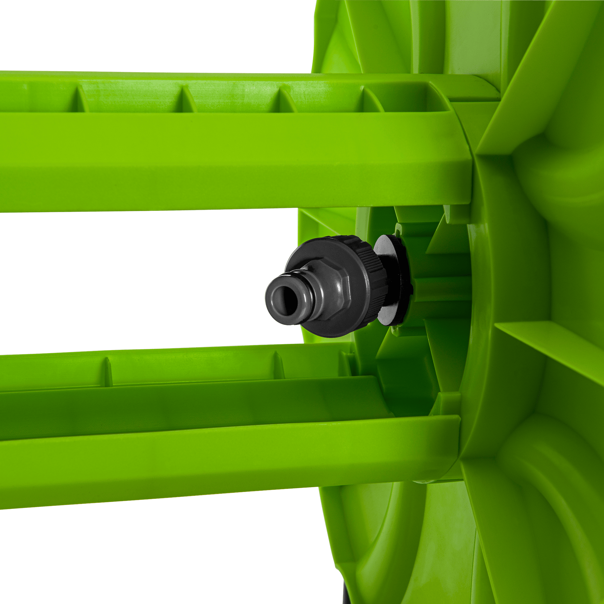 Este produto destaca-se por estar equipado com um sistema de guia com manivela que permite organizar mangueiras de forma mais rápida e fácil, otimizando o trabalho do utilizador e evitando torções. Para além disto, inclui um adaptador que possibilita a ligação com uma torneira.