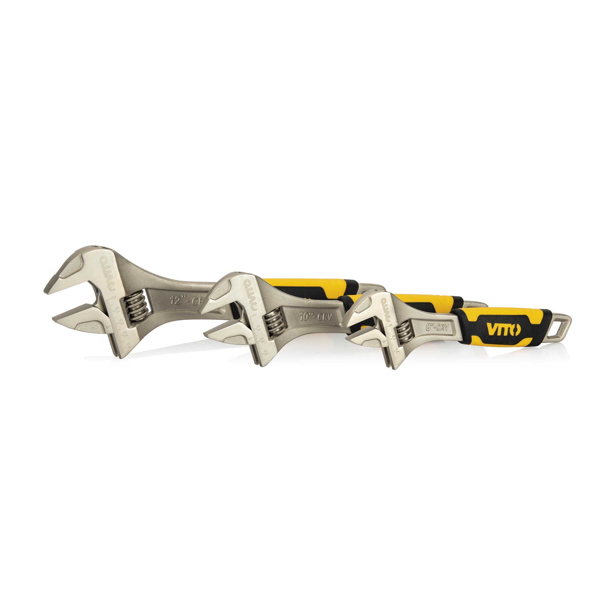 Chave Inglesa com um corpo em Aço Cromo Vanádio, tem um punho em bimatéria com uma abertura de 30mm.