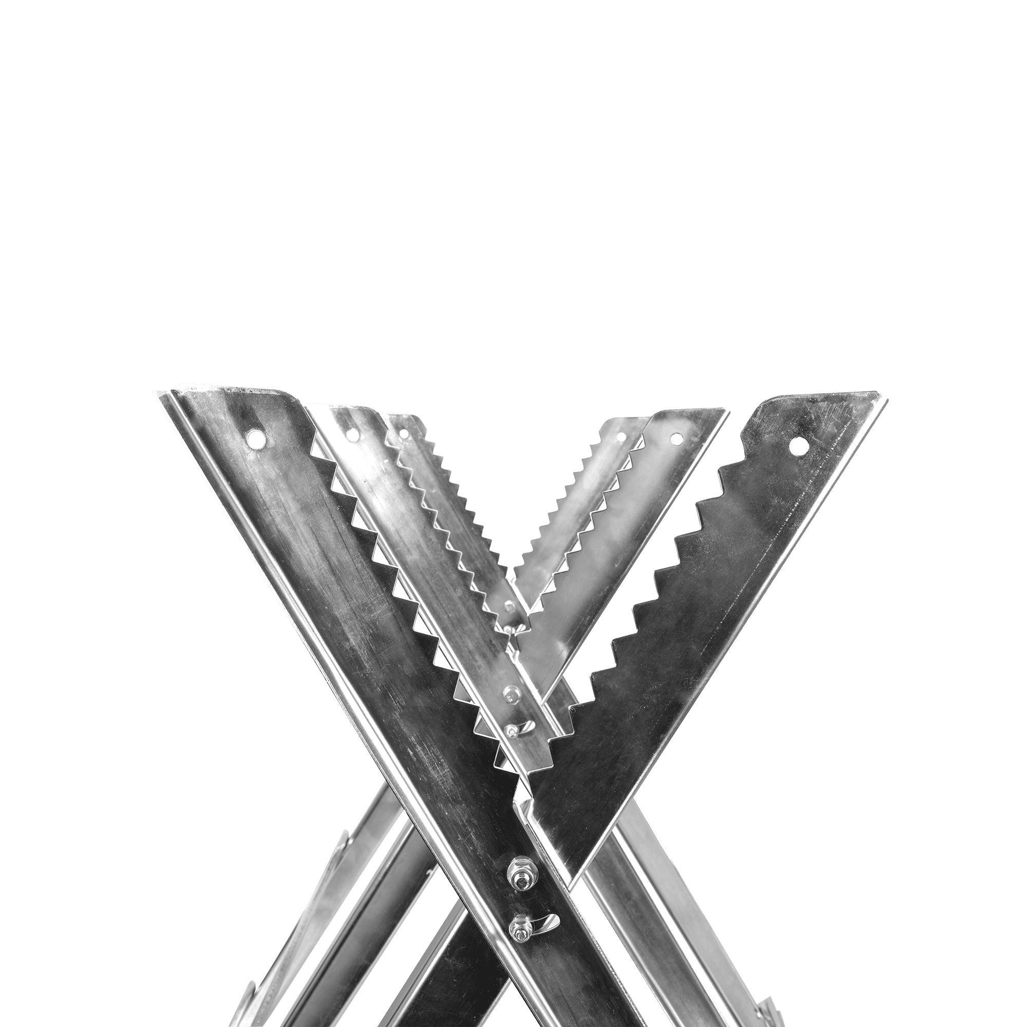 O Cavalete Metálico para corte de lenha oferece uma capacidade de carga de 200 kg, sendo a escolha perfeita para quem precisa de uma solução robusta e eficiente para cortar lenha. Com dentes recortados no metal, este cavalete bloqueia a rotação do tronco durante a serragem, garantindo maior estabilidade e segurança no processo. Fabricado em alumínio resistente, é também dobrável, facilitando o armazenamento e o transporte. Com dimensões de 795 x 880 x 320 mm, permite cortar troncos com um diâmetro máximo de 300 mm. Além disso, o cavalete é leve, pesando apenas 7 kg, mas suficientemente robusto para suportar trabalhos exigentes. Ideal para uso em quintais, zonas rurais e qualquer lugar onde seja necessário cortar lenha de forma eficaz e segura.