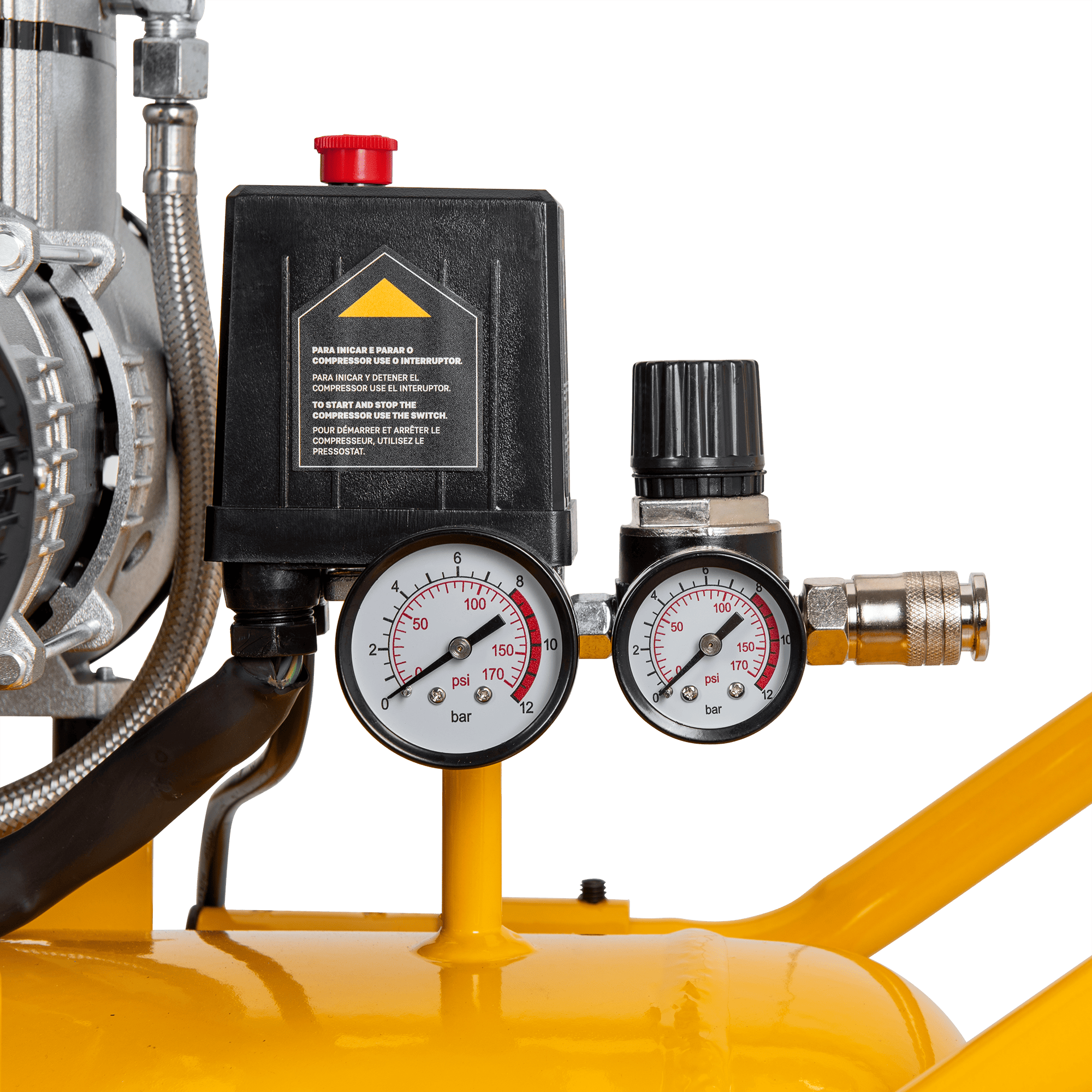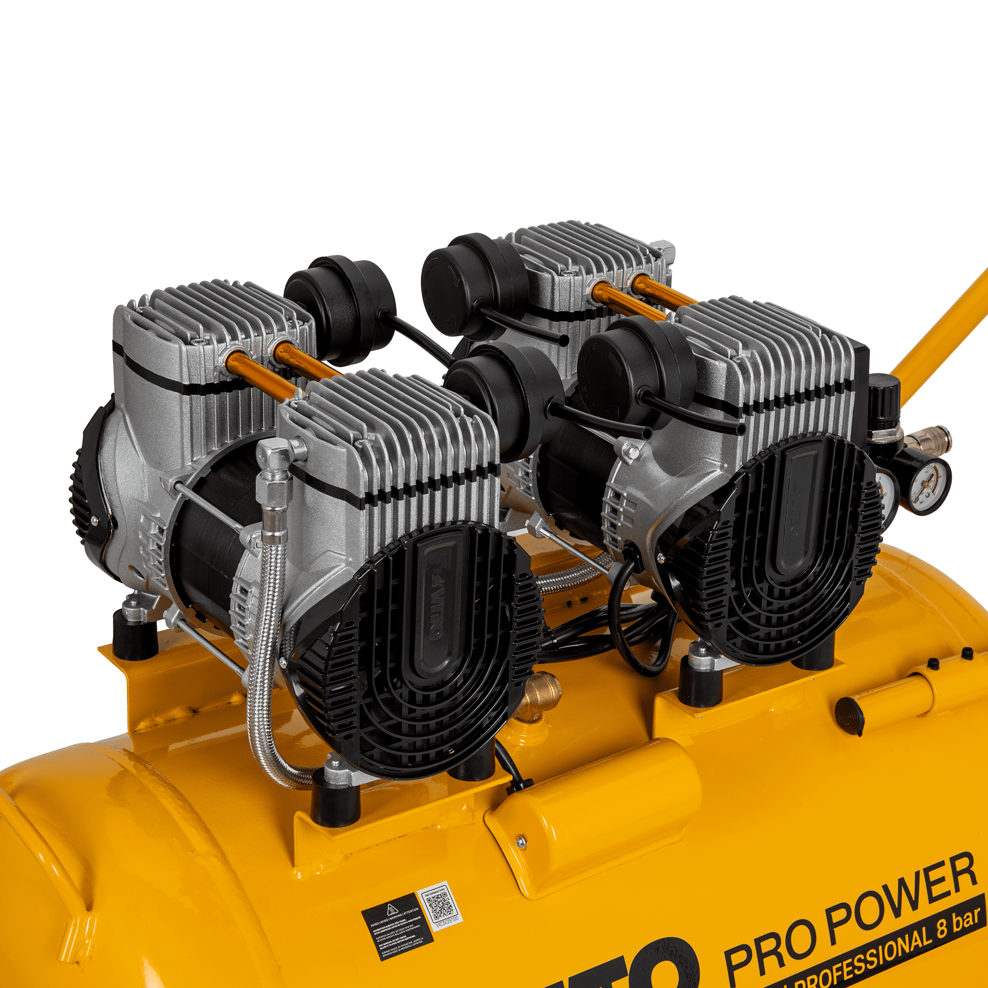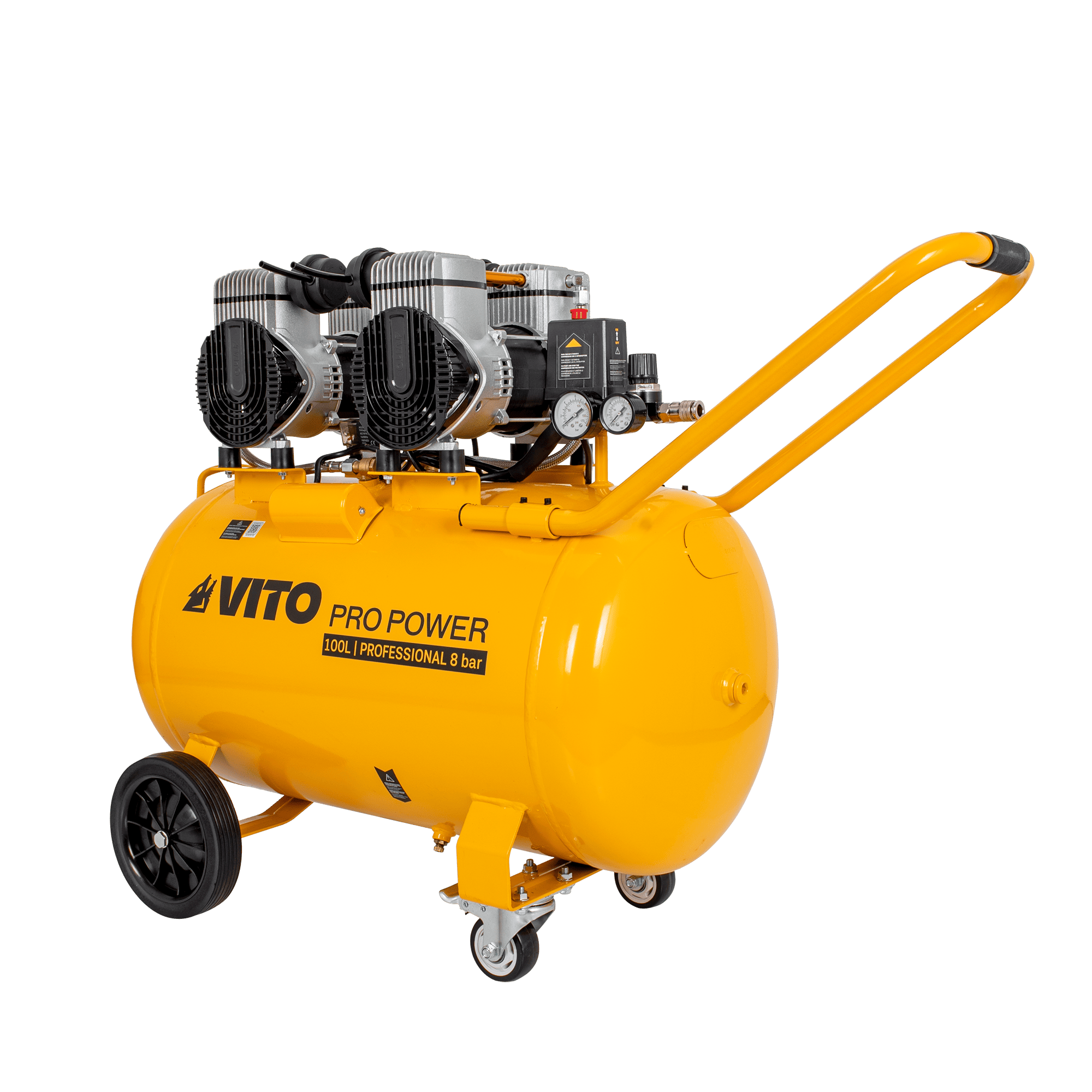 O compressor silencioso sem óleo de 100 litros foi desenvolvido para aplicações pneumáticas mais exigentes, onde é necessária maior capacidade de ar, potência elevada e funcionamento com baixo nível sonoro. O sistema isento de óleo assegura ar comprimido limpo e reduz significativamente as necessidades de manutenção, sendo adequado para utilização em ambientes interiores. Com um depósito de 100 litros e elevado caudal de ar, permite alimentar ferramentas pneumáticas de forma contínua, sendo ideal para pintura, manutenção, limpeza, enchimento e utilização intensiva em oficinas. Está equipado com válvula de segurança e proteção térmica, garantindo um funcionamento fiável e seguro. A estrutura robusta inclui rodas fixas e rodas giratórias, bem como pega de transporte, facilitando a movimentação em oficinas e áreas de trabalho profissionais.