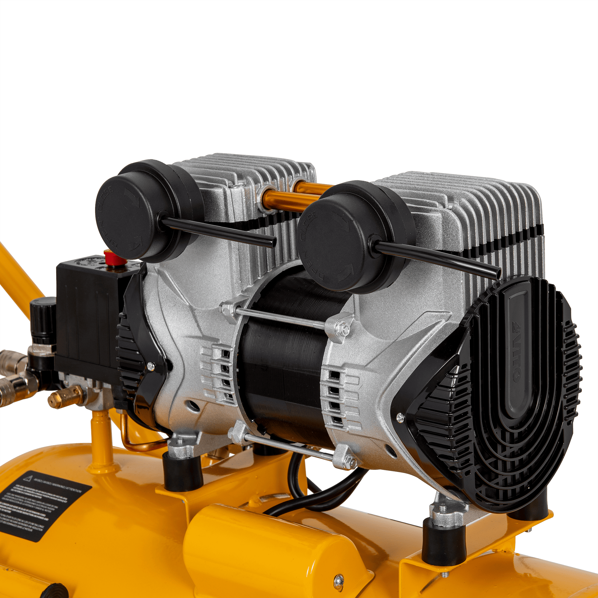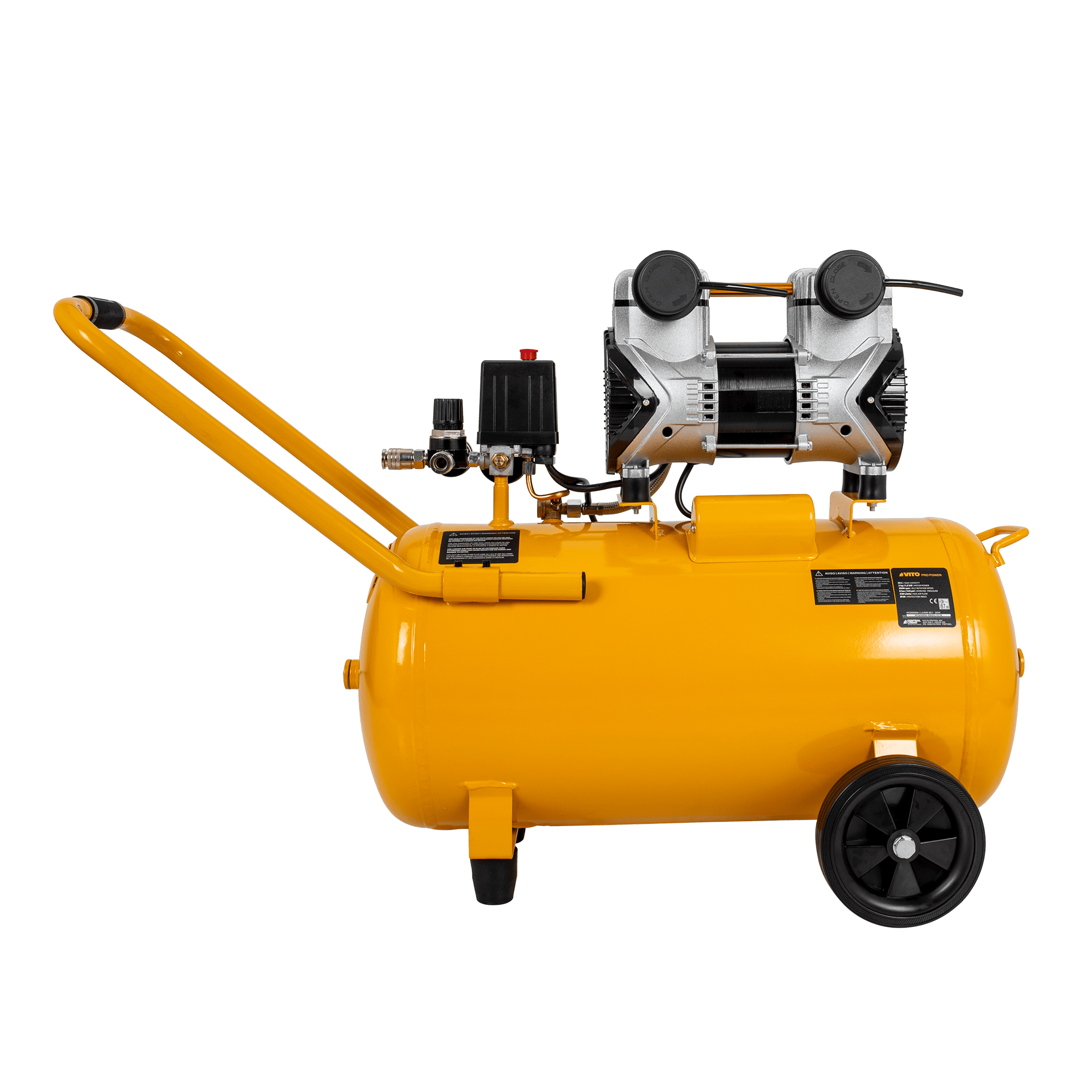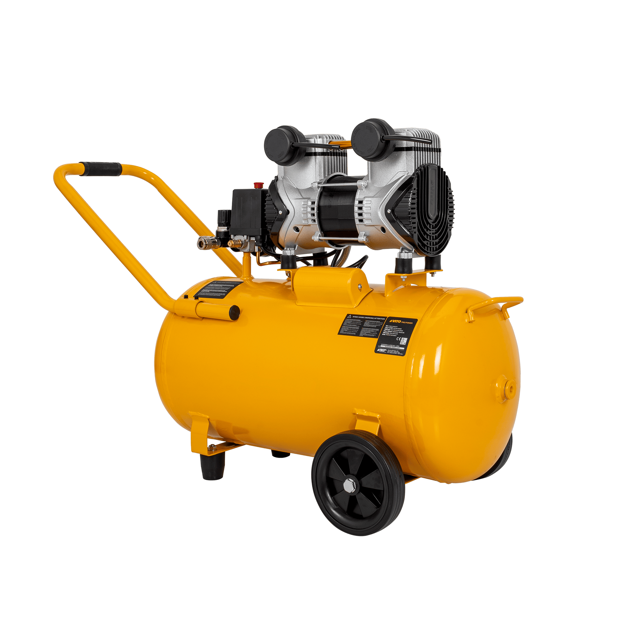 O compressor silencioso sem óleo de 50 litros é a solução ideal para quem procura potência, conforto acústico e baixa manutenção em trabalhos pneumáticos. O sistema isento de óleo garante ar comprimido limpo e reduz a necessidade de manutenção, sendo adequado para utilização em ambientes fechados. Com um depósito de 50 litros, oferece autonomia suficiente para aplicações como pintura, enchimento, limpeza e utilização de ferramentas pneumáticas. Dispõe de válvula de segurança e proteção térmica, assegurando um funcionamento fiável. A estrutura com rodas e pega facilita o transporte em oficinas e garagens.