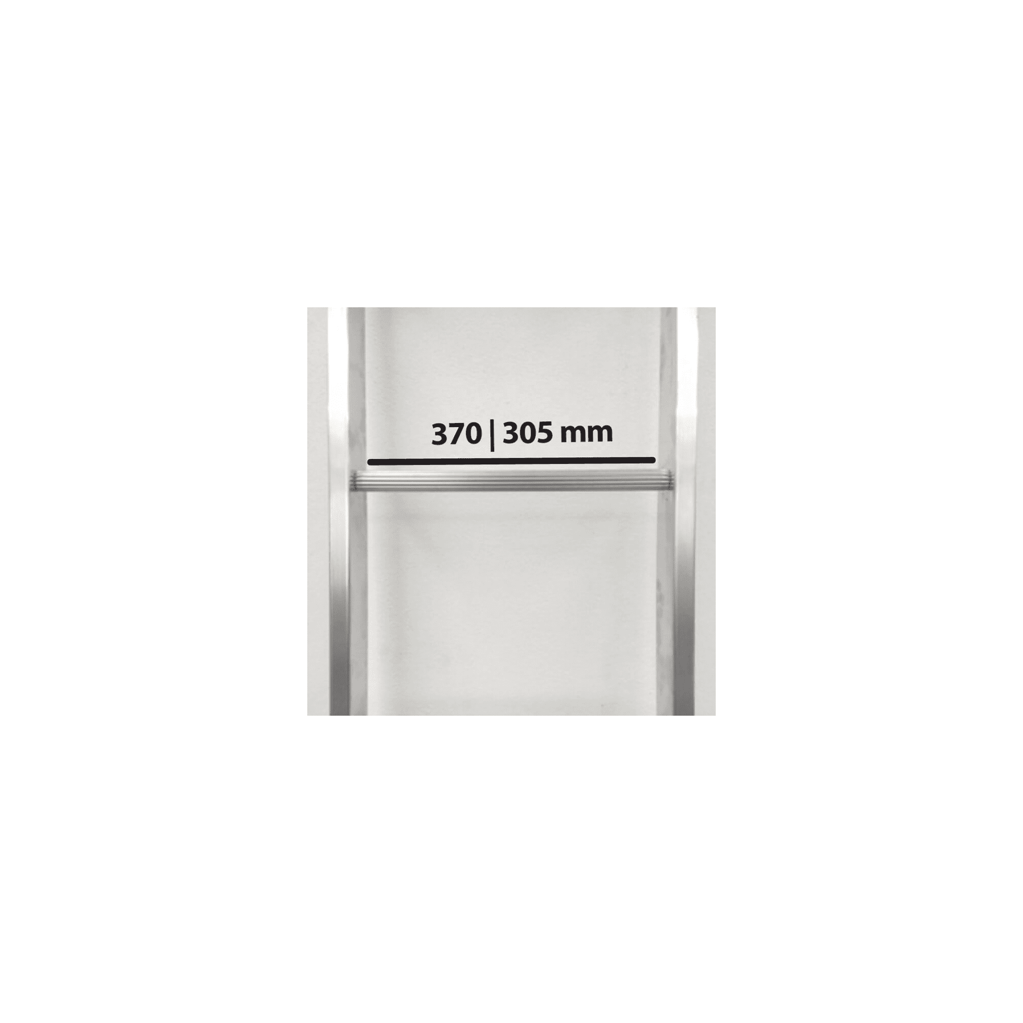 Escada Eco Dupla fabricada em alumínio, tem degraus redondos anti-deslizantes e pés antiderrapantes.