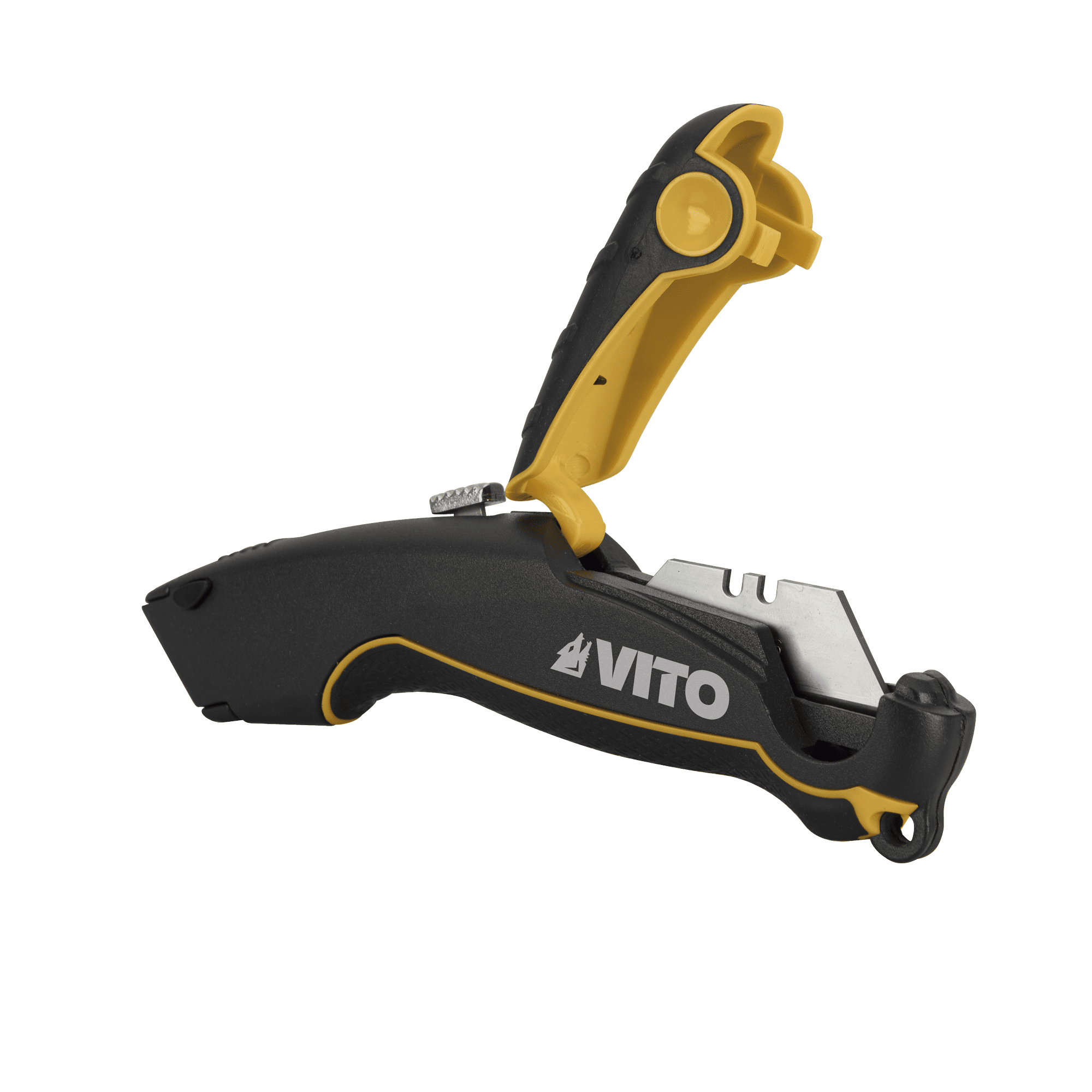 Faca de Alcatifa Pro com Lâminas tem qualidade profissional, conta com um sistema de armazenamento de lâminas, possui lâmina retátil para maior seguança, inclui ainda 5 lâminas SK4.