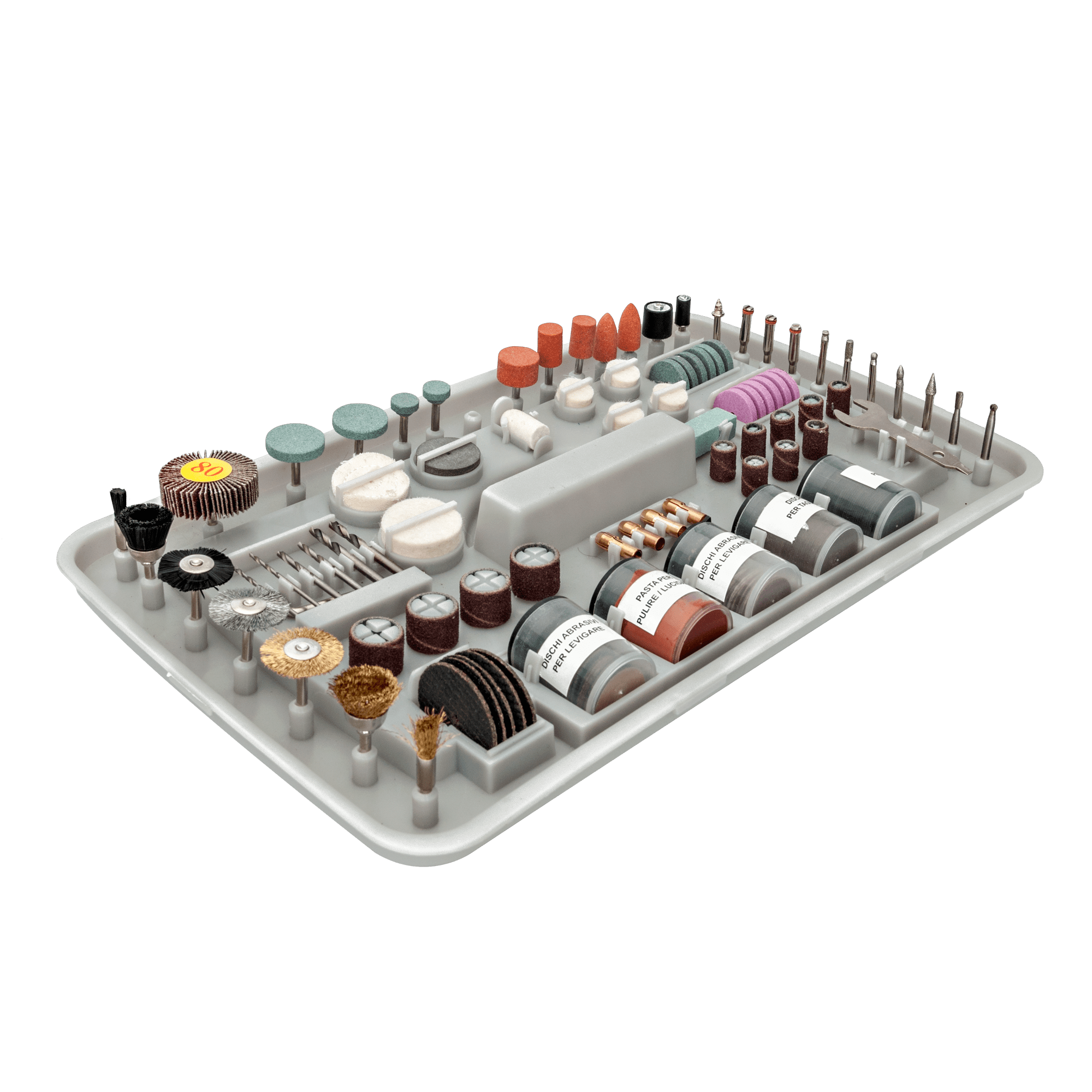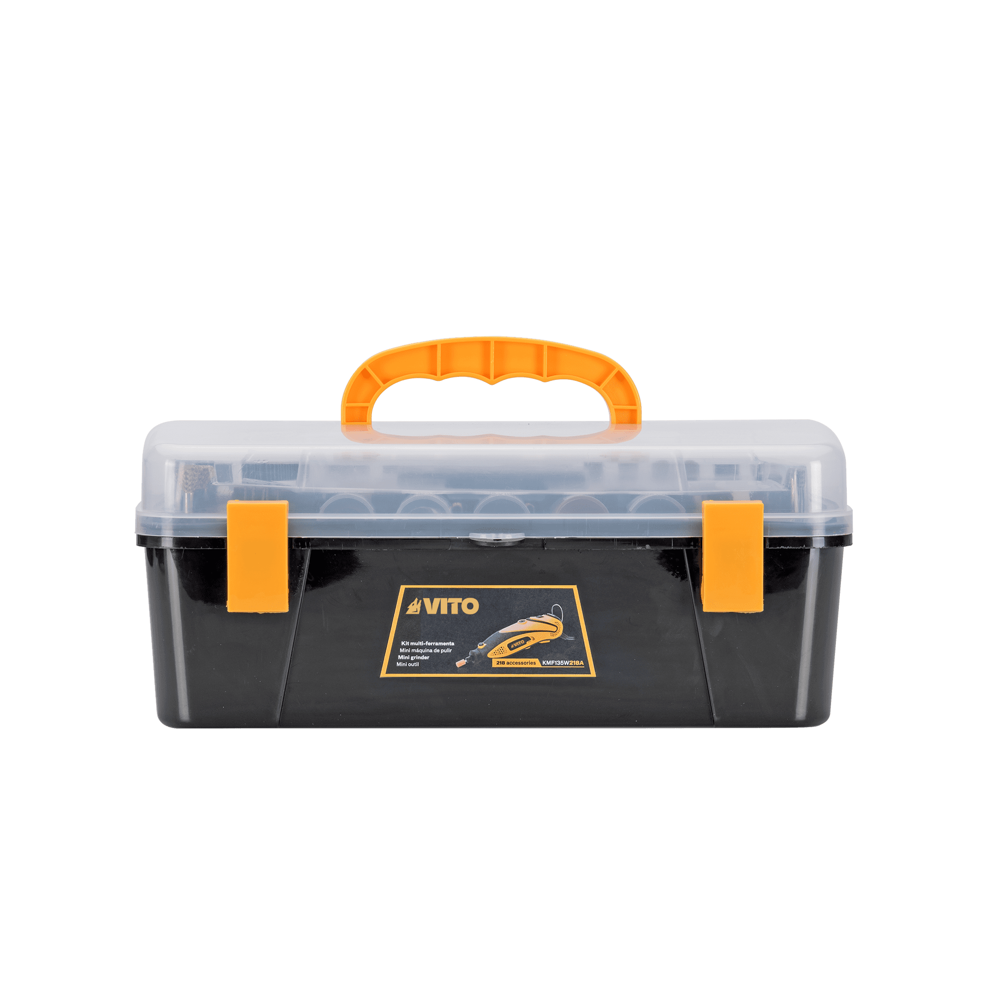 Kit Mini-Ferramenta Multifunções com uma potência nominal de 135W, tem uma velocidade de rotação em vazio de 10000-32000rpm e tem 6 níveis de ajuste da velocidade, com um diâmetro máximo da broca de 3,2mm, ferramentas de alta qualidade, para facilitar a realização dos seus trabalhos.