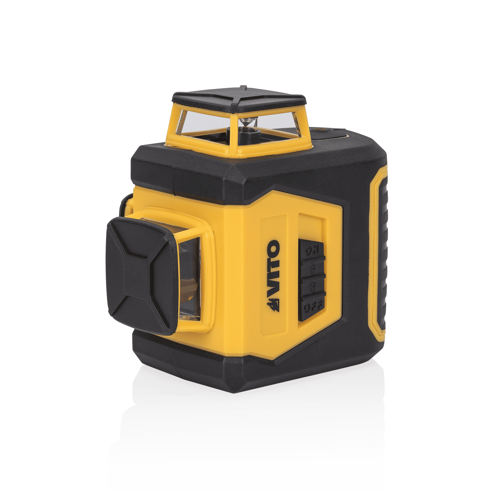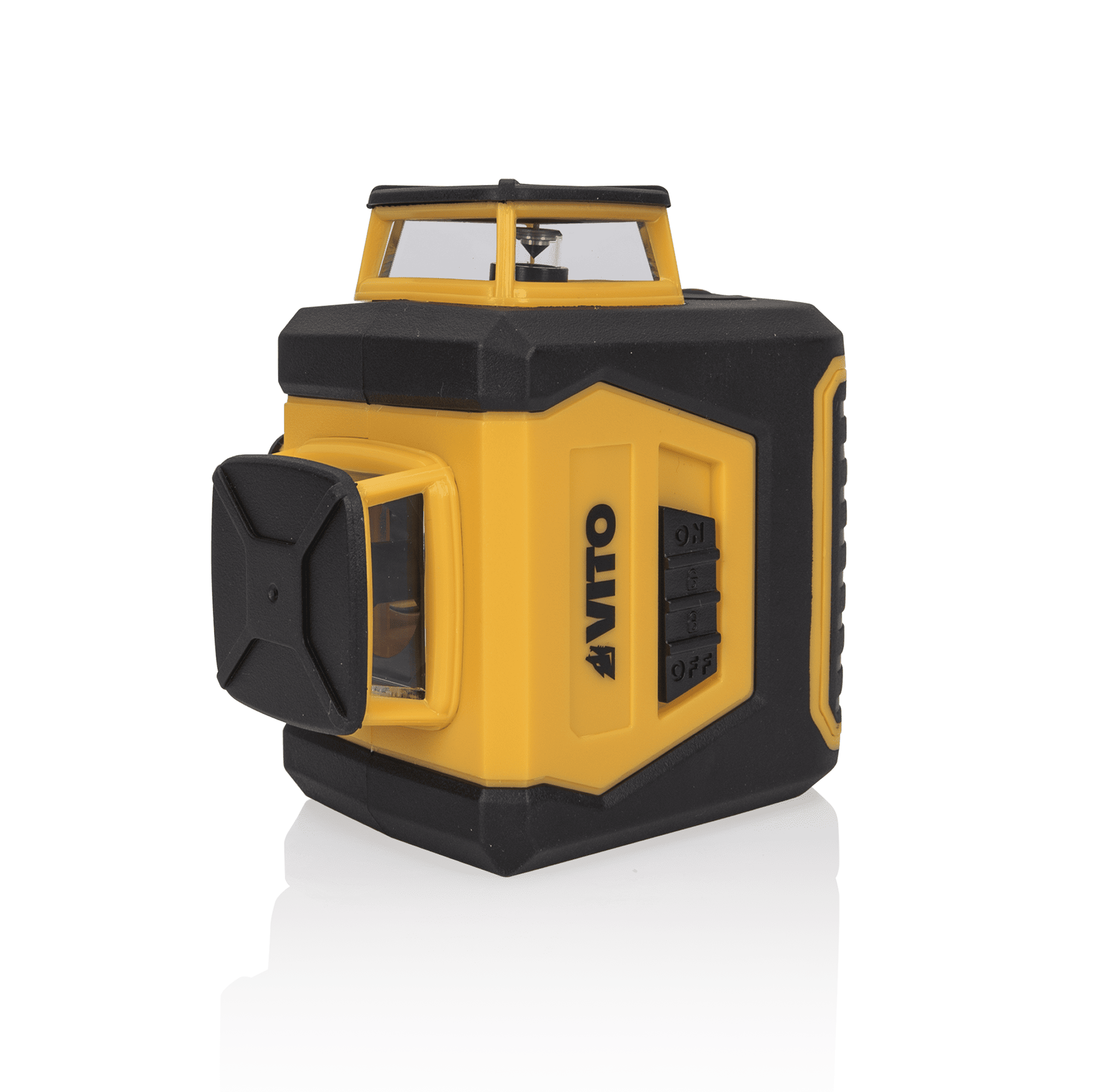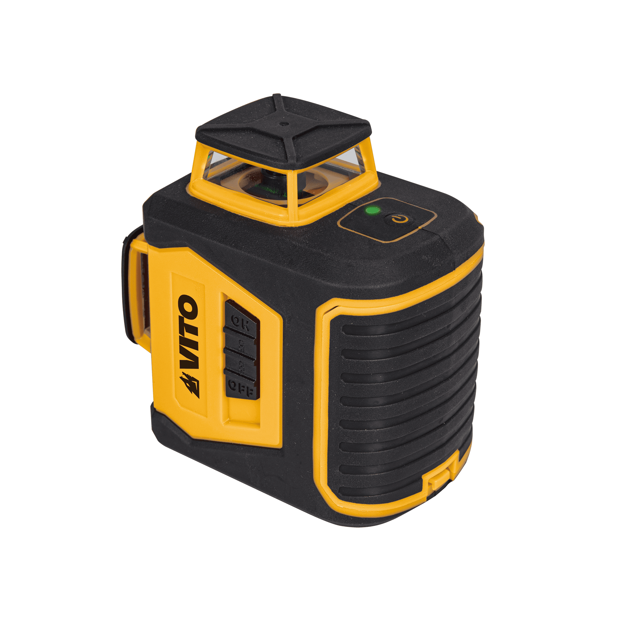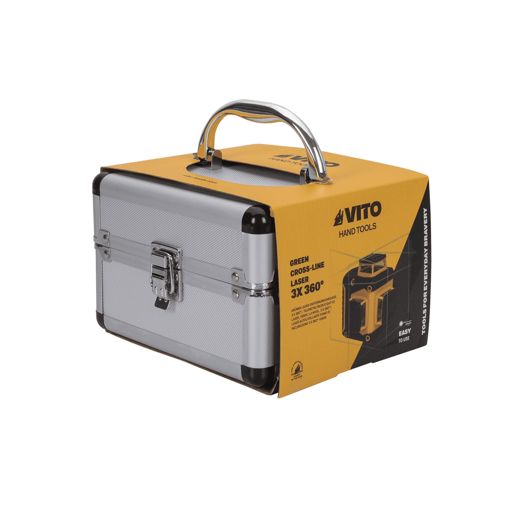 O Laser Autonivelante Plano 360º VITO projeta 3 linhas laser em 360º com luz verde, uma horizontal, uma vertical e uma transversal, podendo ser usadas em simultâneo ou alternadas de forma independente. Com um laser de Class2, <1 mw de potência, apresenta um diâmetro de raio de ação de 20 mts e uma precisão de +/- 0,5mm/m. Ferramenta indicada para nivelar superfícies interiores e exteriores desde paredes, pisos, tetos, entre outras. Equipado com 4 pilhas alcalinas 1,5 V LR06 (AA) e uma autonomia de 3 horas, tem ainda uma rosca de fixação do tripé ¼.