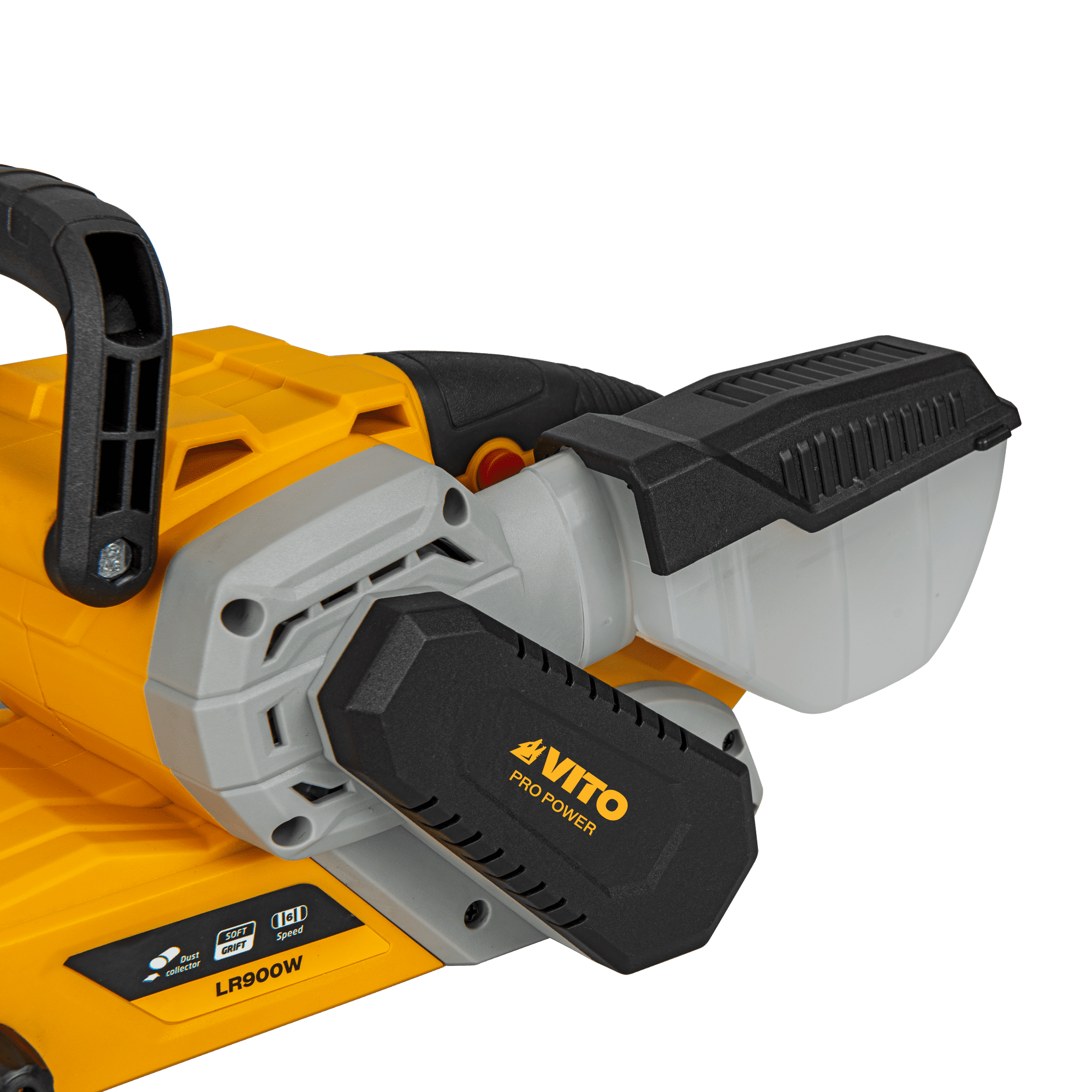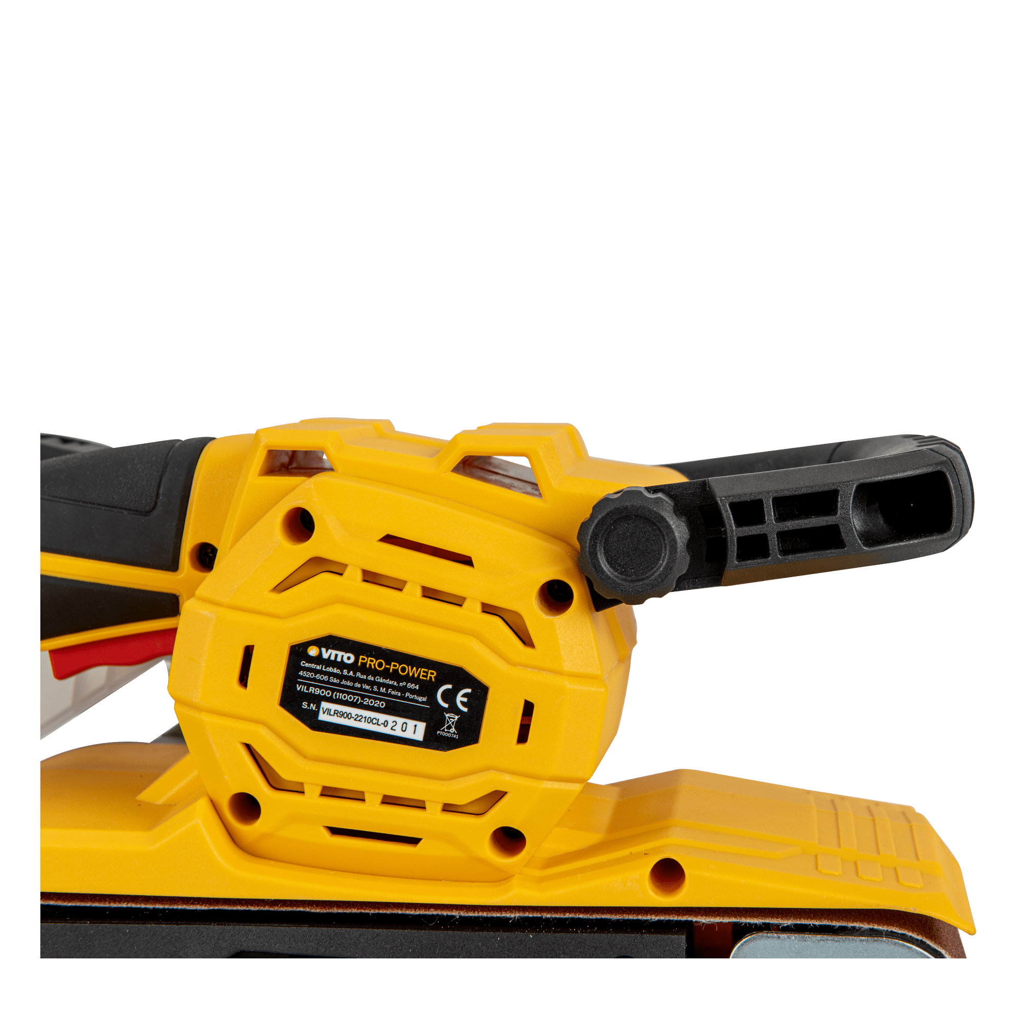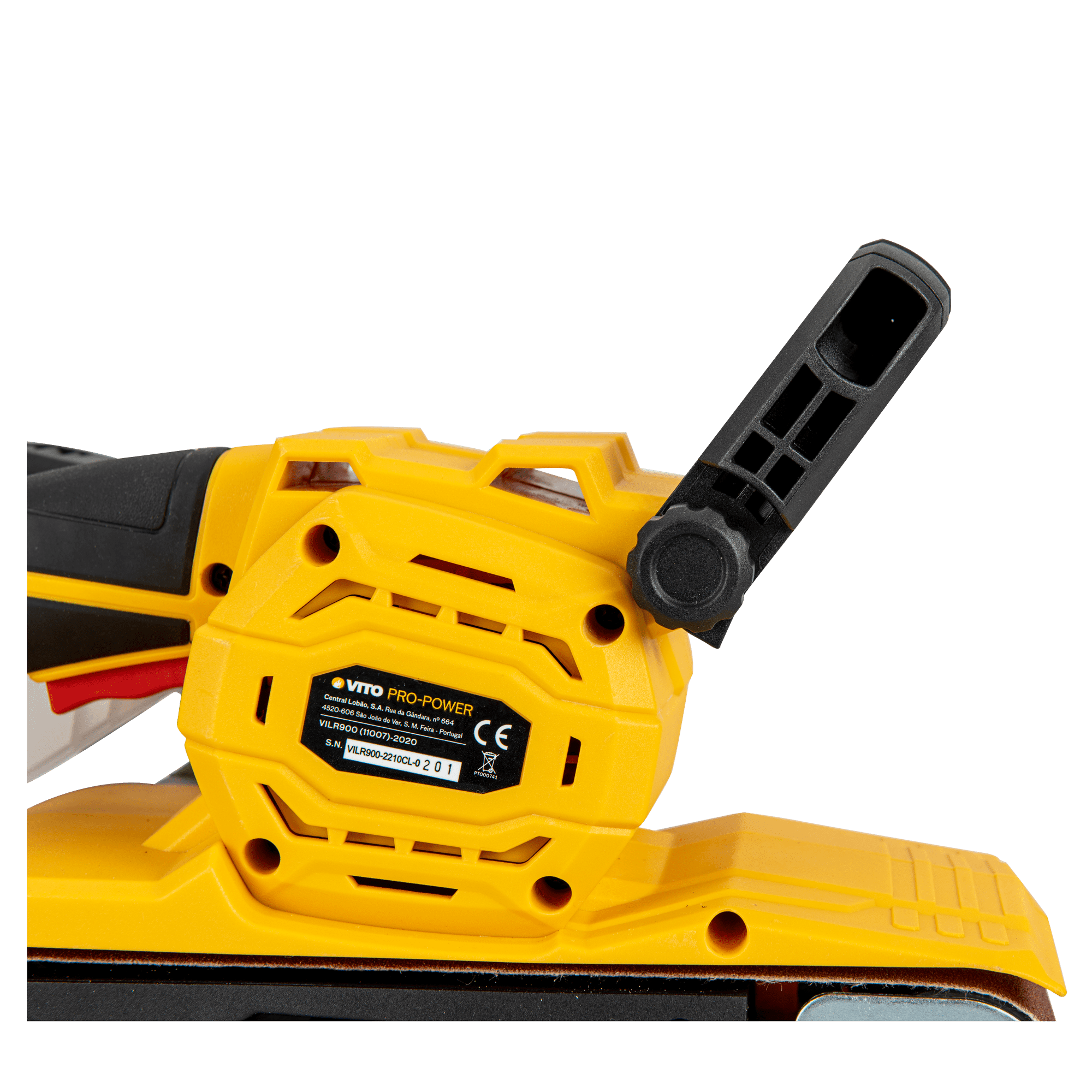 Lixadora de Rolos com uma potência de 900W, conta com uma tensão de alimentação de 230 V 50 Hz, com uma velocidade de rotação de 120-380rpm, conta com 6 ajustes de velocidade, tem um comprimento do cabo de alimentação de 2 metros, possui uma classe de isolamento II.