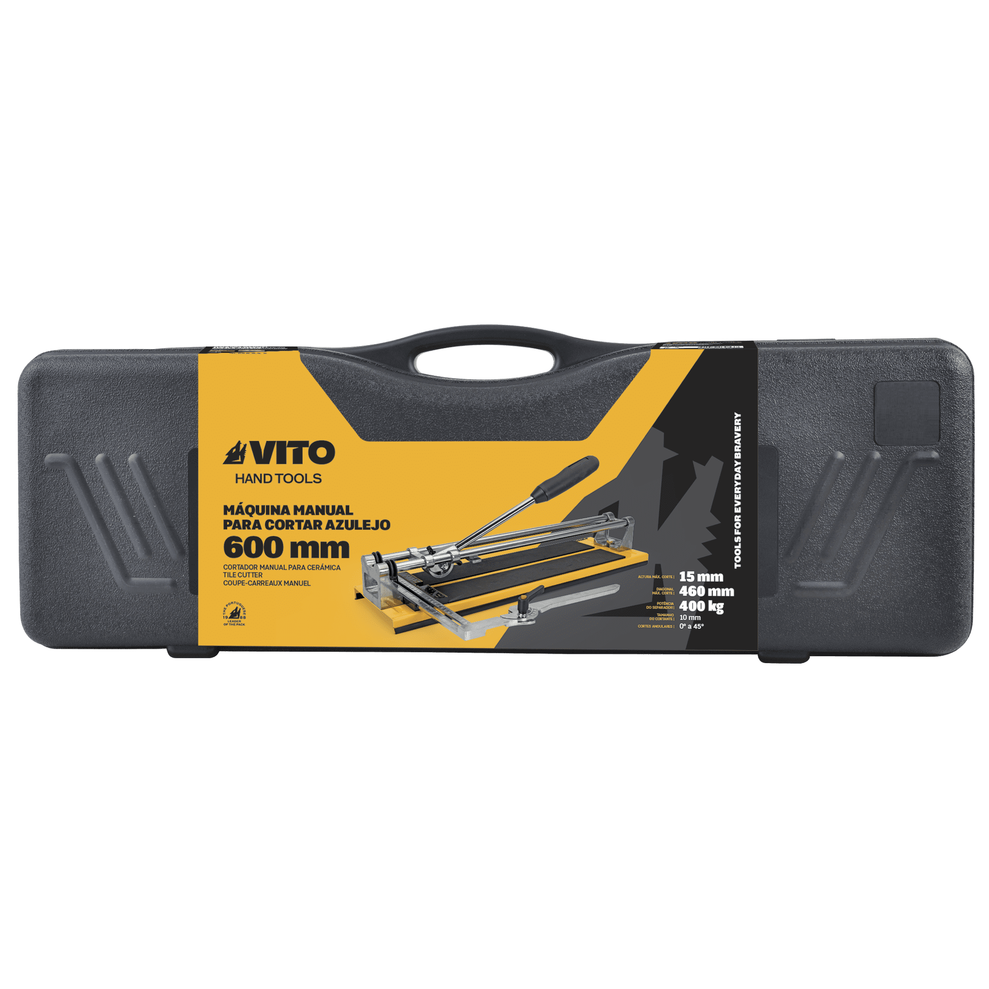 Máquina de Cortar Azulejo contém um comprimento máximo de corte de 600 mm e um comprimento mínimo de 66 mm, conta também com uma altura máxima de corte de 15 mm, tem uma potência do separador de 400kg, cortante com 10 mm, tem ainda uma diagonal máxima de corte de 460 mm e inclui um topo lateral para realizar cortes repetitivos e a 45º.
