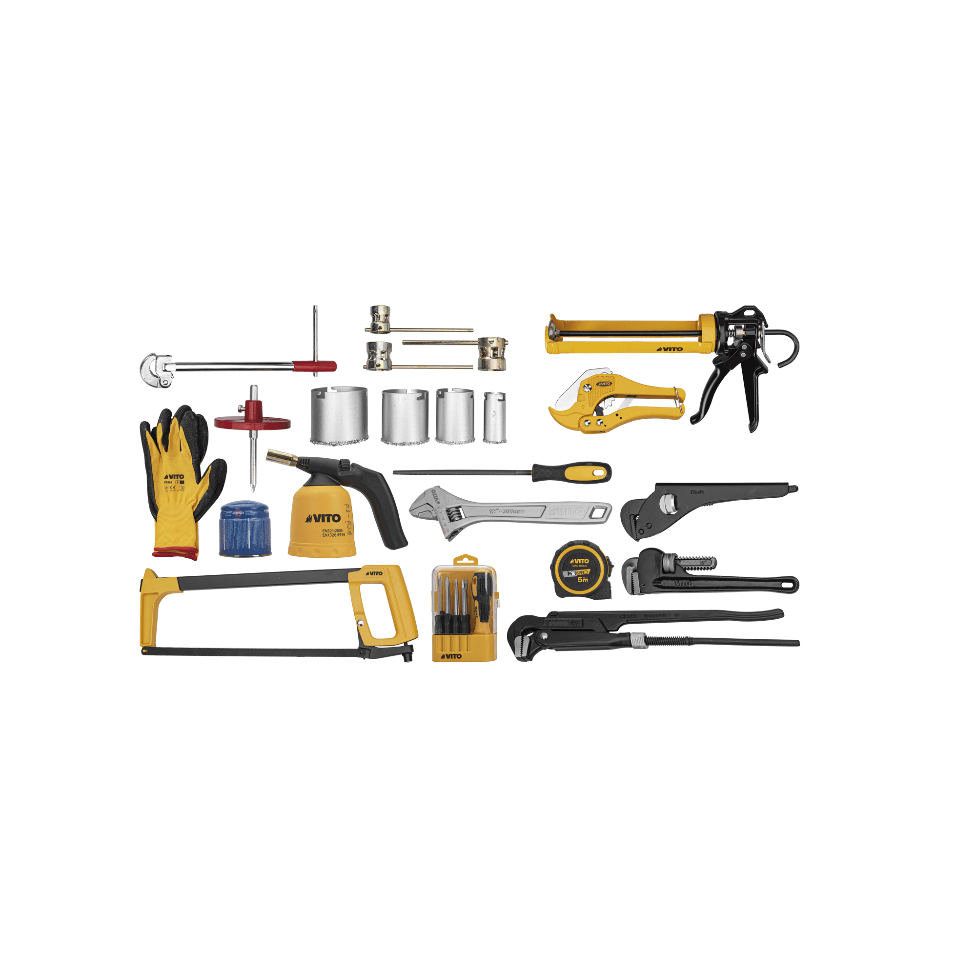 Mala de Ferramentas para Canalizador com 17 peças, 1 mala para ferramentas, 4 chaves, 1 conjunto de 8 chaves multiusos, 1 lima, 1 serrote e 1 corta tubos.