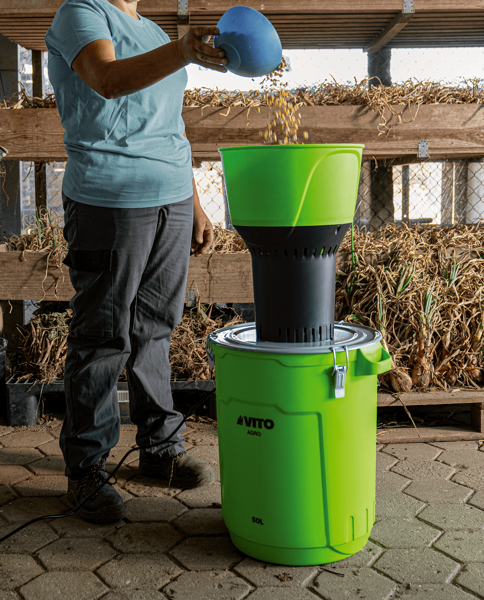 Com uma capacidade de 50 litros, este equipamento oferece desempenho de alta qualidade, correspondendo às necessidades de moagem a granel. Equipado com 5 crivos (2/3/4/6/8 mm), permite ajustar a moagem conforme a necessidade, oferecendo opções de moagem de grãos em diferentes espessuras, de grosso a fino. O design intuitivo permite uma operação simples com um único botão, além de suportar alimentação contínua. Dicas de Segurança: - Antes de utilizar o moinho, verifique se os grãos estão devidamente secos. - Evite operar em ambientes com alta humidade ou materiais inflamáveis. - Verifique e limpe os crivos periodicamente para garantir o funcionamento ideal da máquina.