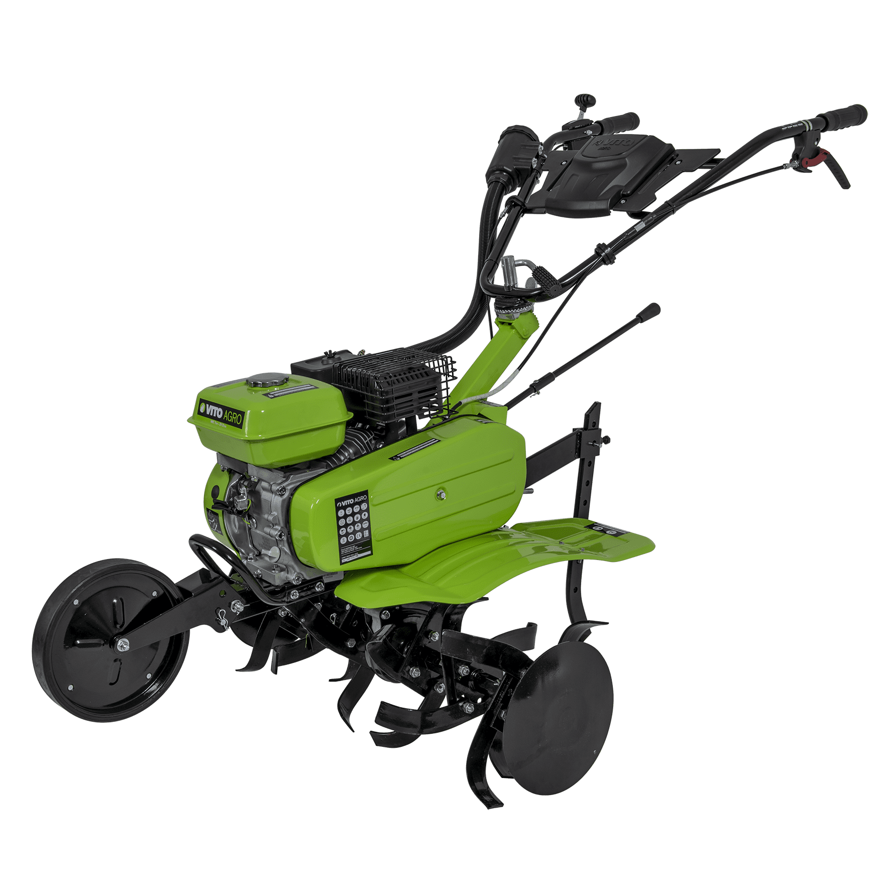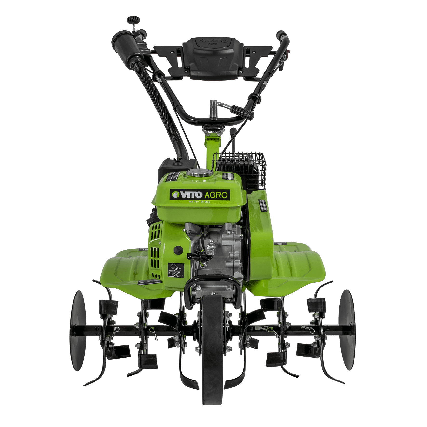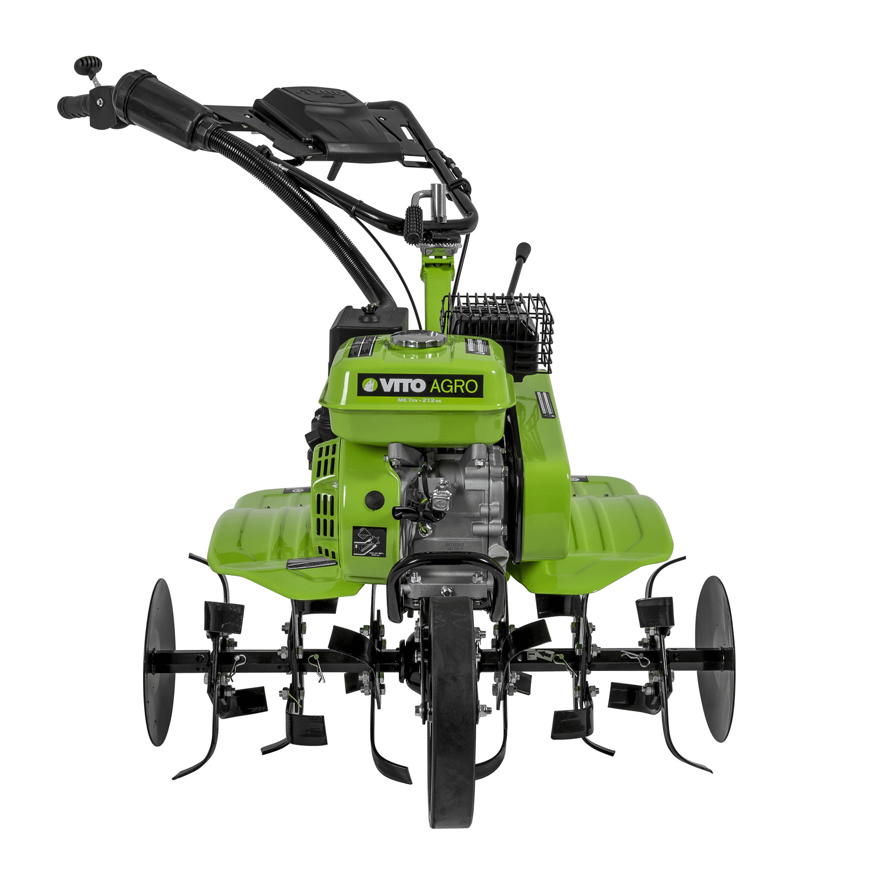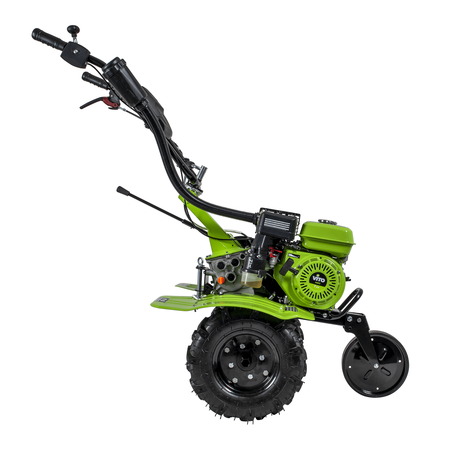 Motoenxada com 7cv, combustível Gasolina 95, tem uma cilindrada de 208cc, com um motor de 4 tempos, tem 3 velocidades, com 3600 rotações por minuto, tem uma capacidade do depósito de combustível de 3,6L, com uma capacidade do depósito de óleo de 600ml, com fresas e abre regos com uma dimensão de 87 - 95 cm, 35 cm de diâmetro de corte, tem ainda um filtro triplo, uma caixa de ferramentas e uma pega de transporte.