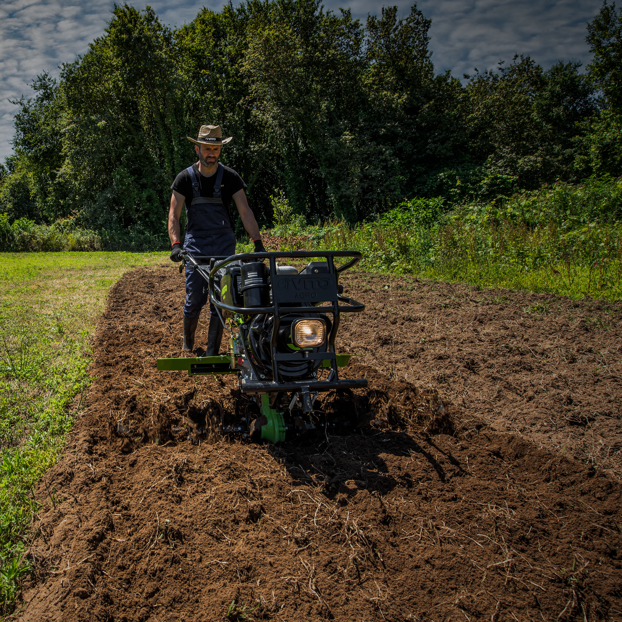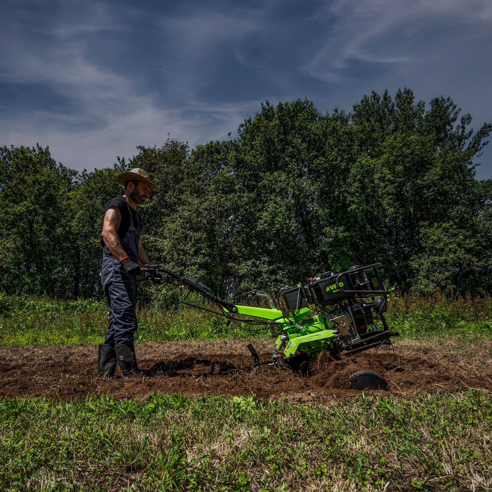 O seu motor diesel com uma cilindrada de 456cc e uma potência de 12cv/8.9kW está equipado com caixa de 2 velocidades (2 frente + 1 trás) para o máximo desempenho. Inclui um abre regos duplo com 360mm de diâmetro de cada fresa. Contem uma largura de trabalho de 1450mm permitindo abranger terrenos de média/grande dimensão. Amiga do ambiente em conformidade com a norma Euro 5, esta máquina é ideal para quem procura qualidade e desempenho.
