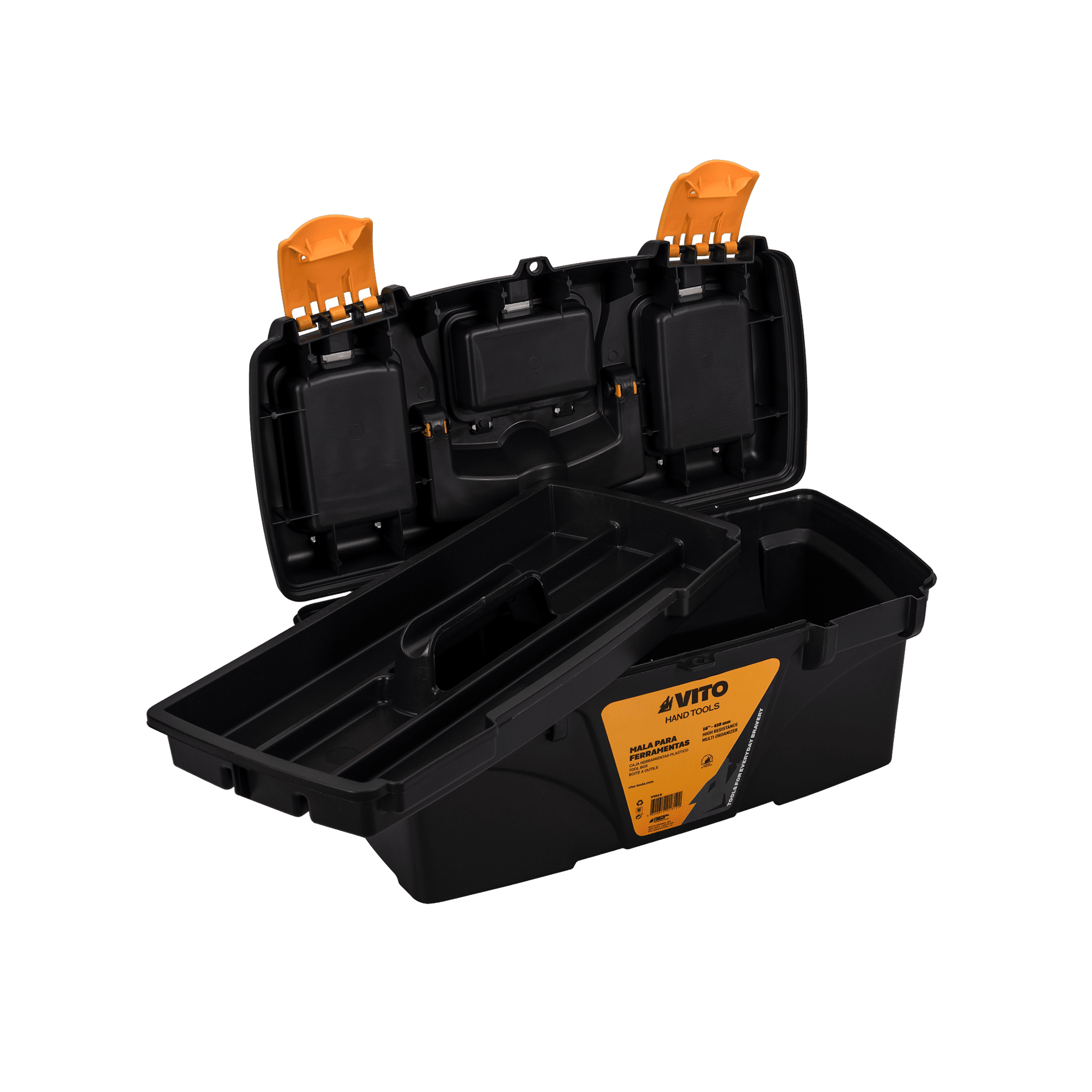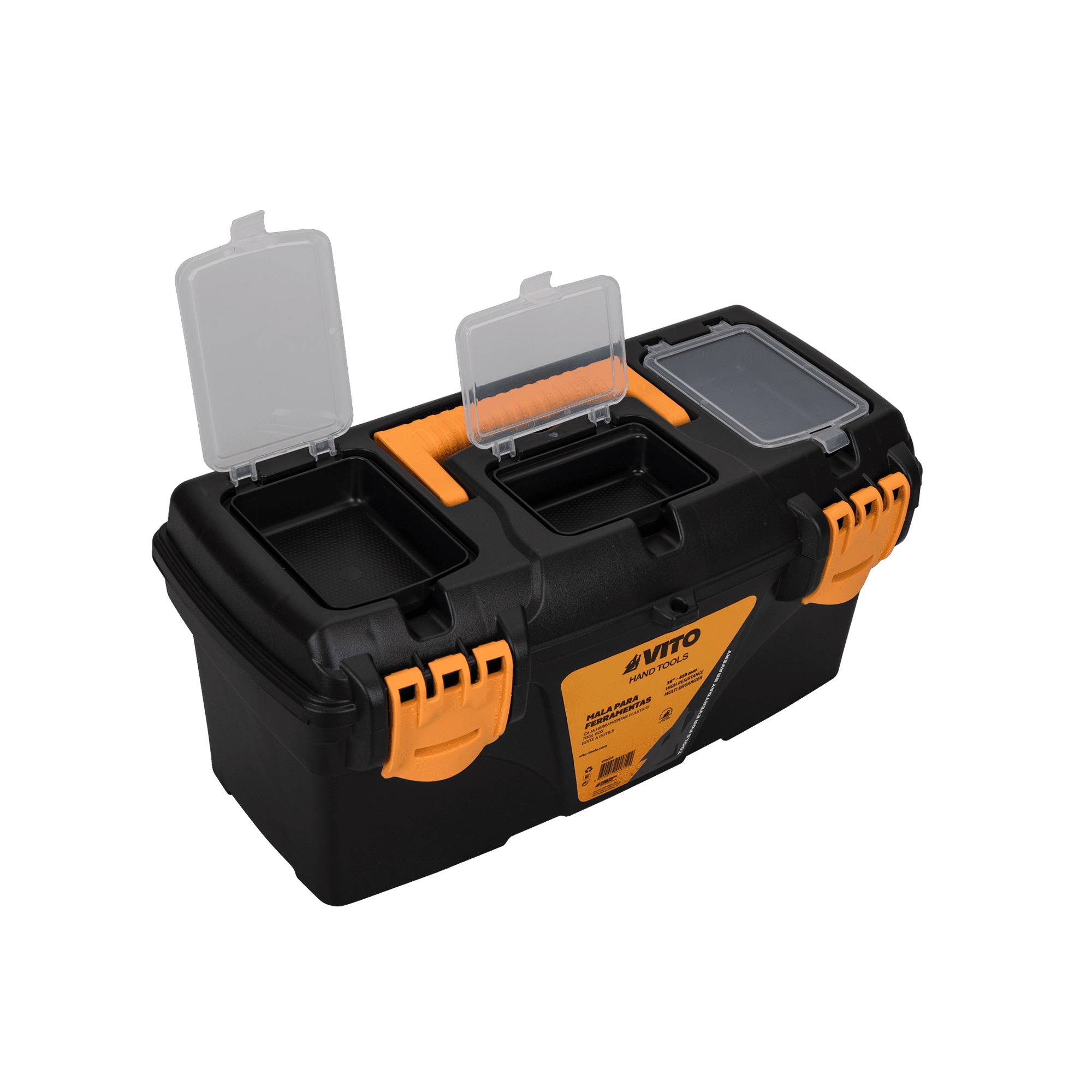 Mala para ferramentas fabricada em material plástico resistente, desenvolvida para o armazenamento, transporte e organização de ferramentas manuais e respetivos acessórios. A construção robusta permite utilização em ambientes profissionais, garantindo proteção adequada do conteúdo.