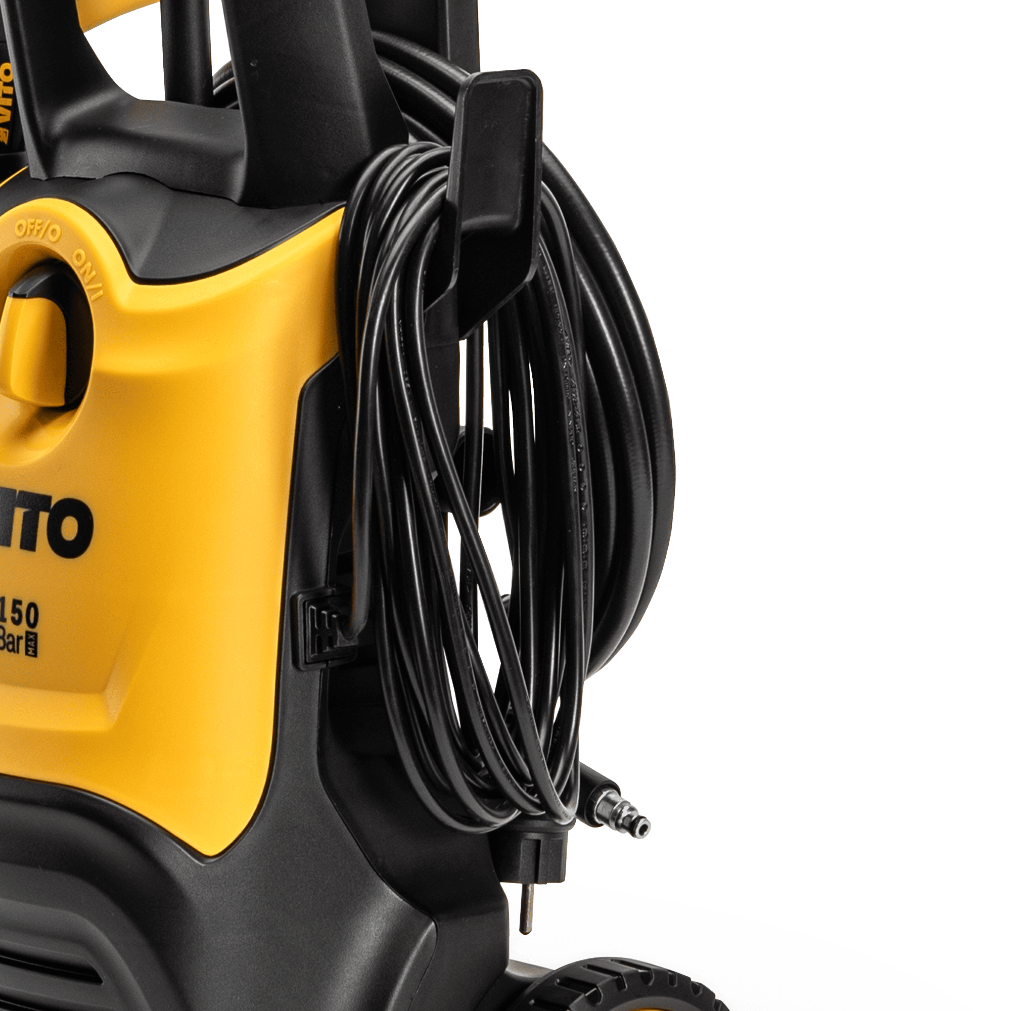O jato regulável e o sistema de paragem automática melhoram o controlo do utilizador, permitindo ajustar a intensidade da água, reduzindo o consumo e aumentando a segurança. O cabo de 5 metros e a mangueira de PVC oferecem boa liberdade de movimentos em áreas residenciais, mantendo a operação simples e intuitiva.