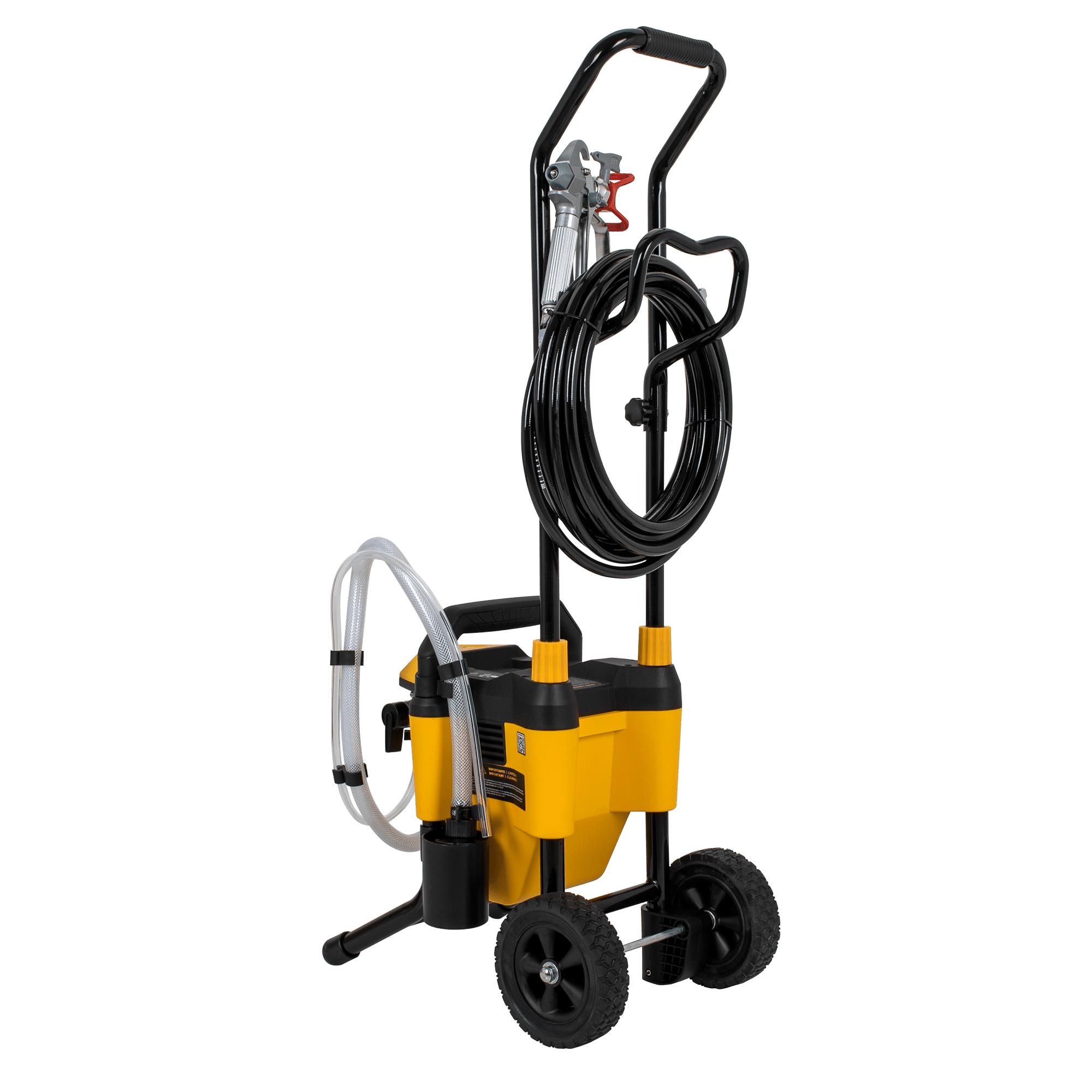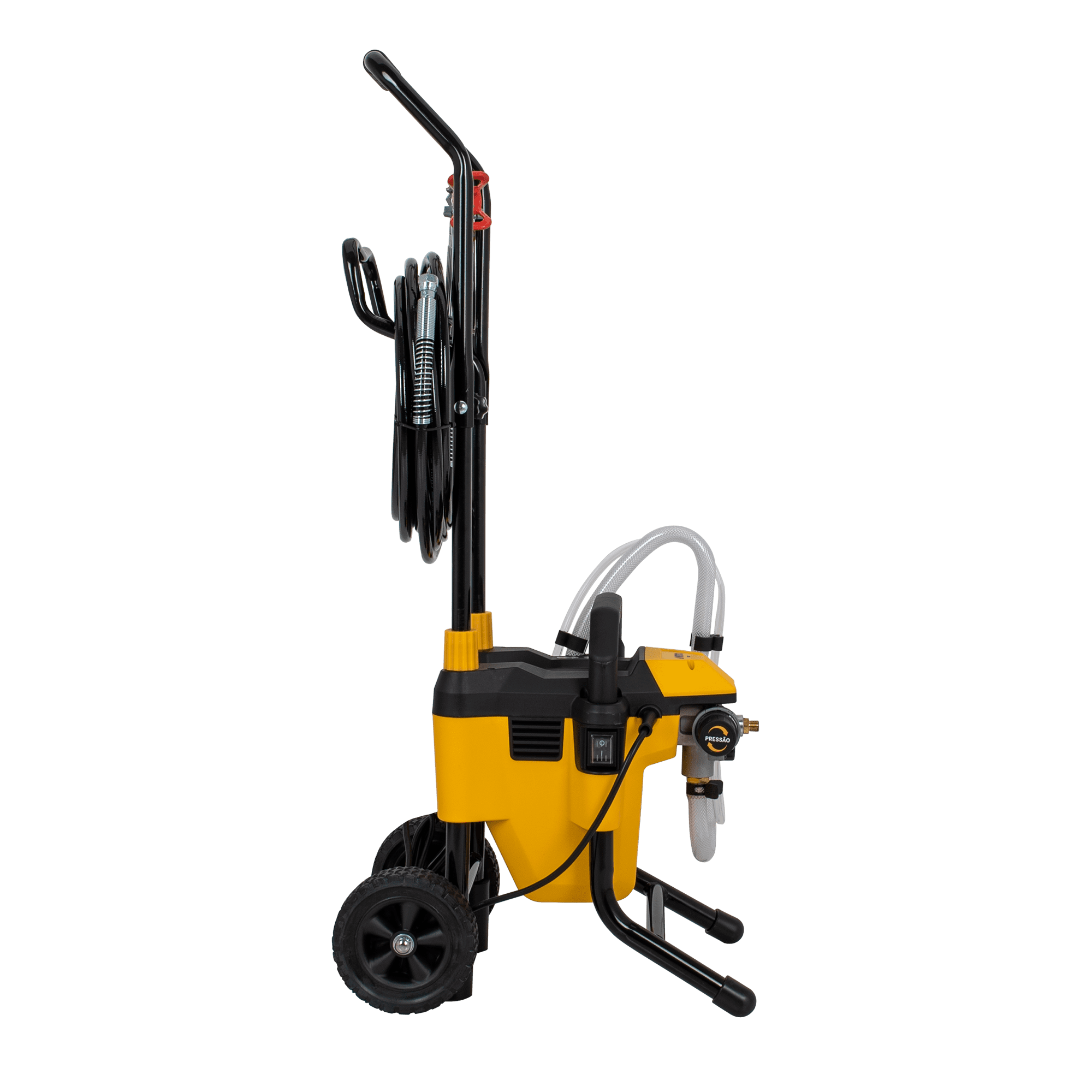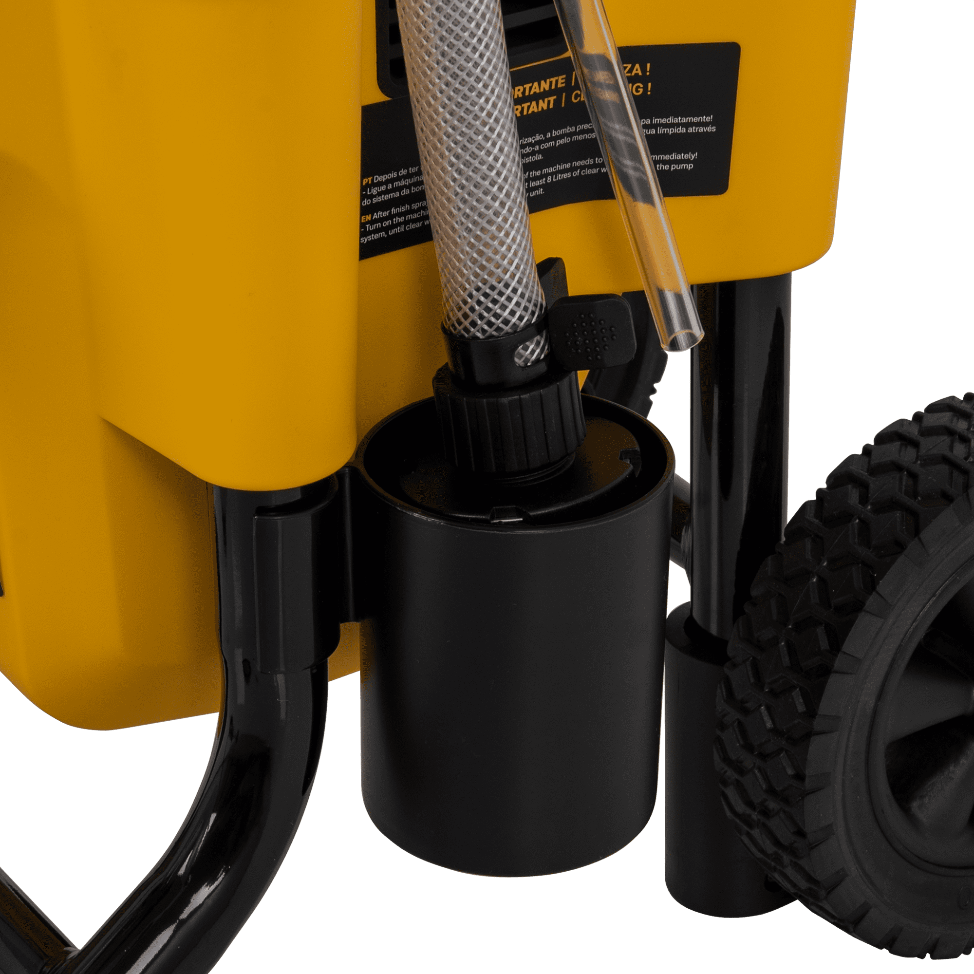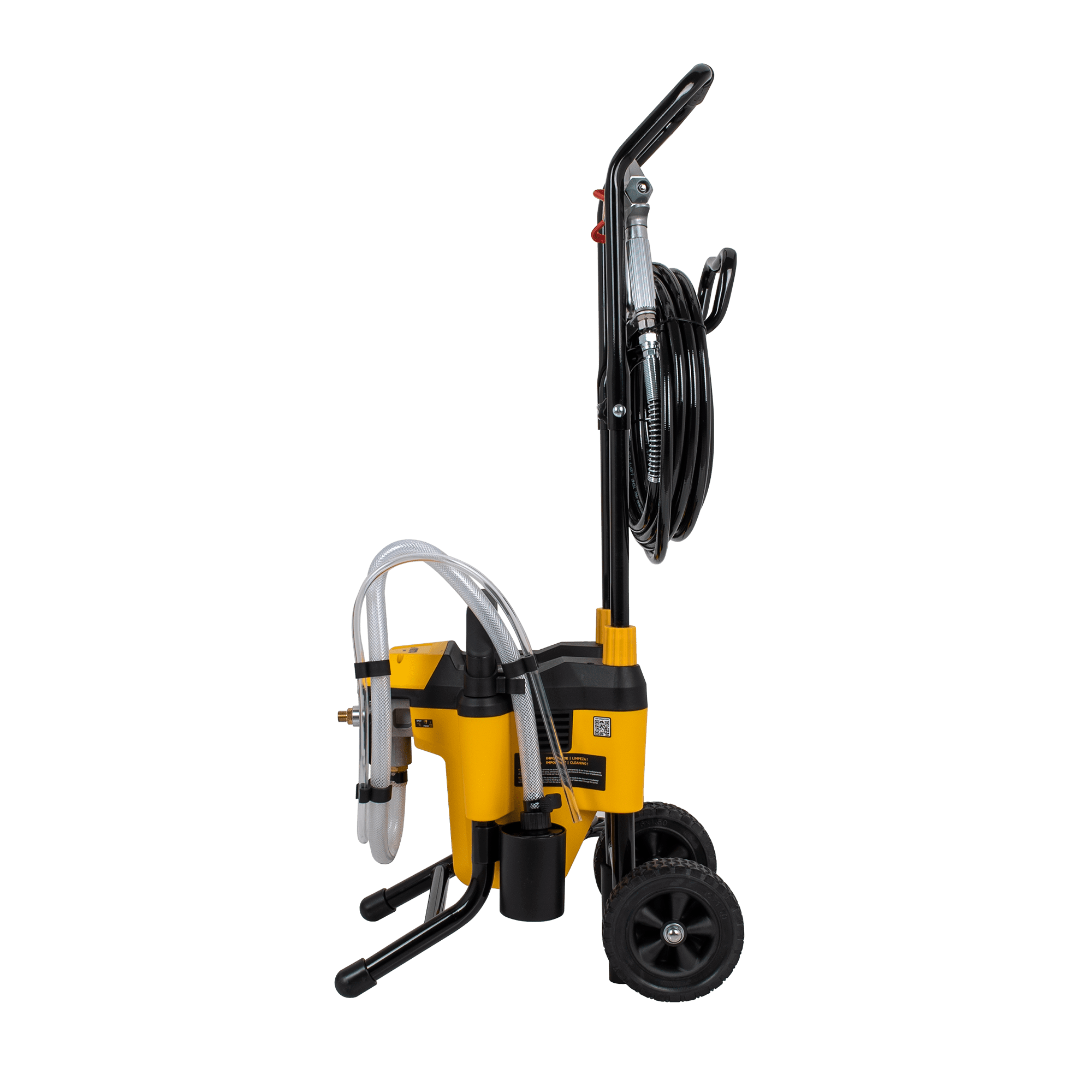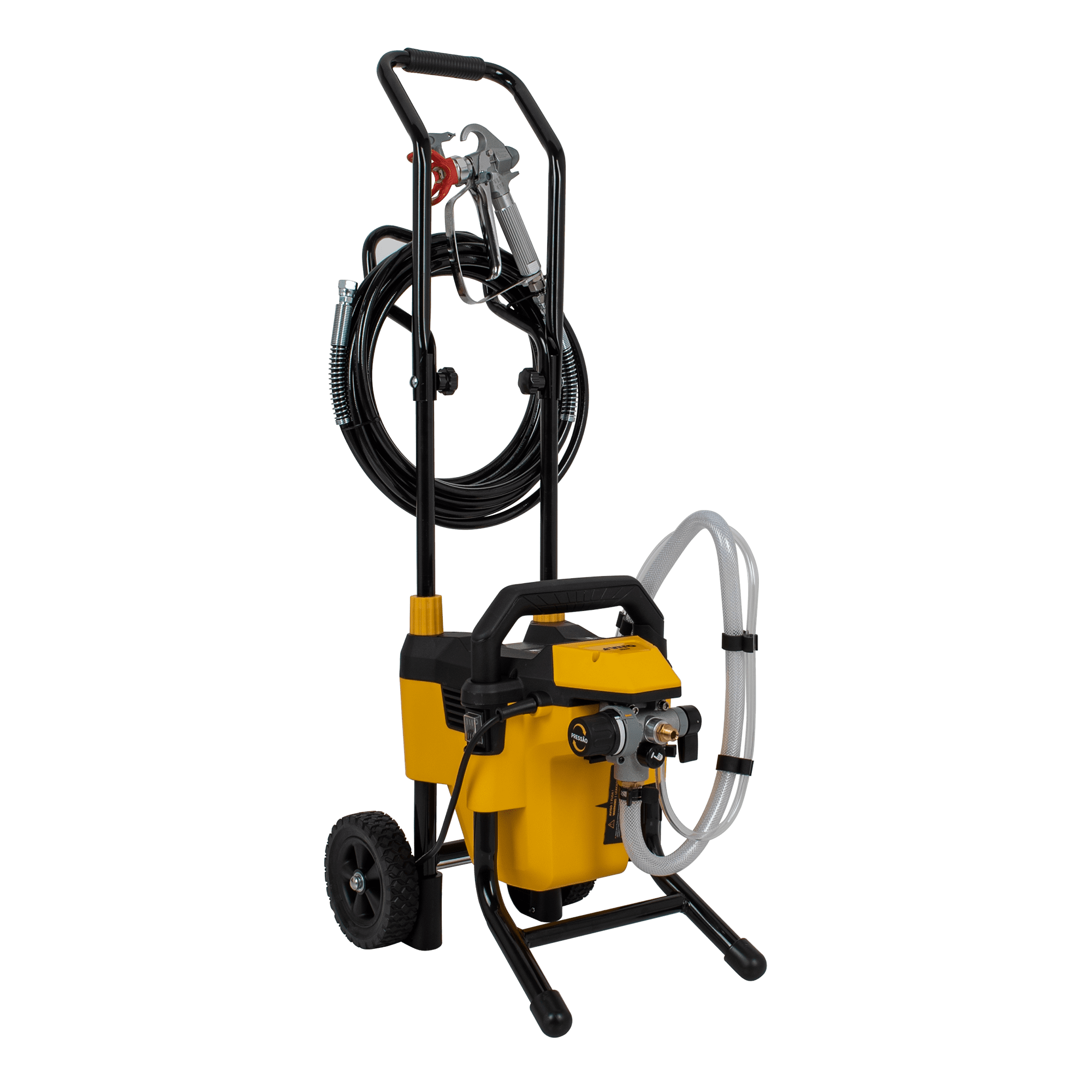 O sistema Airless garante um excelente rendimento e um melhor acabamento em todos os trabalhos. Com este equipamento, é projetada a quantidade necessária de tinta evitando desperdícios, diminuindo os resíduos de sujidade. De fácil transporte e manuseamento, esta máquina inclui rodas, uma mangueira de 7.5m e ainda um extensor de pistola para um maior alcance.