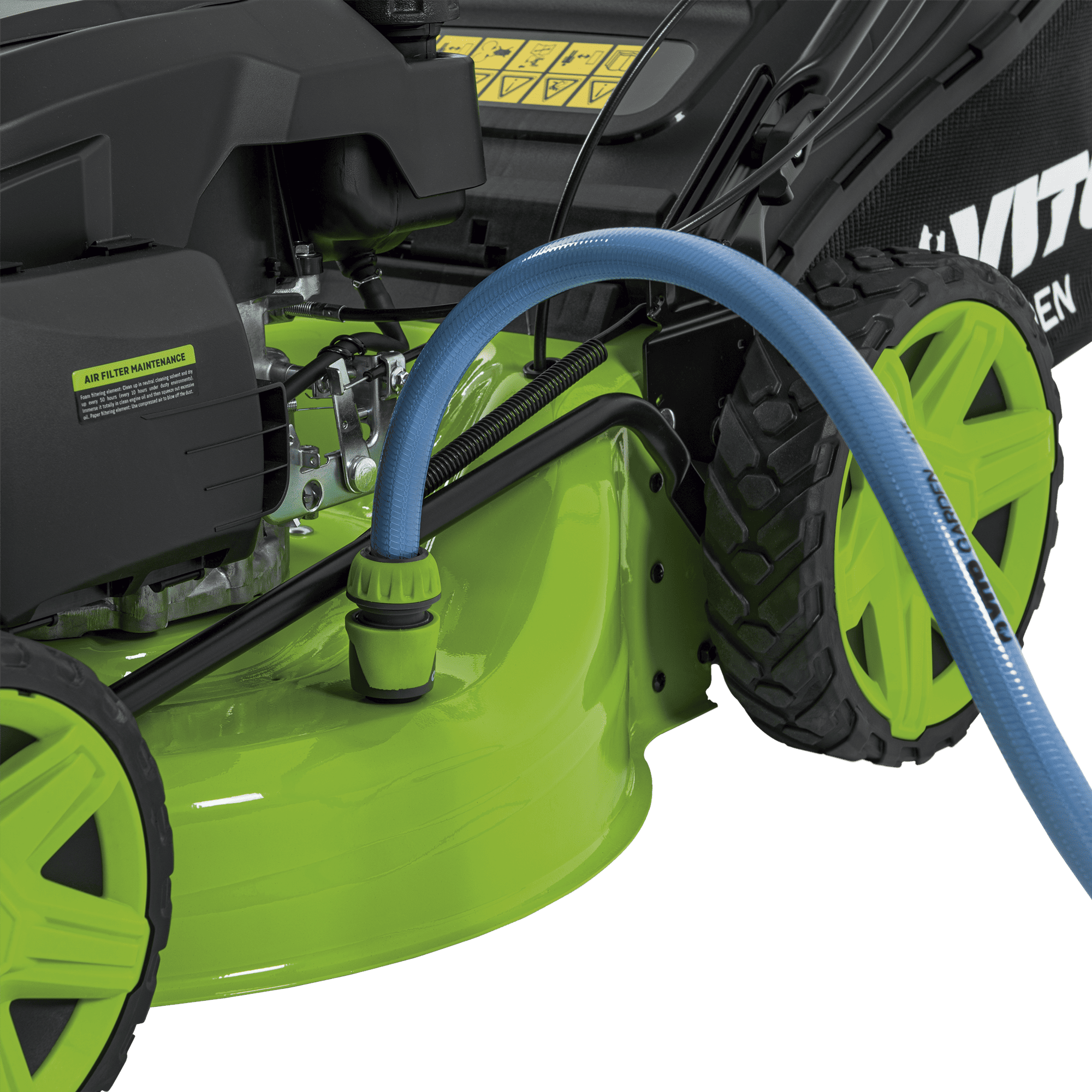 A Máquina Corta-Relvas a Gasolina da VITO assegura um corte eficiente em jardins de pequenas e médias dimensões. Este corta-relvas, com um motor de 5,5 cv a 4 tempos, apresenta diversos níveis de corte em vegetação de 25 a 75mm, garantindo versatilidade na realização das tarefas de jardinagem. Para além disto, está equipado com rodas de borrachas que proporcionam maior tração, promovendo a segurança. Adicionalmente, a máquina possui três funções que acrescentam praticidade e auxiliam a otimização do trabalho do utilizador: Descarga traseira, descarga lateral e trituração da relva (Mulching). O saco de recolha de 60 litros permite, ainda, aumentar a produtividade e eficiência.