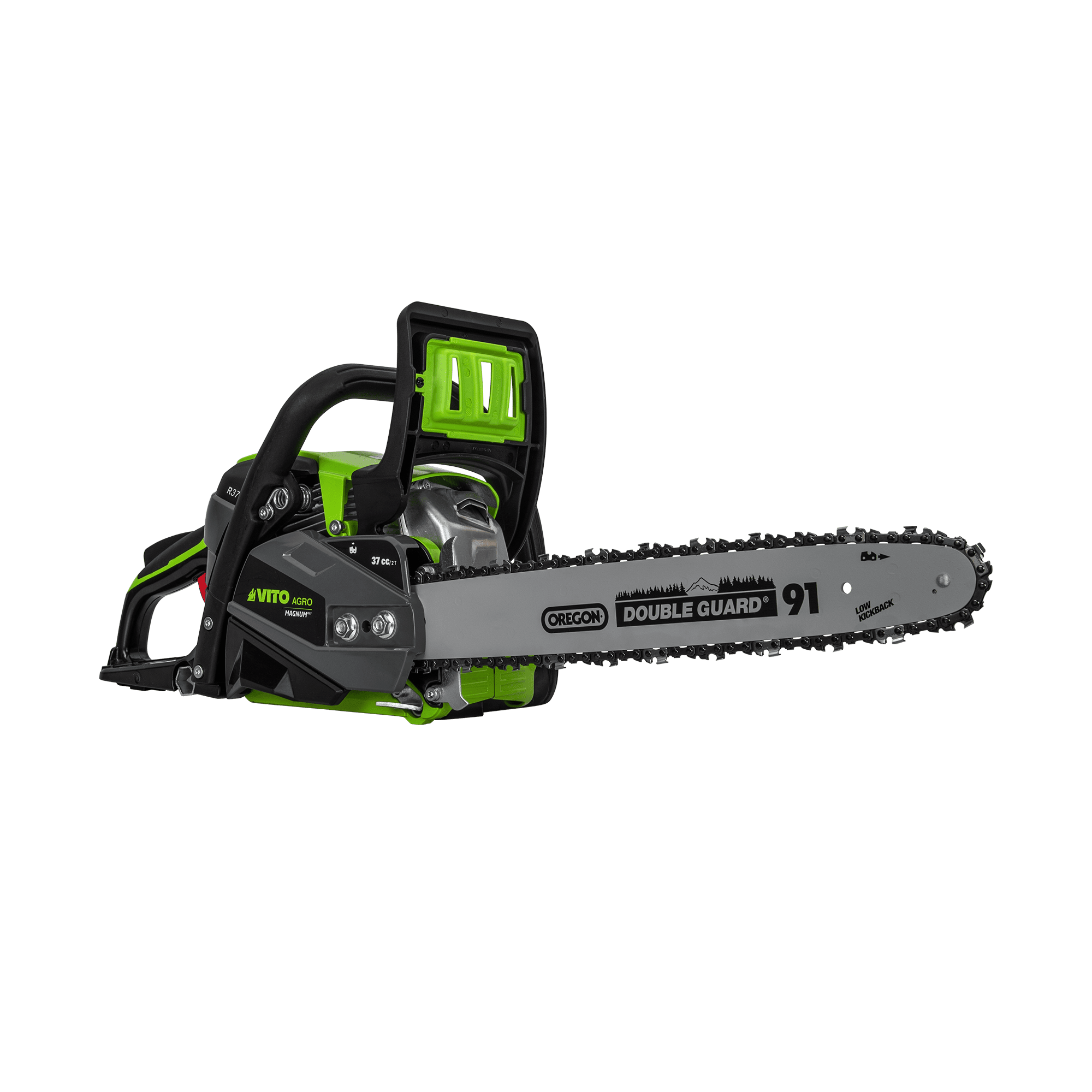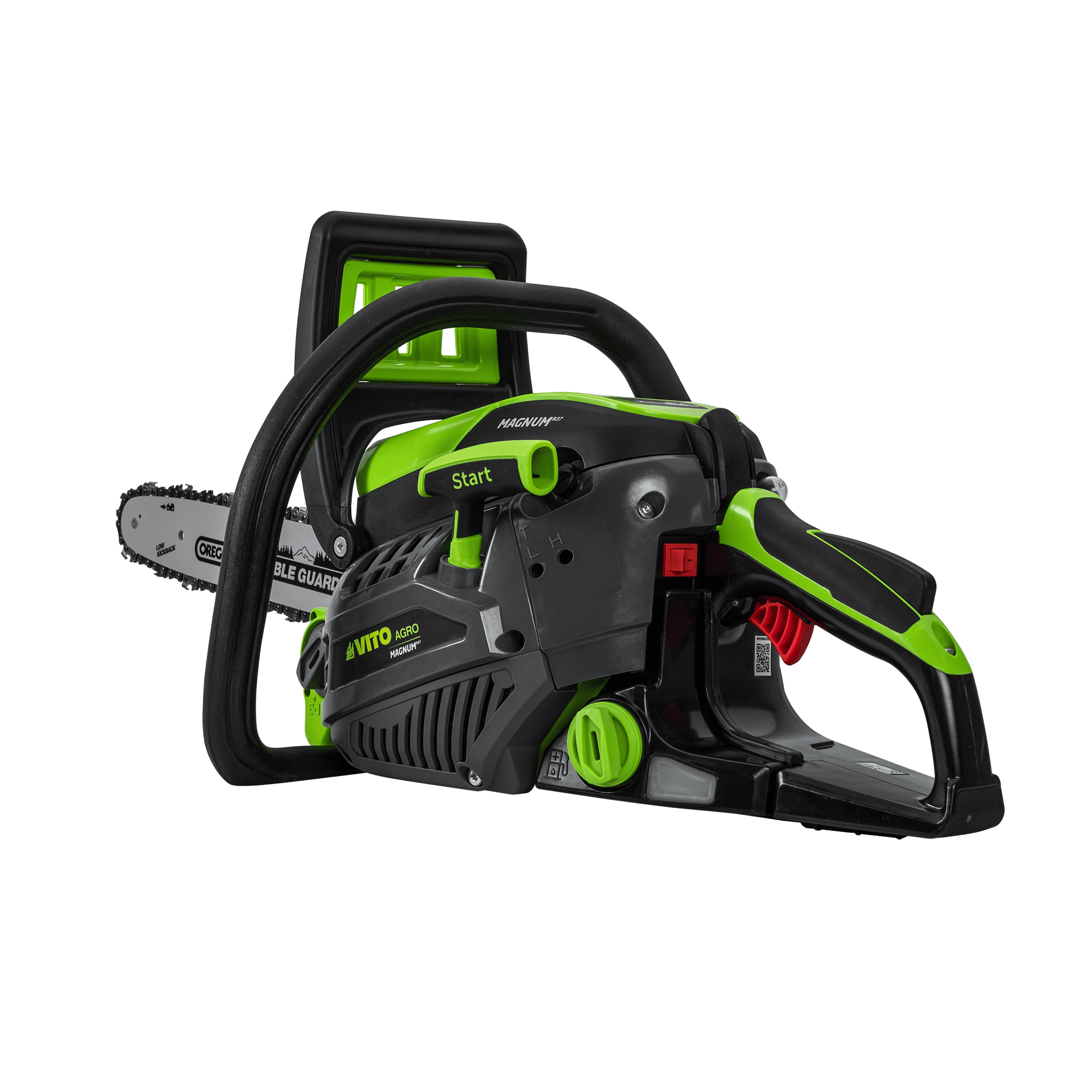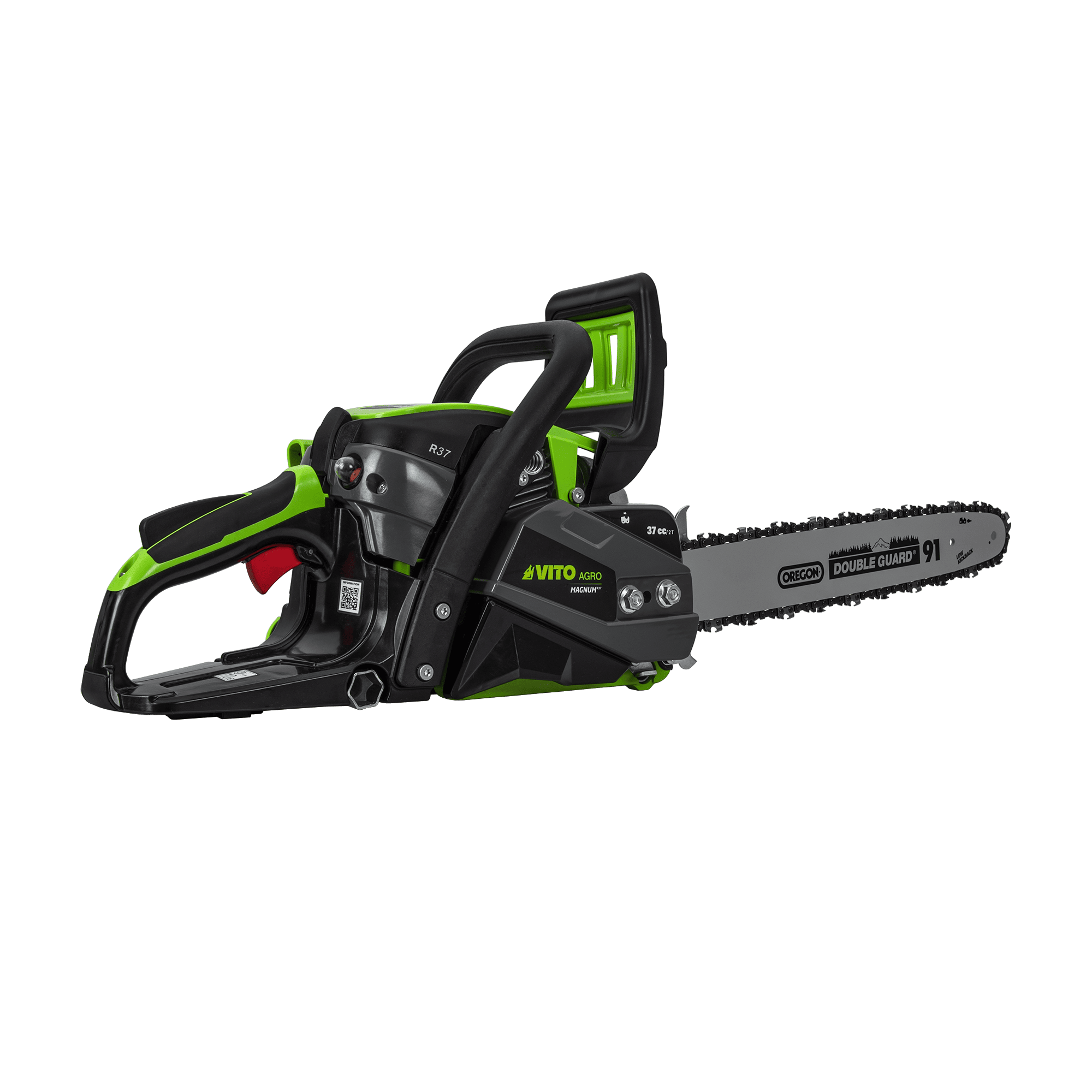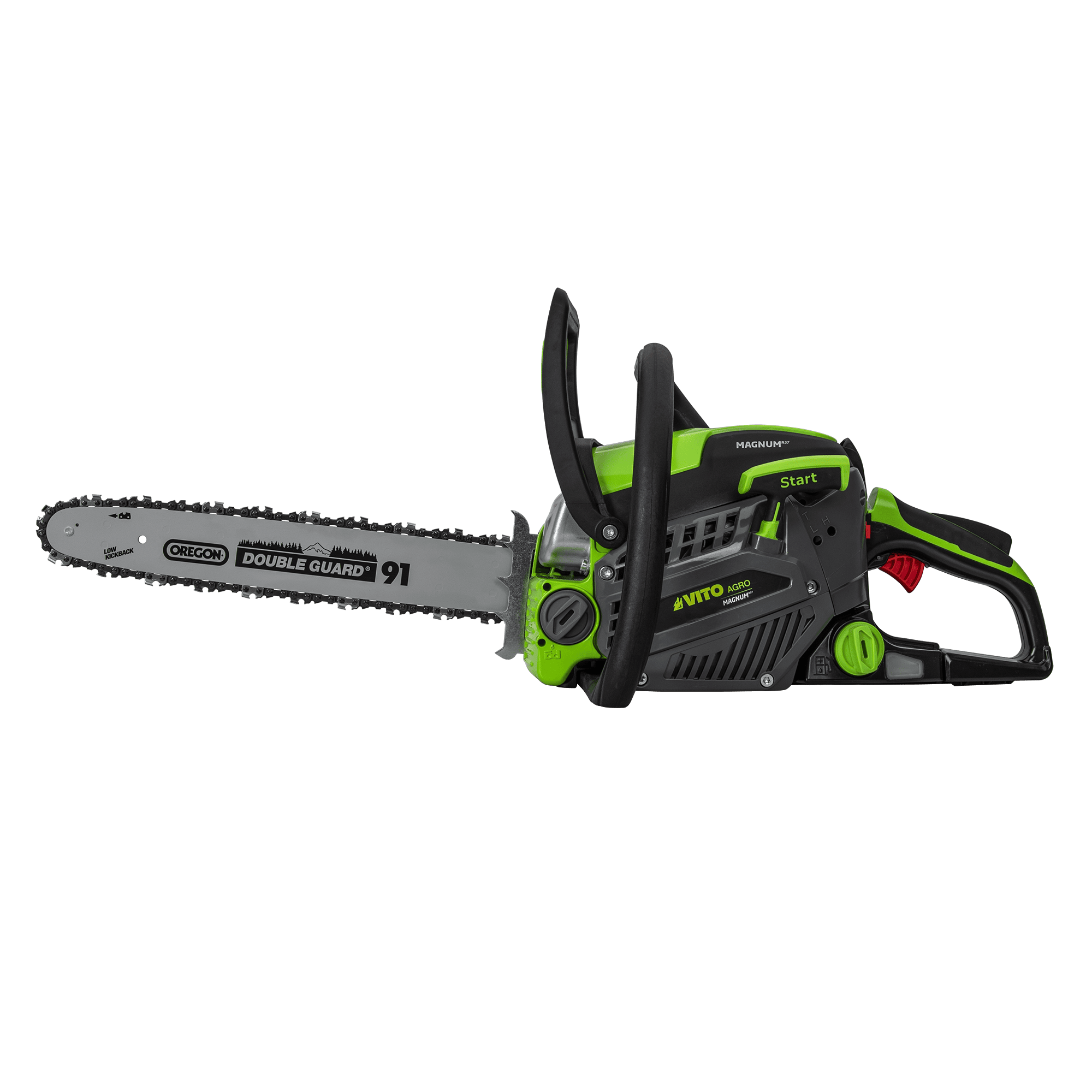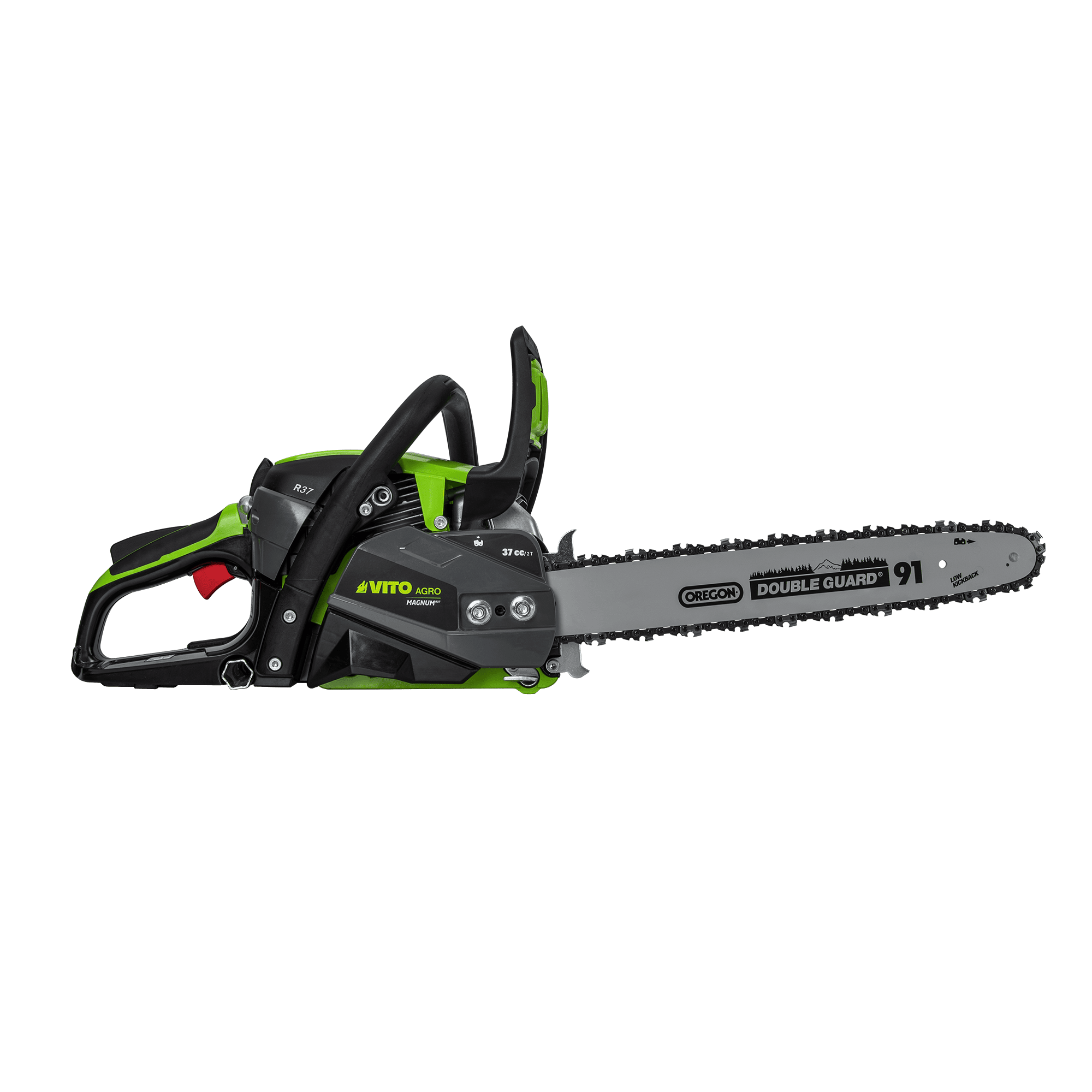 A Motosserra 37cc VITO da gama MAGNUM é ideal para tarefas de poda de galhos, corte de arbustos e pequenas e médias árvores. Perfeita para manutenção de jardins e áreas mais reduzidas, combina leveza com eficiência, sendo apropriada para trabalhos na agricultura, paisagismo e madeira. Equipada com uma lâmina de 400 mm de alta qualidade da Oregon e uma corrente de 57 elos, destaca-se pela durabilidade e resistência ao desgaste, assegurando um corte eficaz e consistente. A bomba do carburador Walbro garante uma operação fiável e a regulação fácil do óleo permite ajustar o fluxo de lubrificação. Com sistema anti-vibração e punho suave, este modelo oferece uma experiência de utilização ergonómica, minimizando o cansaço e permitindo um controlo mais preciso durante o trabalho. Além disso, vem acompanhada de uma corrente de reposição, proteção para a lâmina, chave de velas e lima, tudo o que necessita para a sua manutenção e longevidade.
