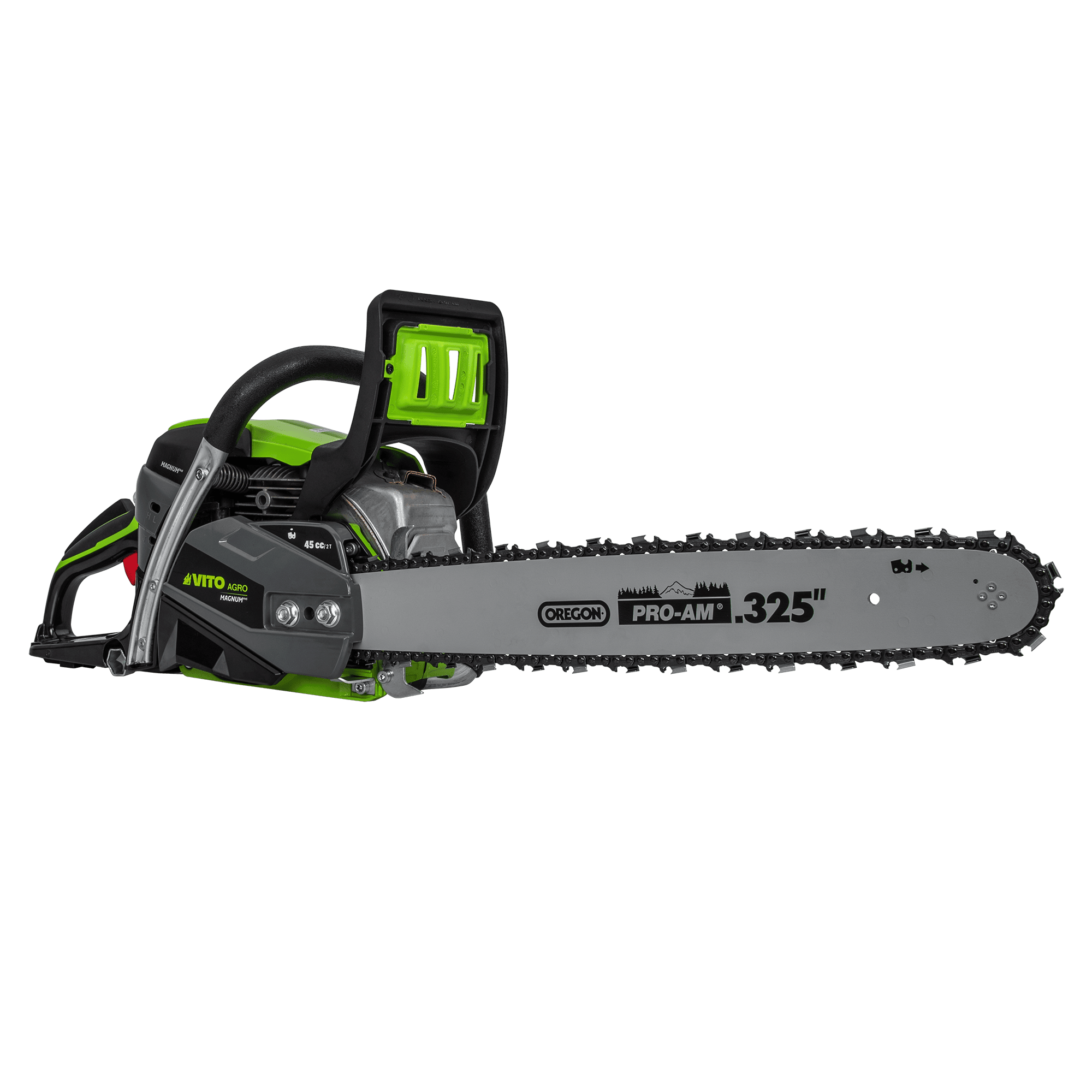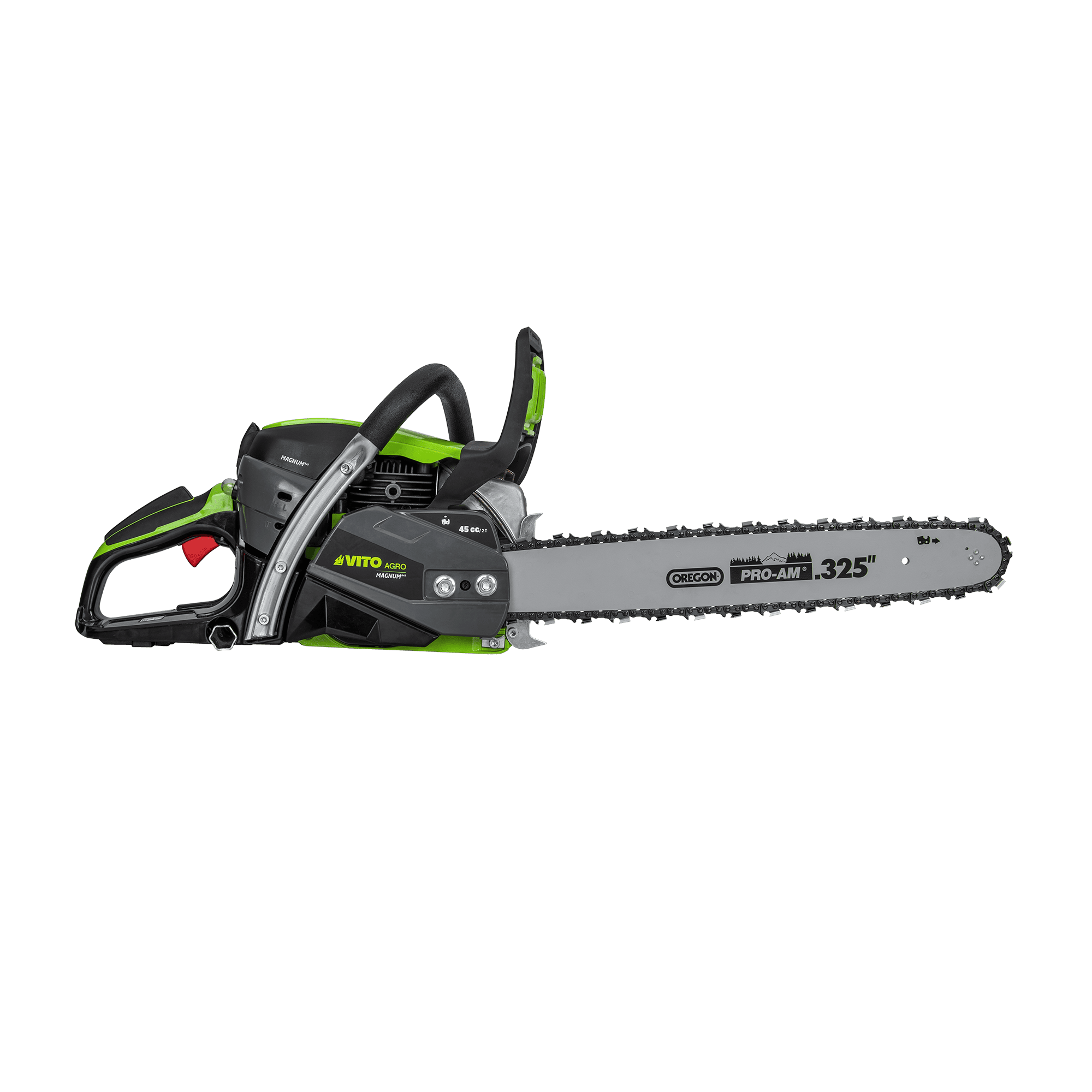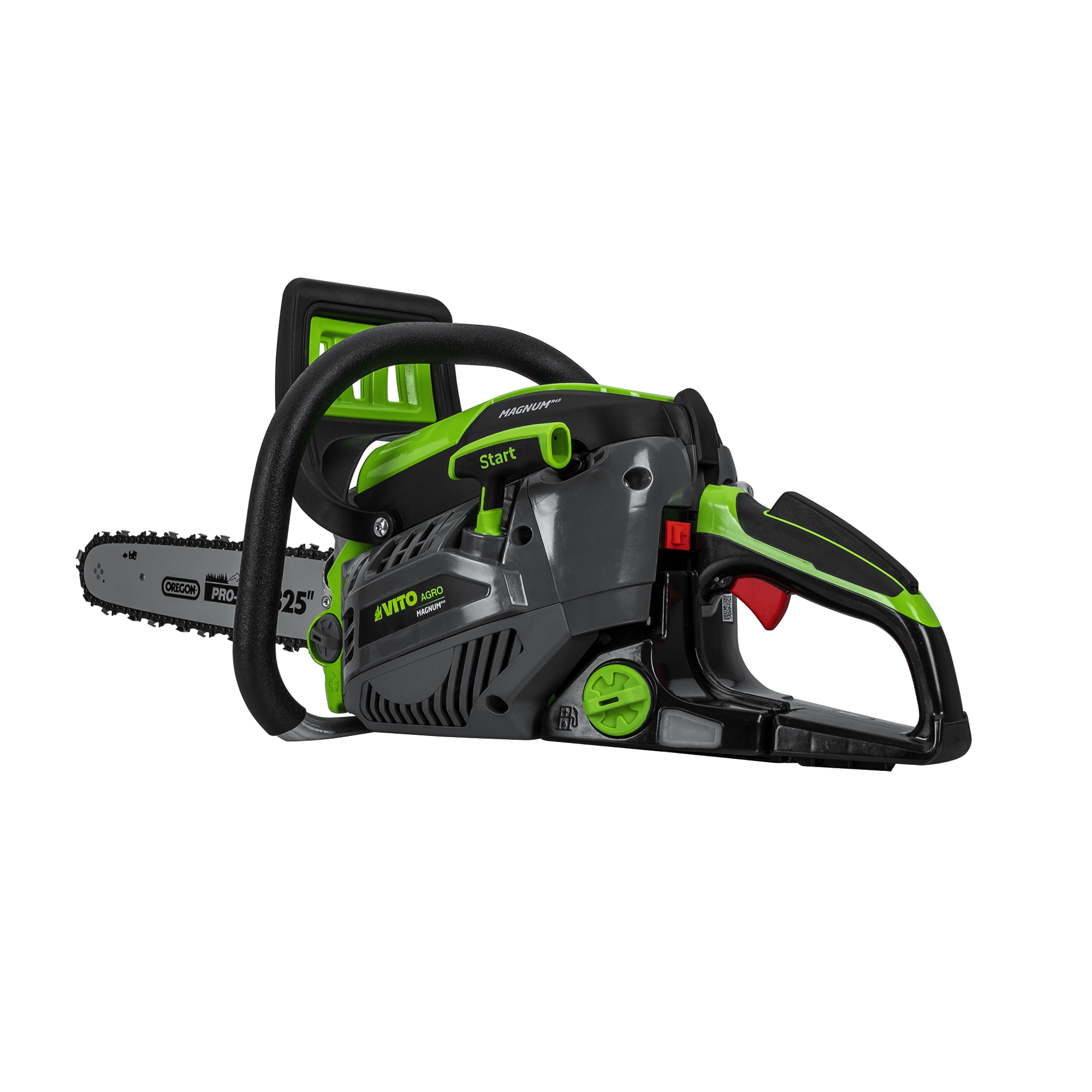A Motosserra 45cc VITO da gama MAGNUM é ideal para tarefas de poda de galhos, corte de arbustos e árvores de médio porte. Indicada para trabalhos de florestação de média escala, é apropriada para a manutenção de terrenos e operações de corte mais exigentes. Equipada com uma lâmina de 450mm de alta qualidade da Oregon e uma corrente de 72 elos, destaca-se pela durabilidade e resistência ao desgaste, assegurando um corte eficaz e consistente. A bomba do carburador Walbro garante uma operação fiável e a regulação fácil do óleo permite ajustar o fluxo de lubrificação. Com sistema anti-vibração e punho suave, este modelo oferece uma experiência de utilização ergonómica, minimizando o cansaço e permitindo um controlo mais preciso durante o trabalho. Além disso, vem acompanhada de uma corrente de reposição, proteção para a lâmina, chave de velas e lima, tudo o que necessita para a sua manutenção e longevidade.