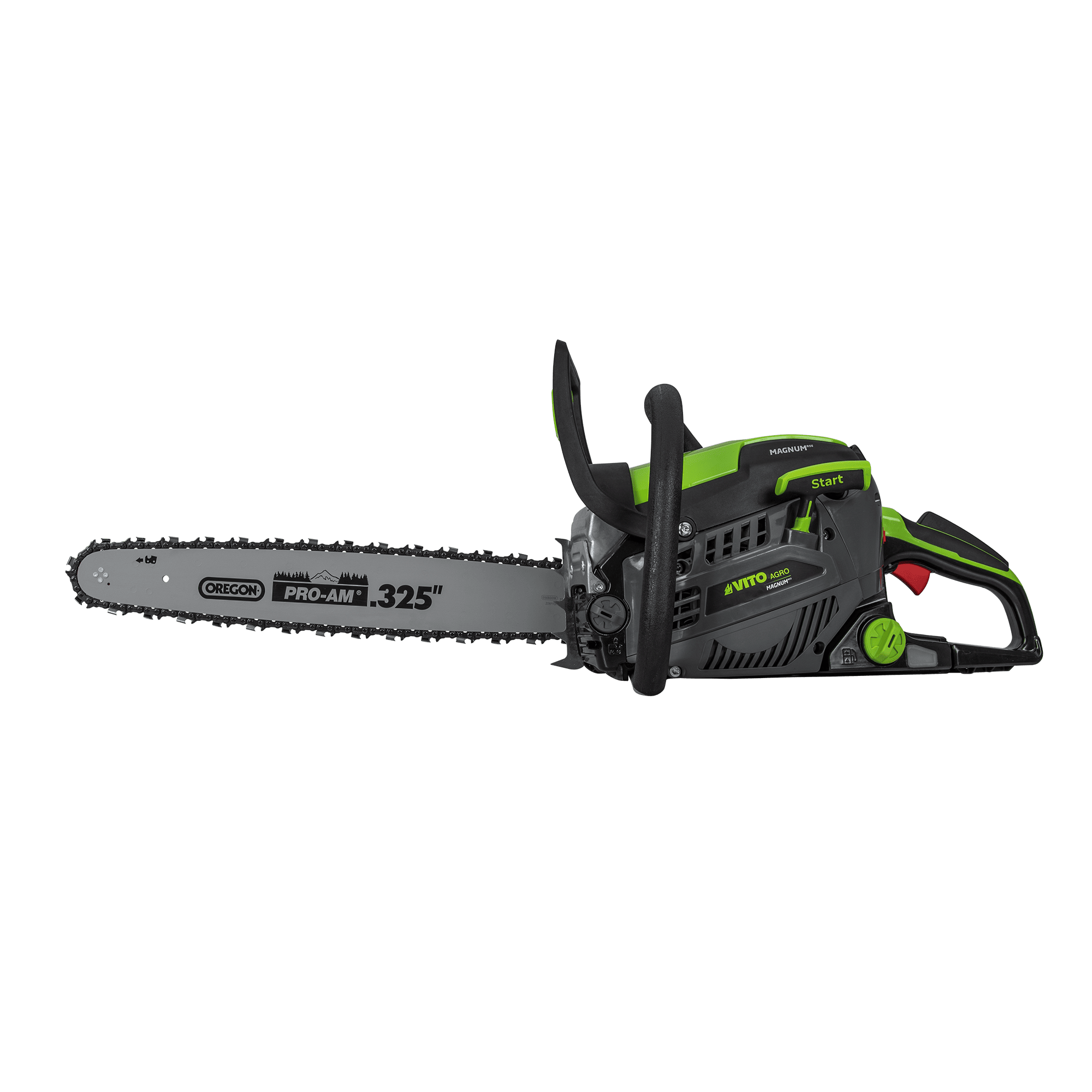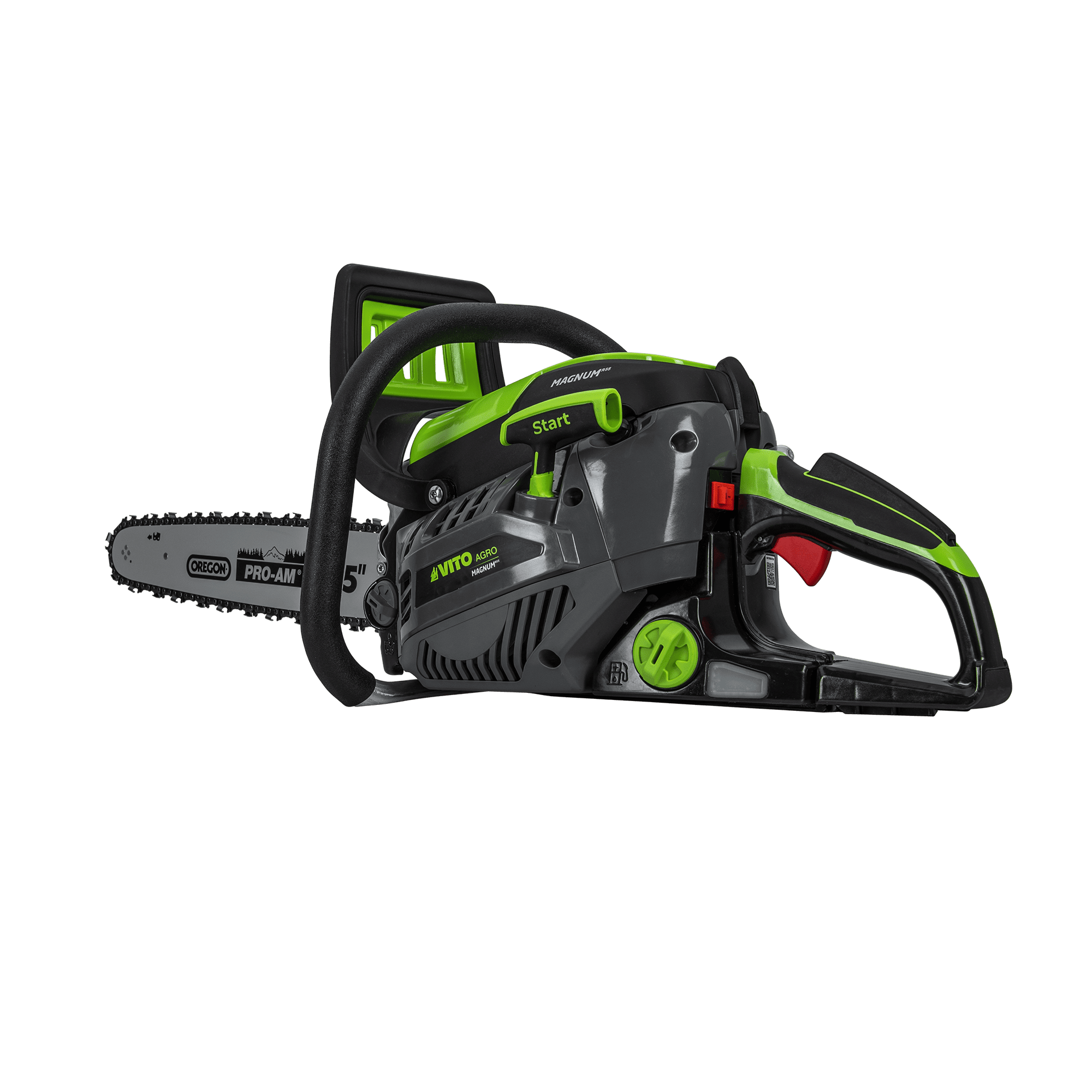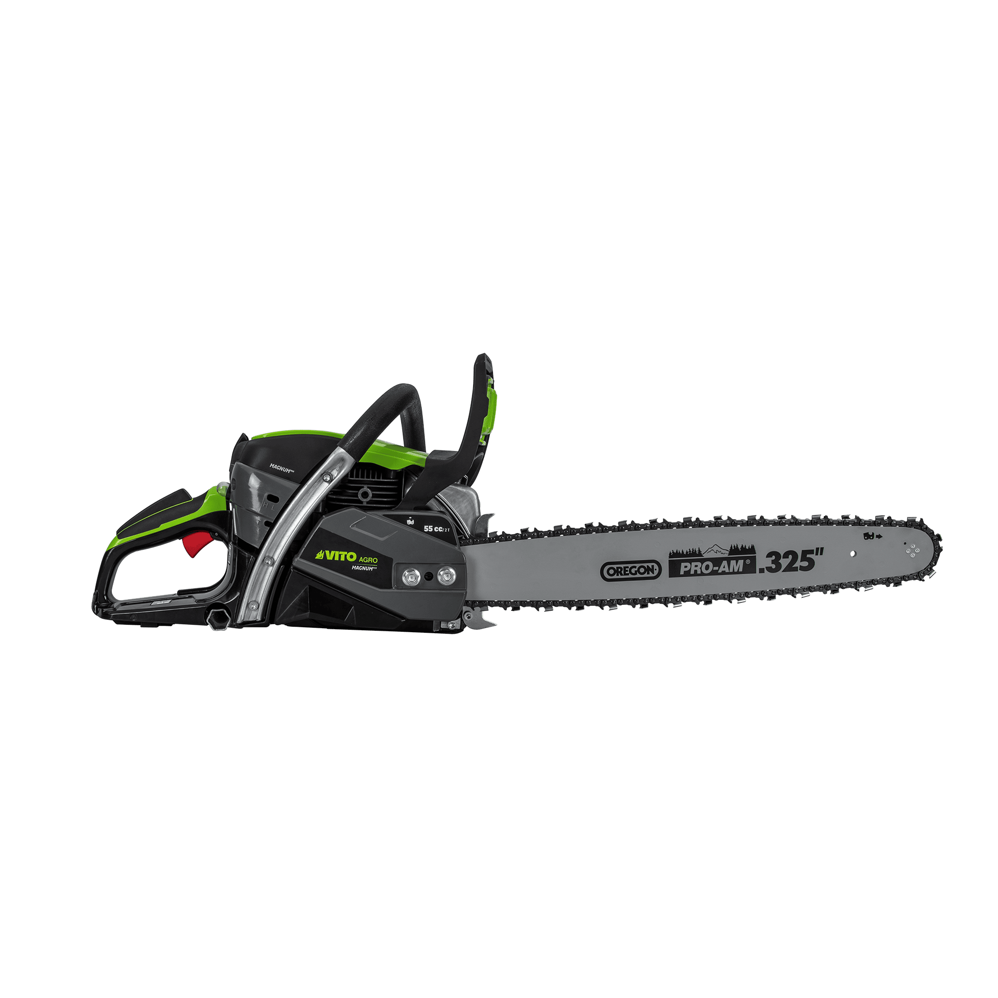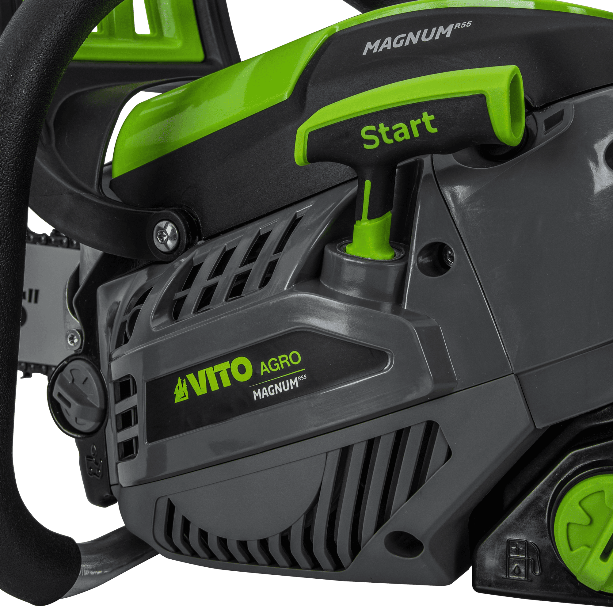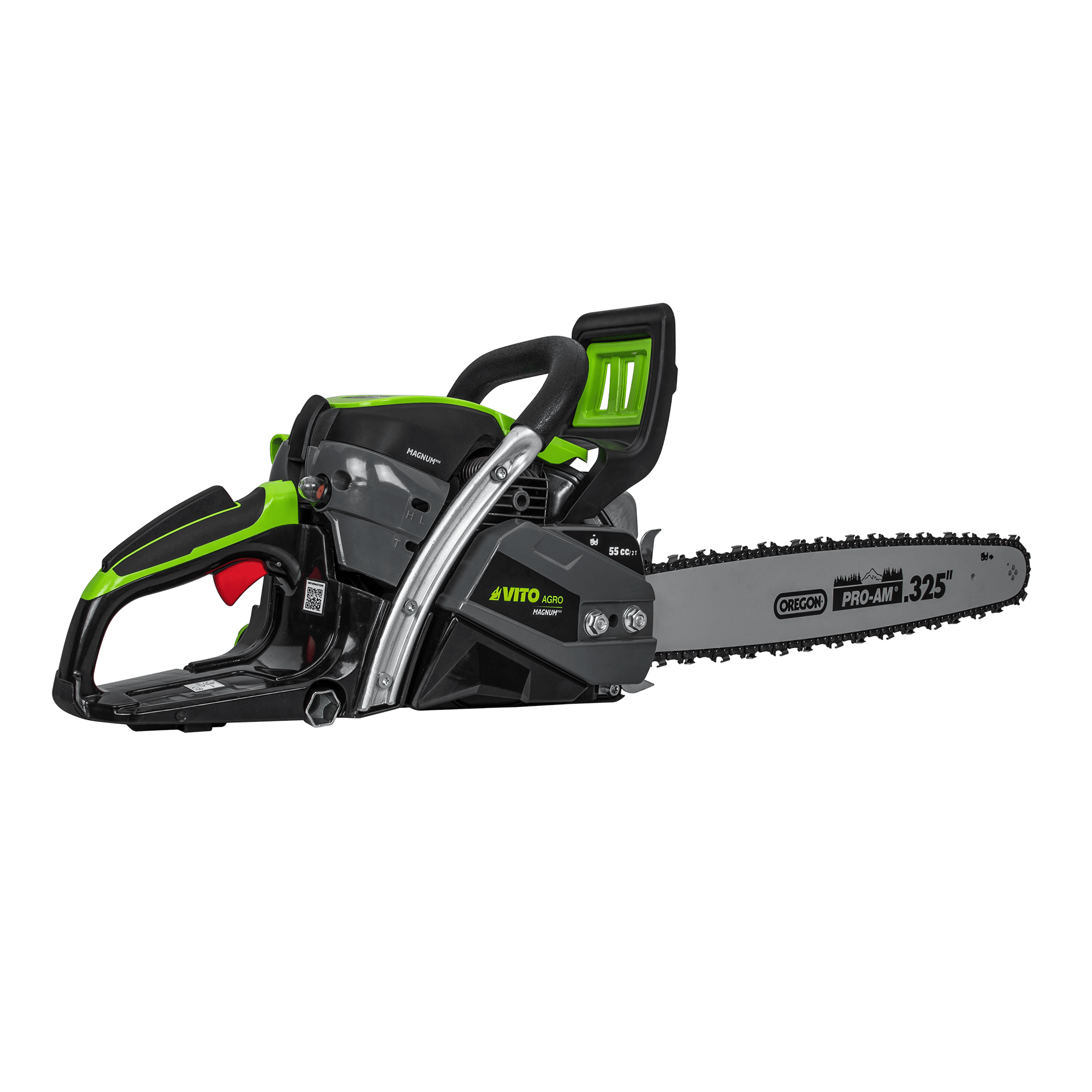 A Motosserra 55cc da VITO, da gama Magnum é a ferramenta ideal para trabalhos de corte de troncos grossos e árvores de grande porte. Projetada para trabalhos exigentes, como o corte de lenha em florestas e a poda de árvores de grandes dimensões, este modelo proporciona uma performance superior e um rendimento de corte excecional. Equipada com uma lâmina de 500 mm de alta qualidade da Oregon e uma corrente de 78 elos, destaca-se pela durabilidade e resistência ao desgaste, assegurando um corte eficaz e consistente. A bomba do carburador Walbro garante uma operação fiável e a regulação fácil do óleo permite ajustar o fluxo de lubrificação. Com sistema anti-vibração e punho suave, este modelo oferece uma experiência de utilização ergonómica, minimizando o cansaço e permitindo um controlo mais preciso durante o trabalho. Além disso, vem acompanhada de uma corrente de reposição, proteção para a lâmina, chave de velas e lima, tudo o que necessita para a sua manutenção e longevidade.