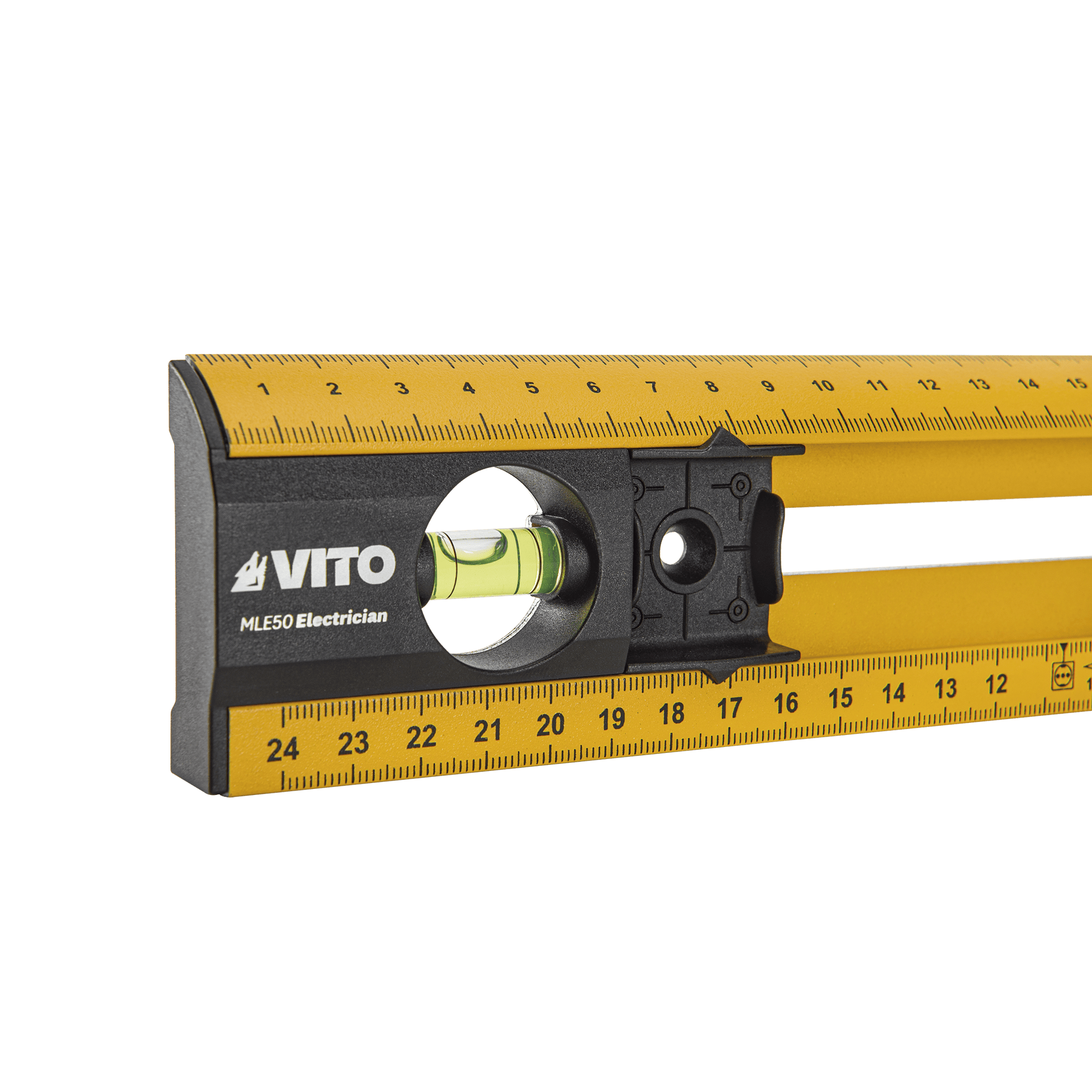 O Nível de Eletricista de 500mm da VITO apresenta pontos de marcação que permitem realizar nivelações com eficiência e praticidade. Esta ferramenta, indicada para profissionais, está projetada para facilitar instalações elétricas, contando com 4 pontos de marcação ajustáveis com medições de referência para tomadas, otimizando assim o seu alinhamento. Adicionalmente, este nível leve e compacto, integra duas bolhas que garantem nivelações precisas, tanto na vertical como na horizontal.