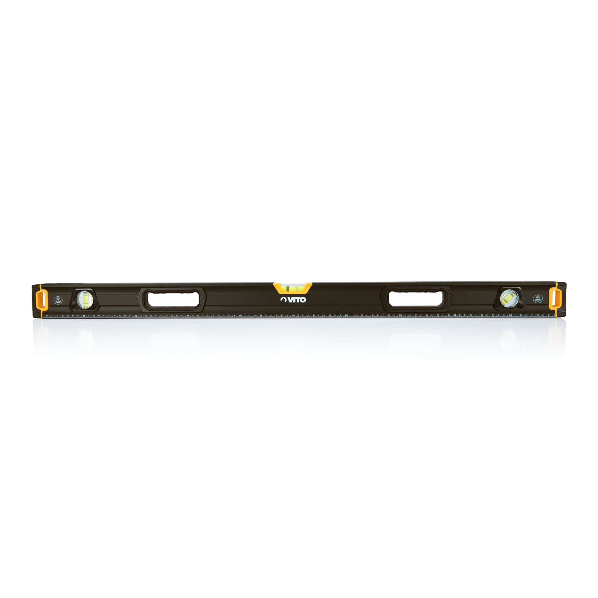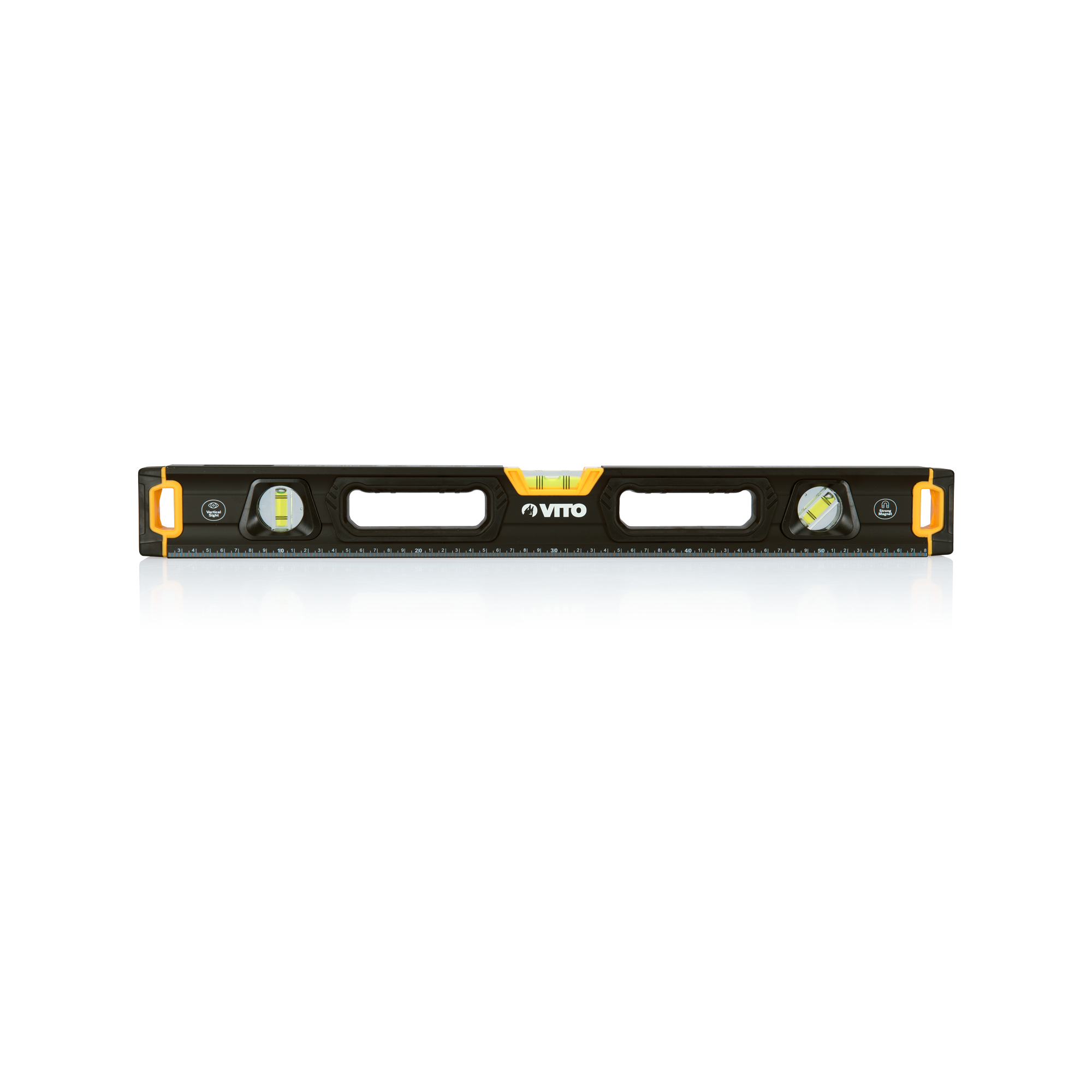 Nível Magnético Pro fabricado em alumínio, contém 3 bolhas: prumo, nível e 45º, está equipado com batentes laterais anti-choque, possui uma base magnética, tem uma precisão de 0,5mm/m e contém ainda um sistema vertical sight.