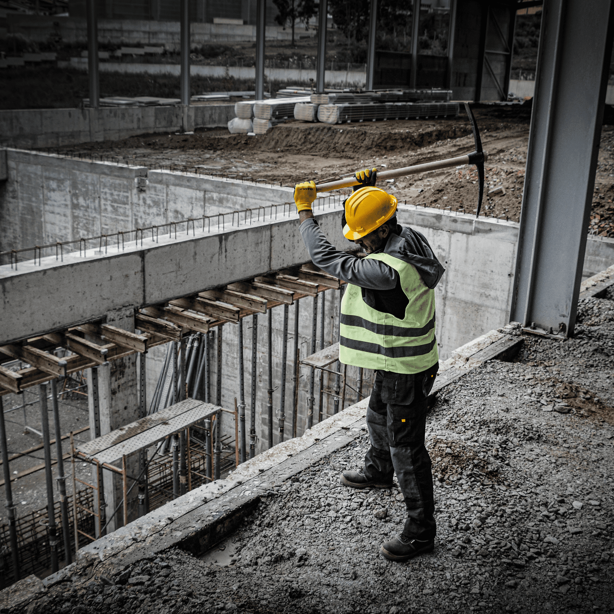 Picareta em aço temperado forjado, tem um olhal de 50 mm e com cabo de madeira.