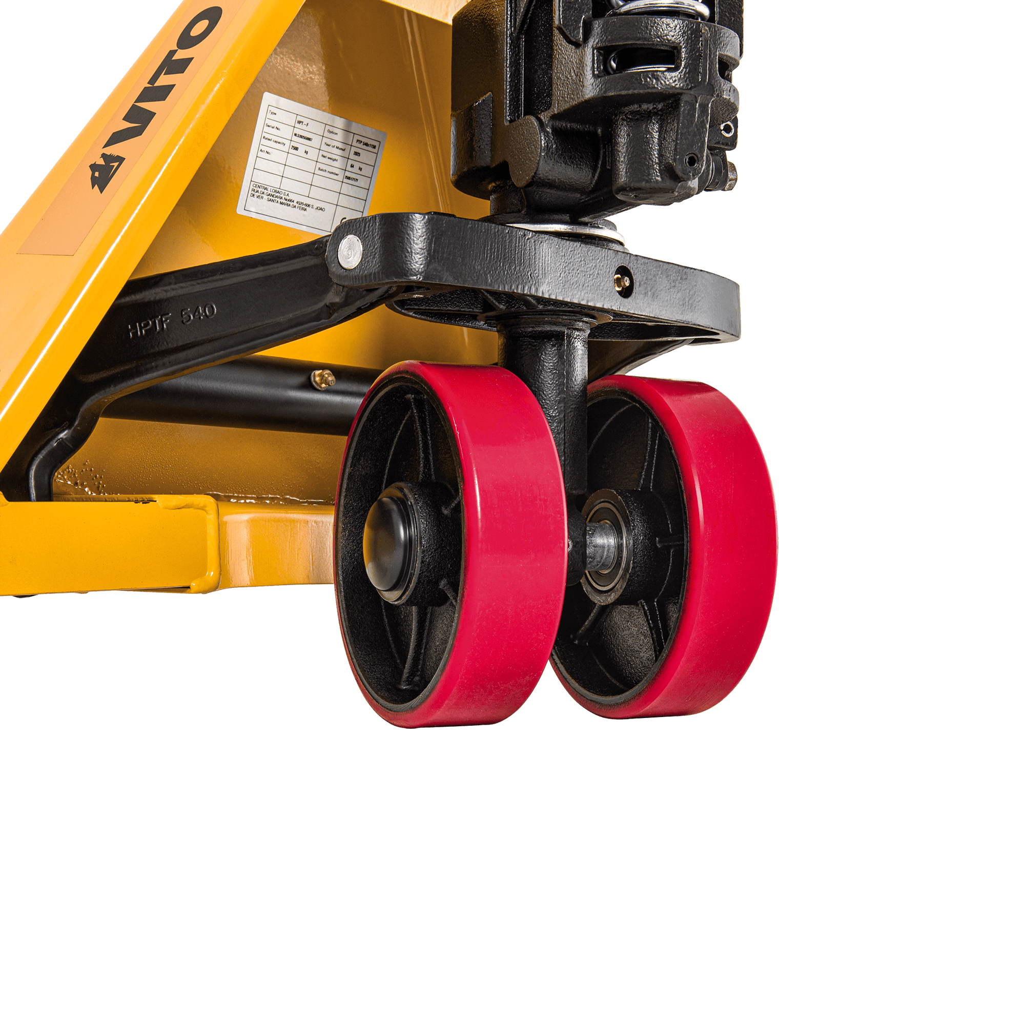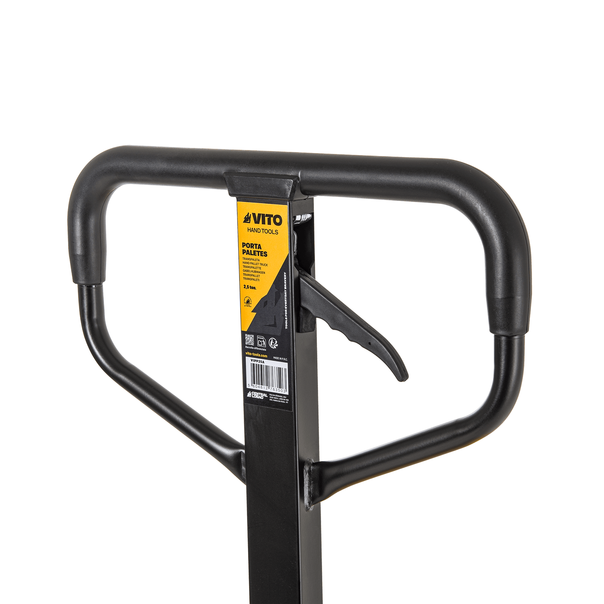 O Porta Paletes de 2,5T da VITO é indicado para movimentar e transportar paletes com cargas em ambientes industriais como armazéns, depósitos e centros de distribuição. Com uma elevação máxima de 20cm e um comprimento útil do garfo de 1150mm, esta ferramenta permite deslocar mercadorias de forma eficiente e segura. Este porta paletes apresenta uma estrutura robusta, reforçando a sua resistência e durabilidade. Adicionalmente, está equipado com rodas de diretrizes e rodas de carga de poliuretano (PU), bem como uma alavanca de controlo, que otimizam o manuseamento do mesmo.