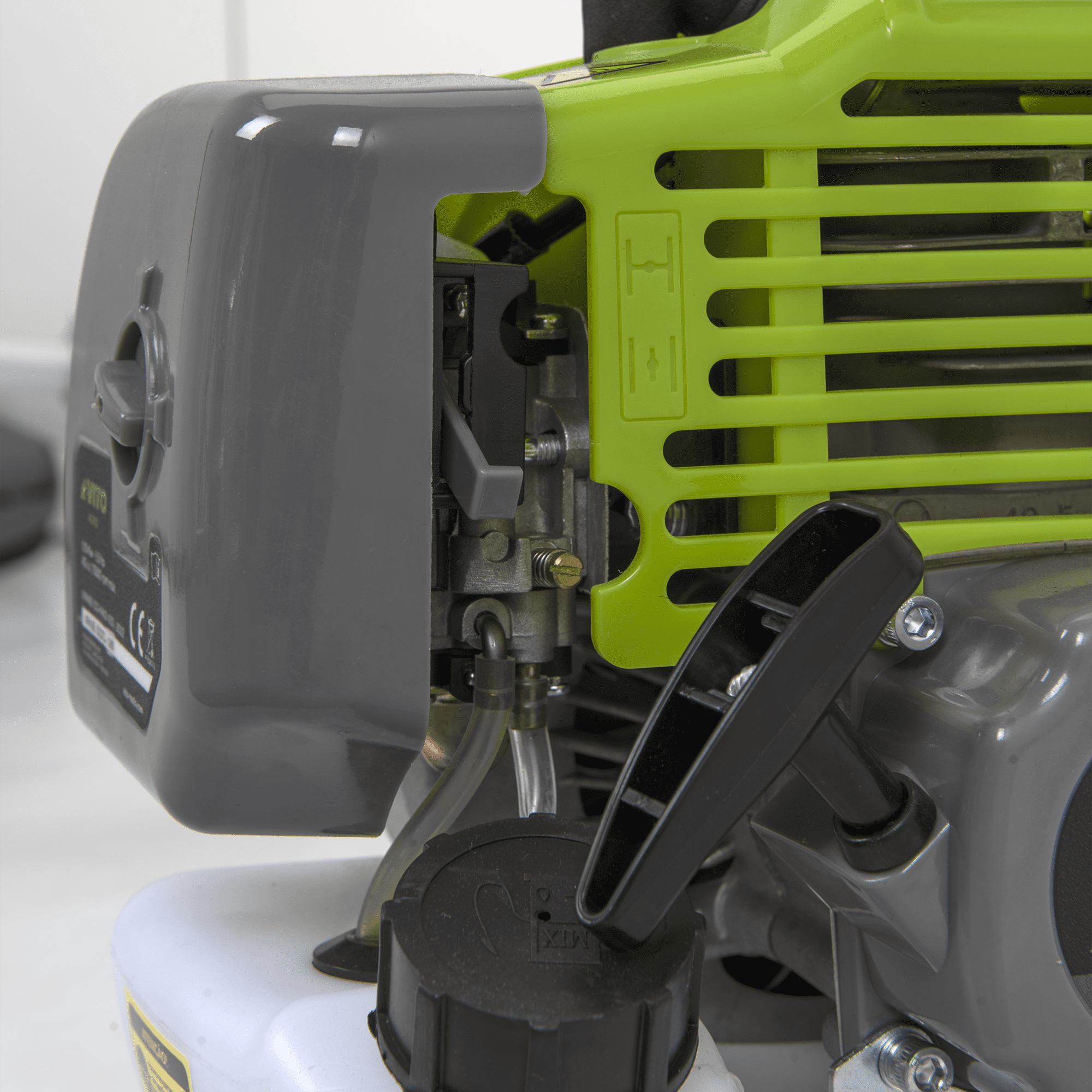 Roçadora EKO, com 43cc, tem uma velocidade de 7500rpm, motor de 2 tempos, capacidade do depósito de combustível 1,0L, diâmetro de corte de 255mm, tem ainda um punho macio.