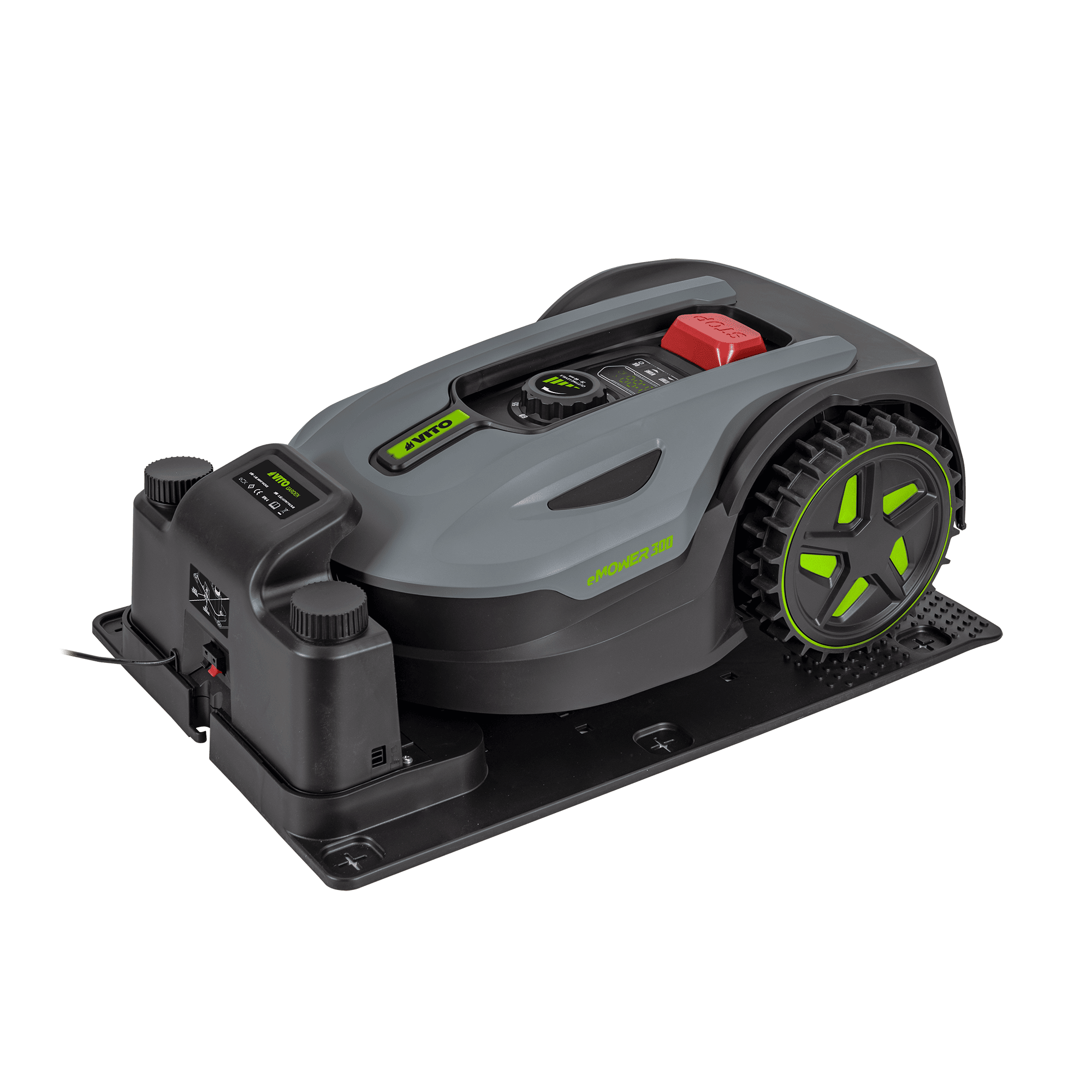 O Robot Corta-Relvas eMOWER300 da VITO (VIRCR300) é ideal para pequenos jardins, indicado para cortar áreas até 300m². Silencioso e eficiente, opera com uma bateria de 20Vde 2.0Ah que lhe confere uma autonomia de 70 minutos. Vem equipado com um robusto motor brushless e três lâminas de corte, oferecendo uma largura de corte de 180mm e níveis de corte ajustáveis entre 20-60mm com um rendimento de 45m2/hora. O modo de corte aleatório, faz com que o robot passe por todas as áreas do relvado, evitando padrões repetitivos e indesejadas marcas de corte. Permite também a fácil adaptação a terrenos irregulares, desviando e movendo-se aleatoriamente sempre que detete obstáculos inesperados, simplesmente mudando de direção. A precisão do corte é garantida pelas finas lâminas que conferem um acabamento uniforme da área cortada. Os Robot Corta-Relva são a solução para reduzir as preocupações com a manutenção do jardim dada o seu sistema de micro corte de lâminas, cujas pequenas partículas cortadas ficam depositadas na relva fertilizando o solo. Com índice de proteção IP65, é resistente à água e poeiras, e inclui uma estação para carregar a bateria. Este modelo é compatível com a APP Móvel (robotic-mower connect) disponível para iOS e Android, que permite gerir e programar o robot corta-relvas através do smartphone.