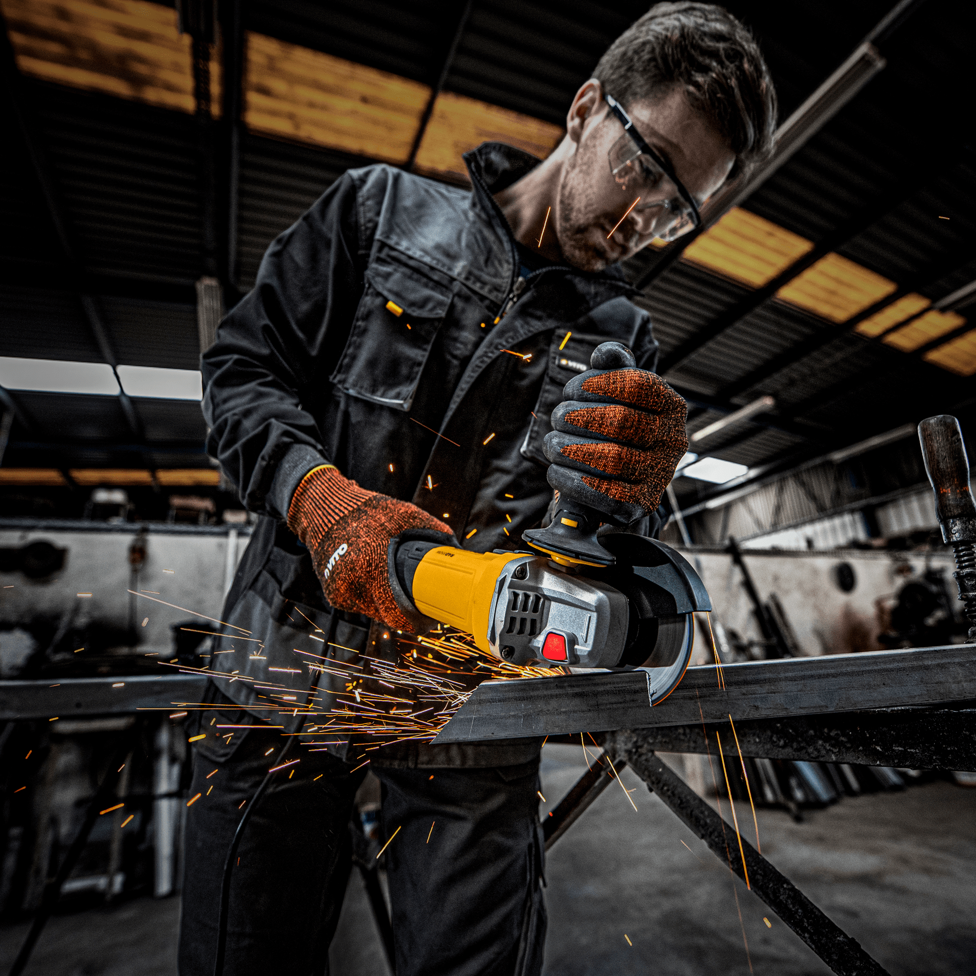 Rebarbadora com uma potência de 850 W e disco de 115mm da VITO destaca-se pelo seu desempenho em todos os trabalhos. Design compacto para um maior conforto e manuseamento da máquina. Totamente segura, esta rebarbadora possui uma proteção contra re-arranque, bloqueio de veio de rotação e ainda proteção do diso ajustável.