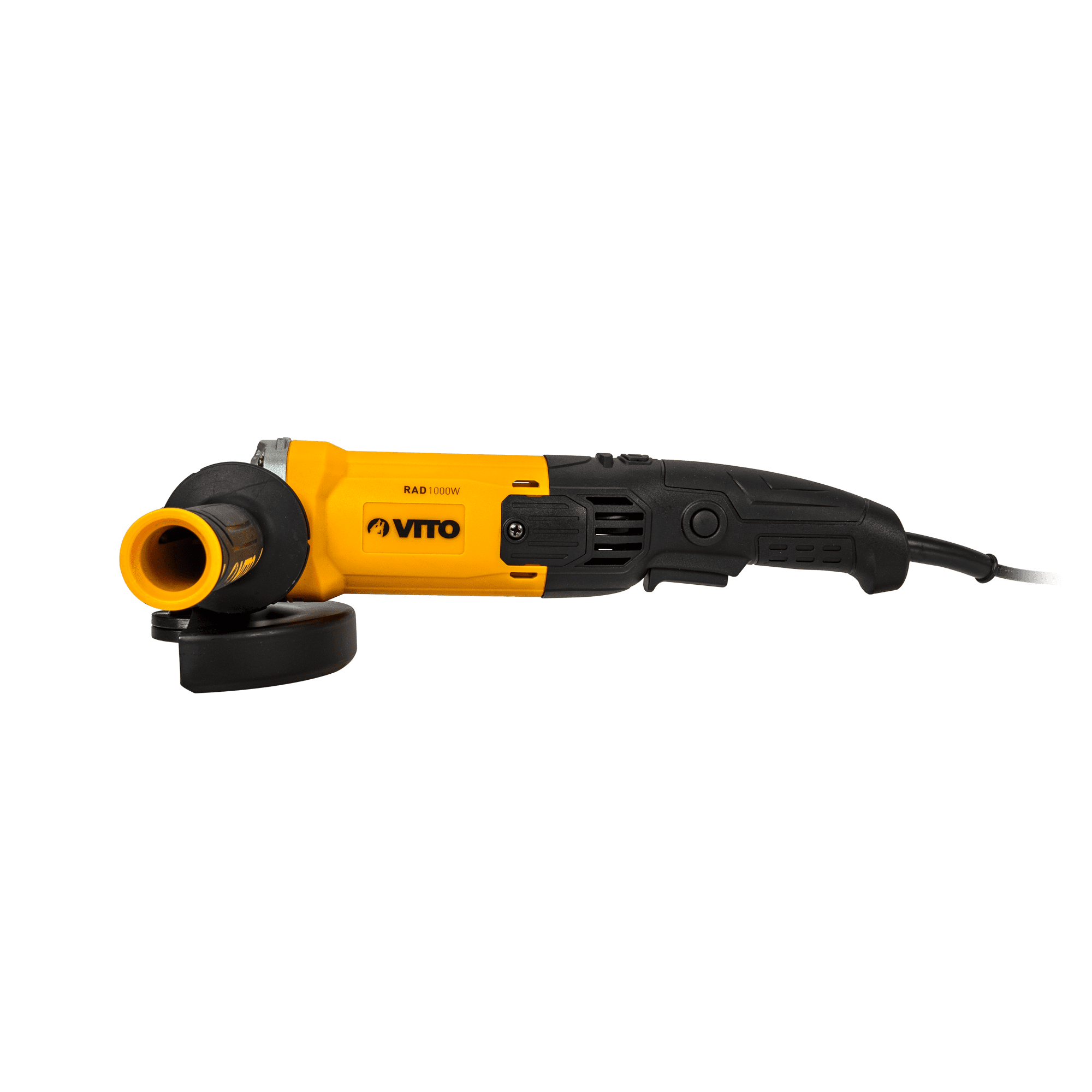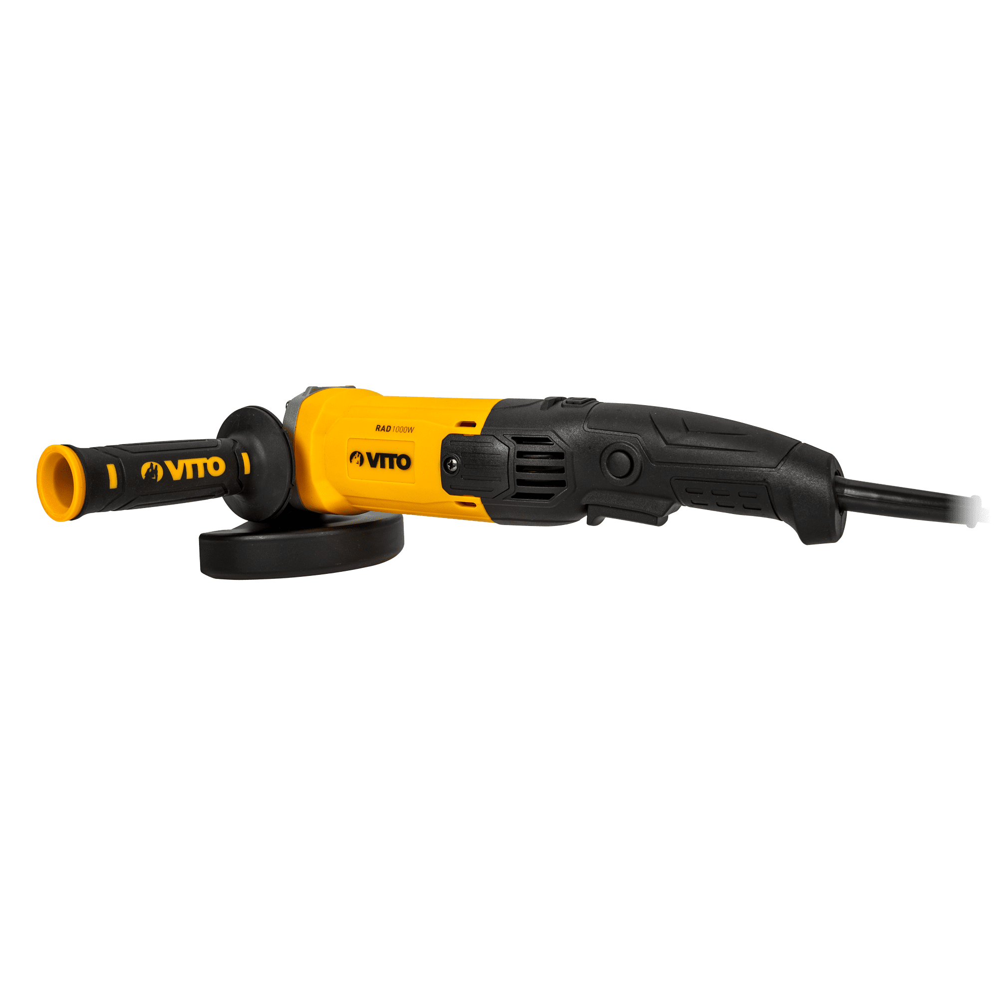 Rebarbadora com uma potência de 1000 W e disco de 125mm da VITO destaca-se pelo seu desempenho em todos os trabalhos. Design compacto para um maior conforto e manuseamento da máquina. Totamente segura, esta rebarbadora possui uma proteção contra re-arranque, bloqueio de veio de rotação e ainda proteção do diso ajustável.