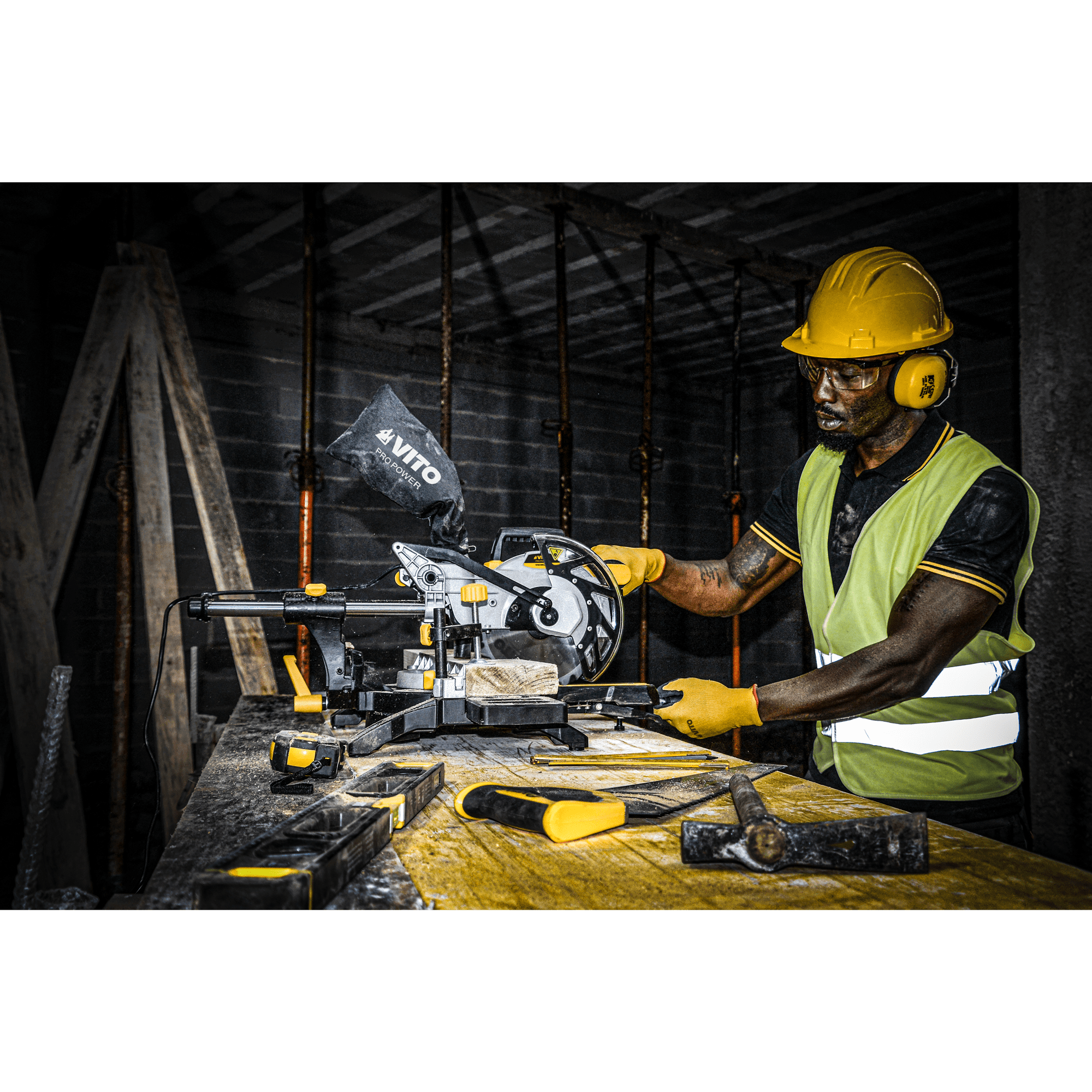 A Serra Circular de Meia Esquadria da VITO é a solução ideal para realizar trabalhos de corte com eficiência. Com uma potência de 1500 watts e rotação de 5000 rpm, esta serra assegura cortes de alta precisão e fiabilidade. Equipada com um disco de 210 mm de diâmetro, a serra garante uma elevada capacidade de corte. Para além disto, inclui um nível de laser de linhas para cortes mais precisos. Permitindo executar cortes angulares de 45º e - 45º, é capaz de atingir uma altura máxima de corte de 60mm e profundidade até 310 mm que garante a máxima versatilidade e rigor. Robusta e compacta, esta serra é a escolha certa para os trabalhos que exigem total precisão.