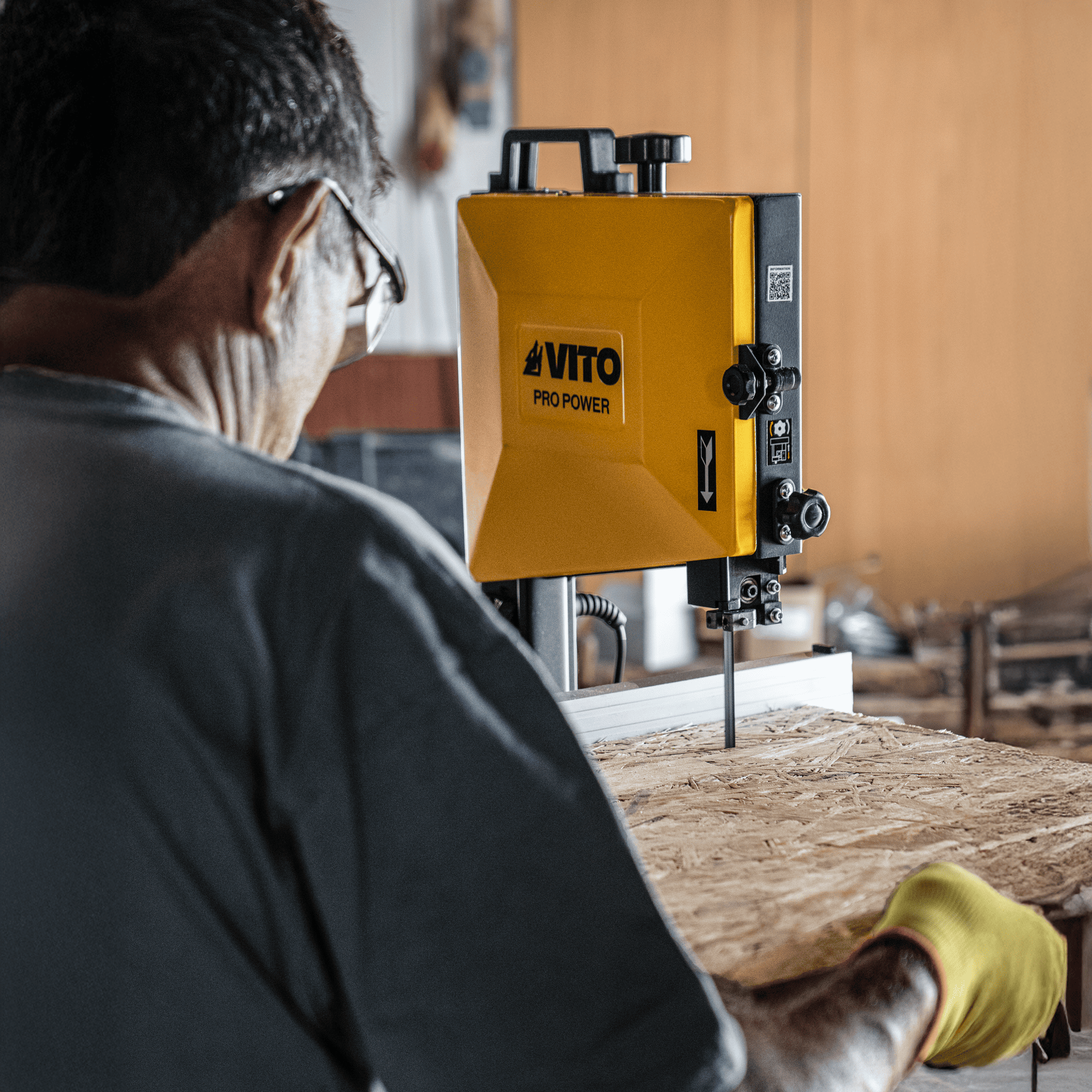 A Serra de Fita Vertical 350W da VITO é uma ferramenta compacta, ideal para cortes precisos em madeira. Com 350W de potência e 18kg de peso, esta serra está preparada para ser colocada numa bancada. A serra oferece uma largura de corte de 195 mm e uma altura de corte máxima de 90 mm, permitindo trabalhar com diversos tipos de peças de madeira. Equipada com um adaptador para aspiração de poeiras e aparas, mantém o trabalho e o ambiente de trabalho sempre limpo e seguro. O fácil acesso à fita torna a sua troca e afinação simples e rápida, e o interruptor de segurança acrescenta proteção extra durante o uso.