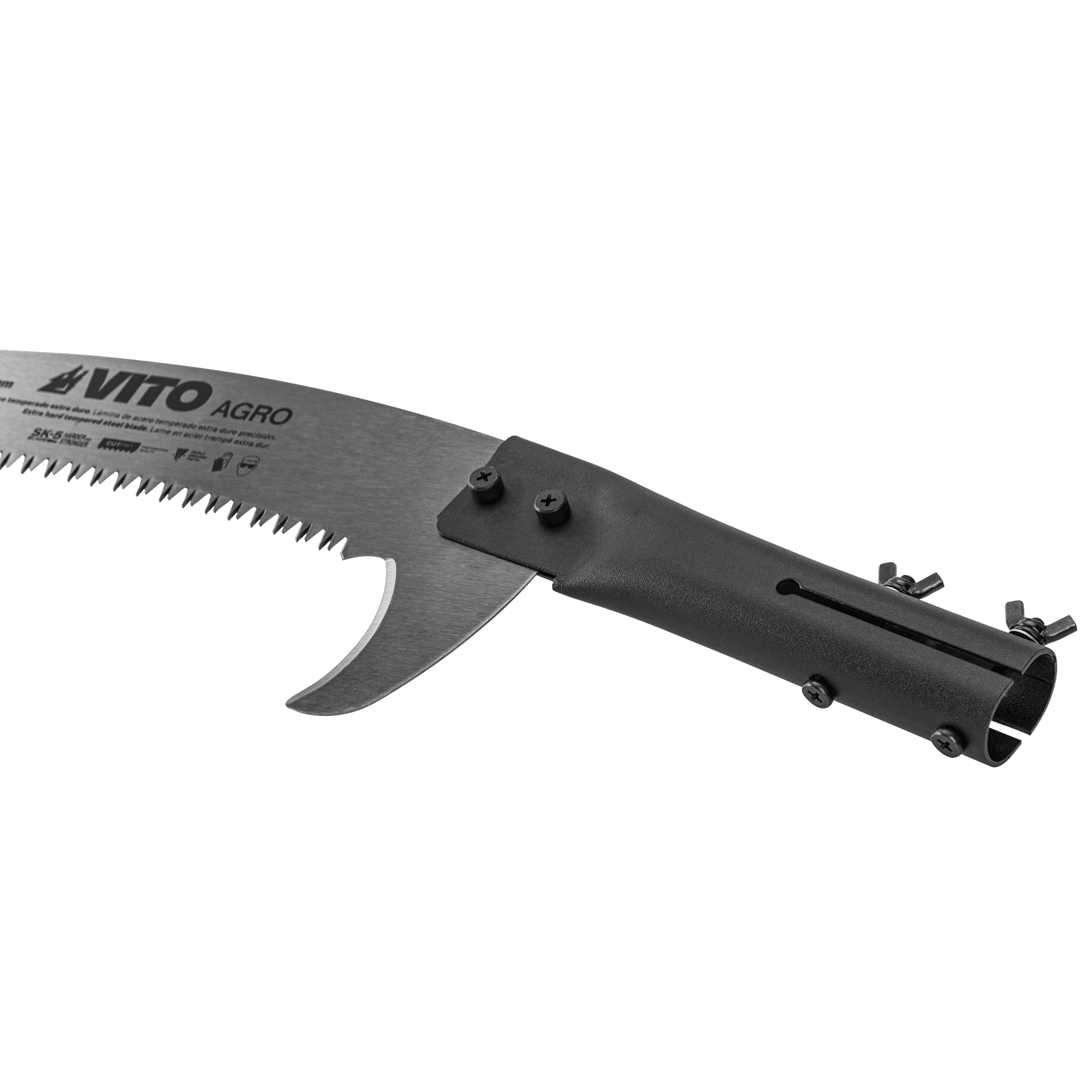 A Serra para Serrote de Poda no Ar da VITO (VISSPA) é compatível com o Serrote de Poda no Ar (VISPA), indicado para a realização de tarefas de jardinagem. Esta lâmina, fabricada em aço carbono temperado SK5 extra duro, destaca-se pela sua resistência e durabilidade. A serra apresenta um design com dentes afiados em três faces e um formato com dentado japonês, proporcionando precisão e eficácia na realização das tarefas. Adicionalmente, a lâmina caracteriza-se pela sua leveza e baixa necessidade de manutenção, otimizando o trabalho do utilizador.