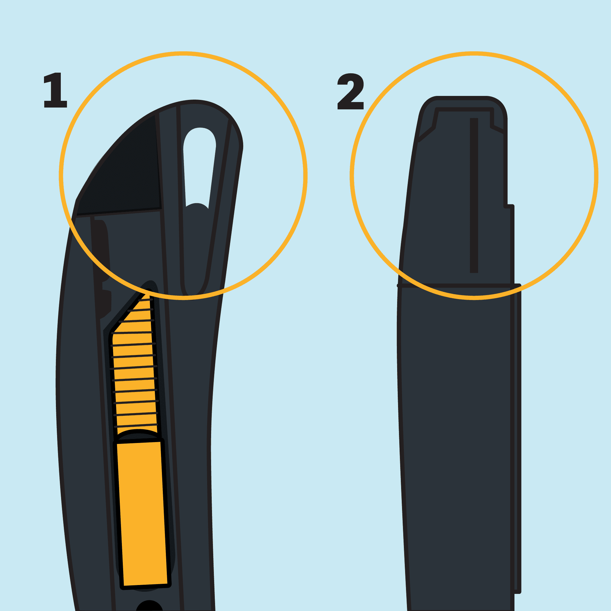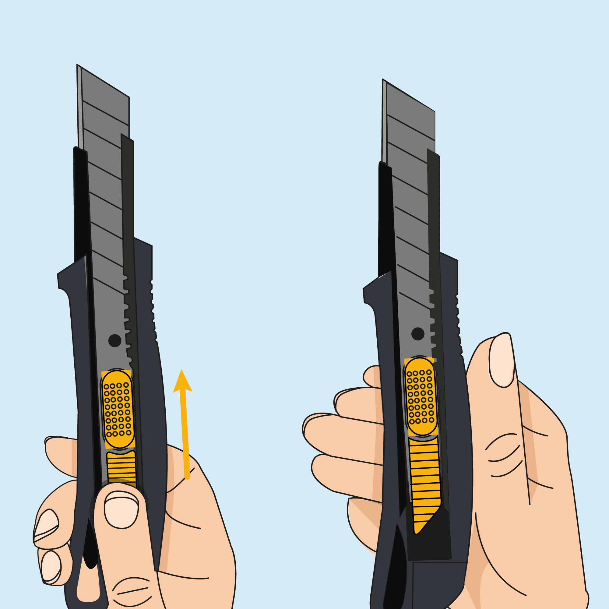(1) Inclui um pendurador e um cortador de lâminas (2).Mecanismo de travagem automático Quando move o botão de mecanismo de travagem automático, fixa a lâmina do cortador na posição de abertura pretendida. Mecanismo auto-retrátil Quando move o botão de mecanismo auto-retrátil, o cortador expõe apenas a lâmina durante a sua utilização ativa, devido ao seu mecanismo de mola integrado no interior do cortador, a lâmina volta à posição de segurança (fechado), assim que o botão é solto.Permite aparafusar / desaparafusar.