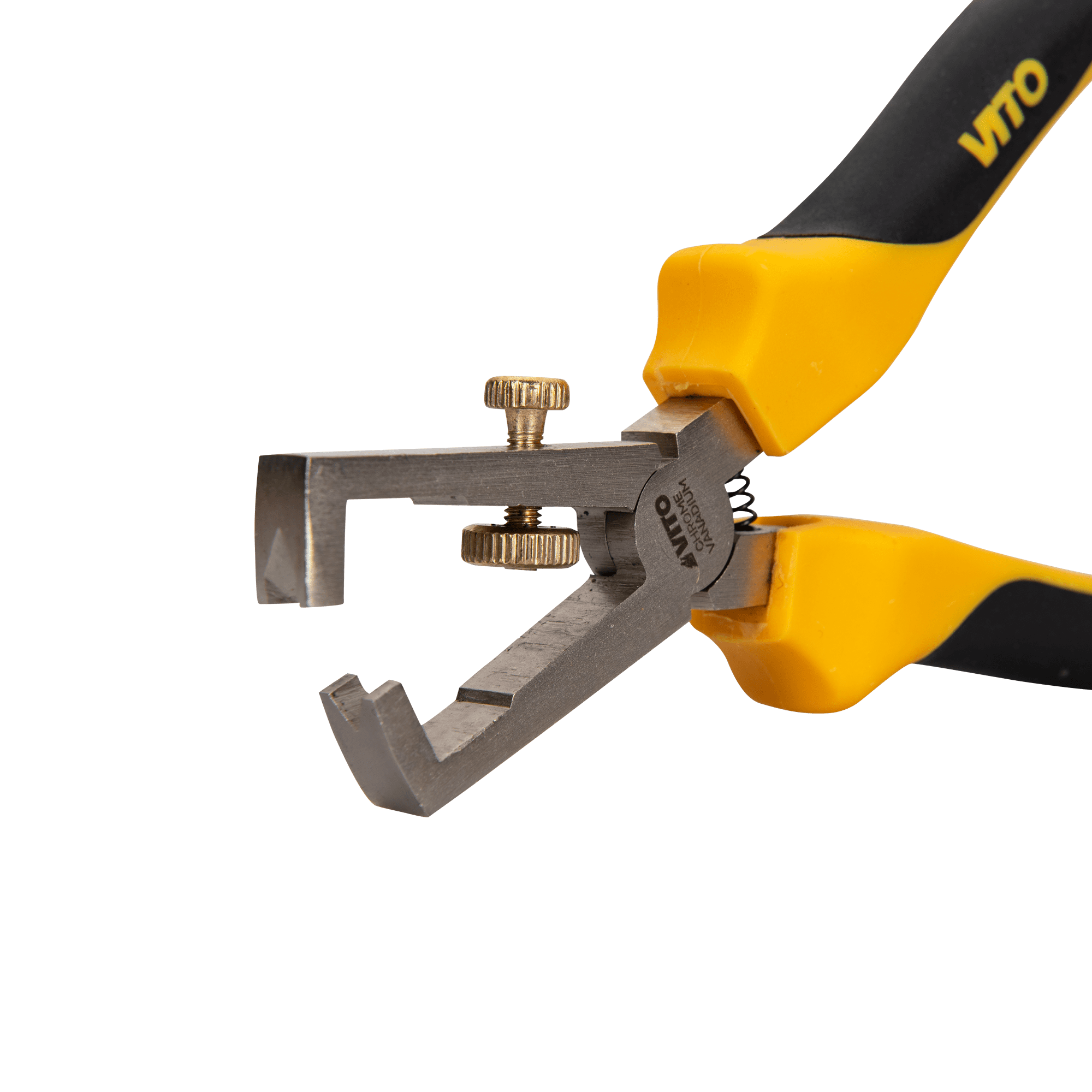 O alicate descarnador é indicado para descarnar fios elétricos isolados com precisão e segurança. Este alicate é usado por profissionais de diversos setores: eletricistas, técnicos de eletrónica, instaladores de redes informáticas e telecomunicações, etc.