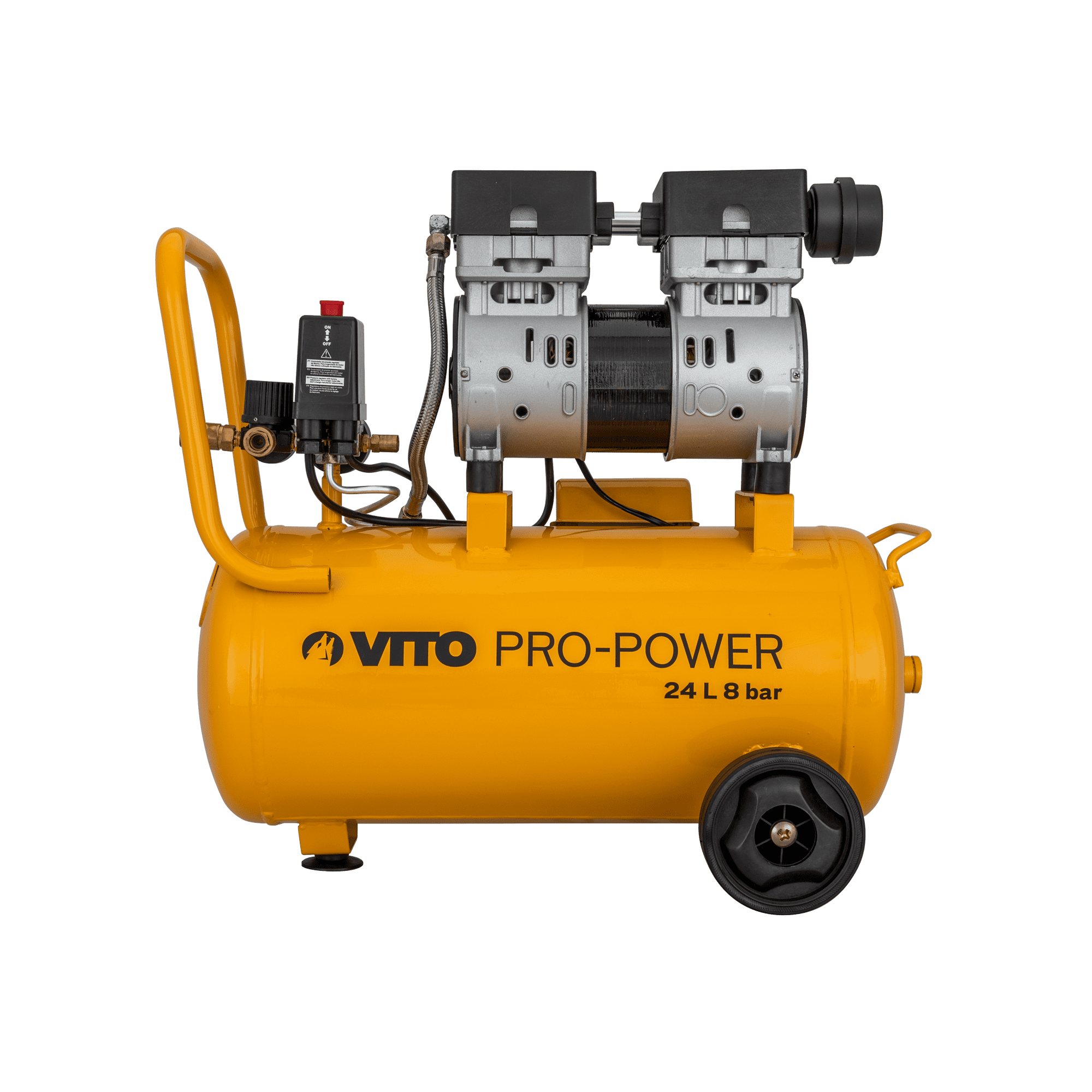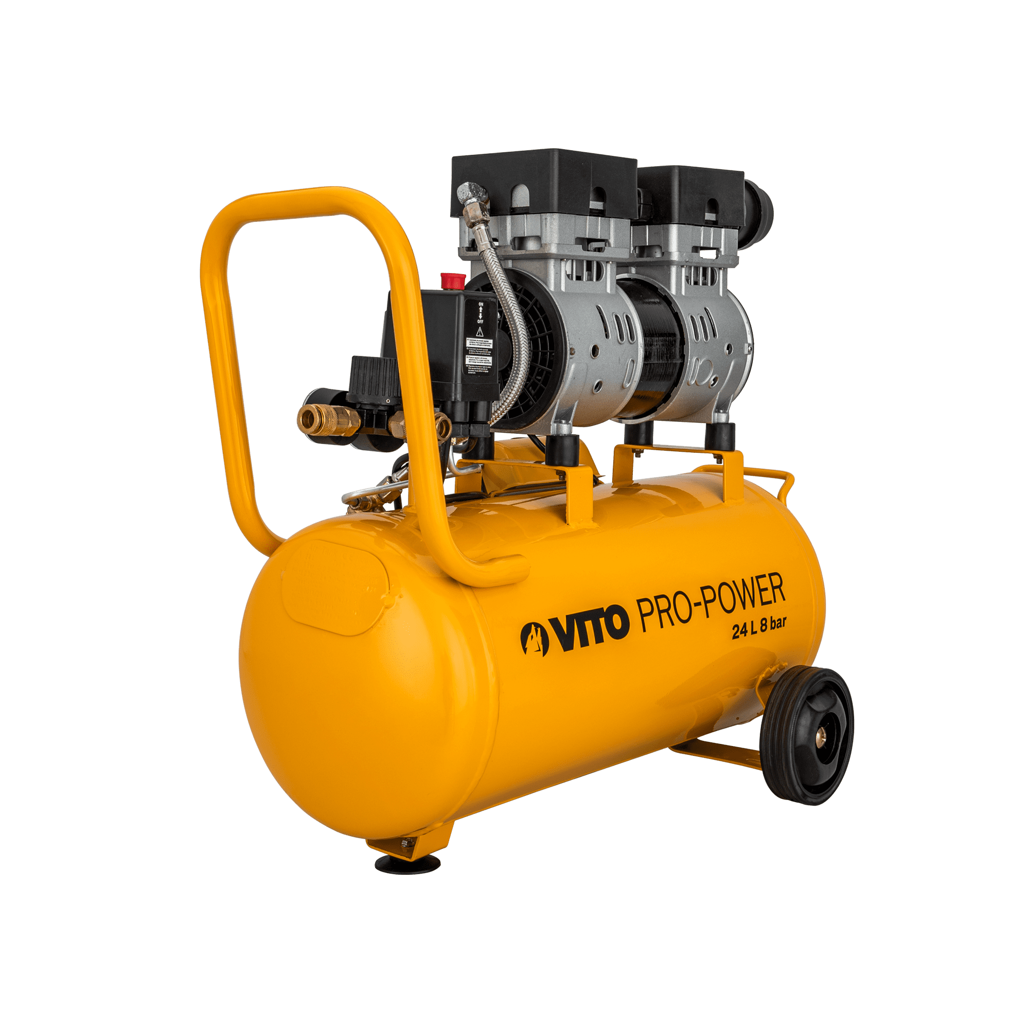Os compressores silenciosos sem óleo da VITO foram desenvolvidos para oferecer o máximo desempenho e qualidade com menor ruído. Equipados com ventilador de dissipação de calor e proteção térmica para evitar o sobreaquecimento da máquina, possuem uma potência do motor que varia entre os 0,7cv e os 1,5cv para realizar todas as suas tarefas de forma segura e profissional. Ecológicos e estáveis, os pés de borracha permitem proteger as superfícies contra riscos e estabilizar os equipamentos absorvendo todas as vibrações. De fácil utilização e transporte contem depósitos entre 6L, 24L e 50L.